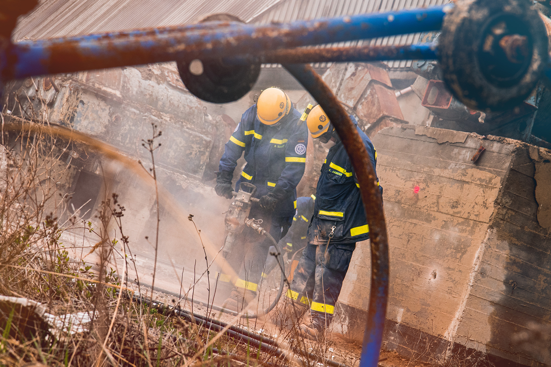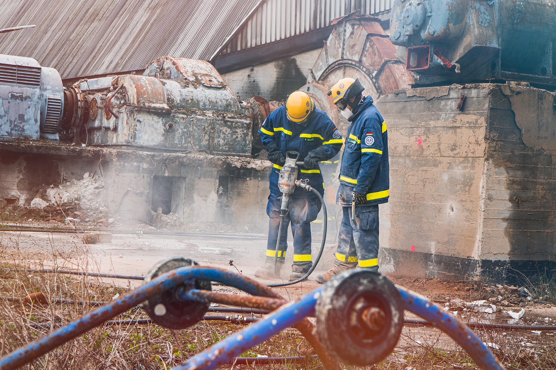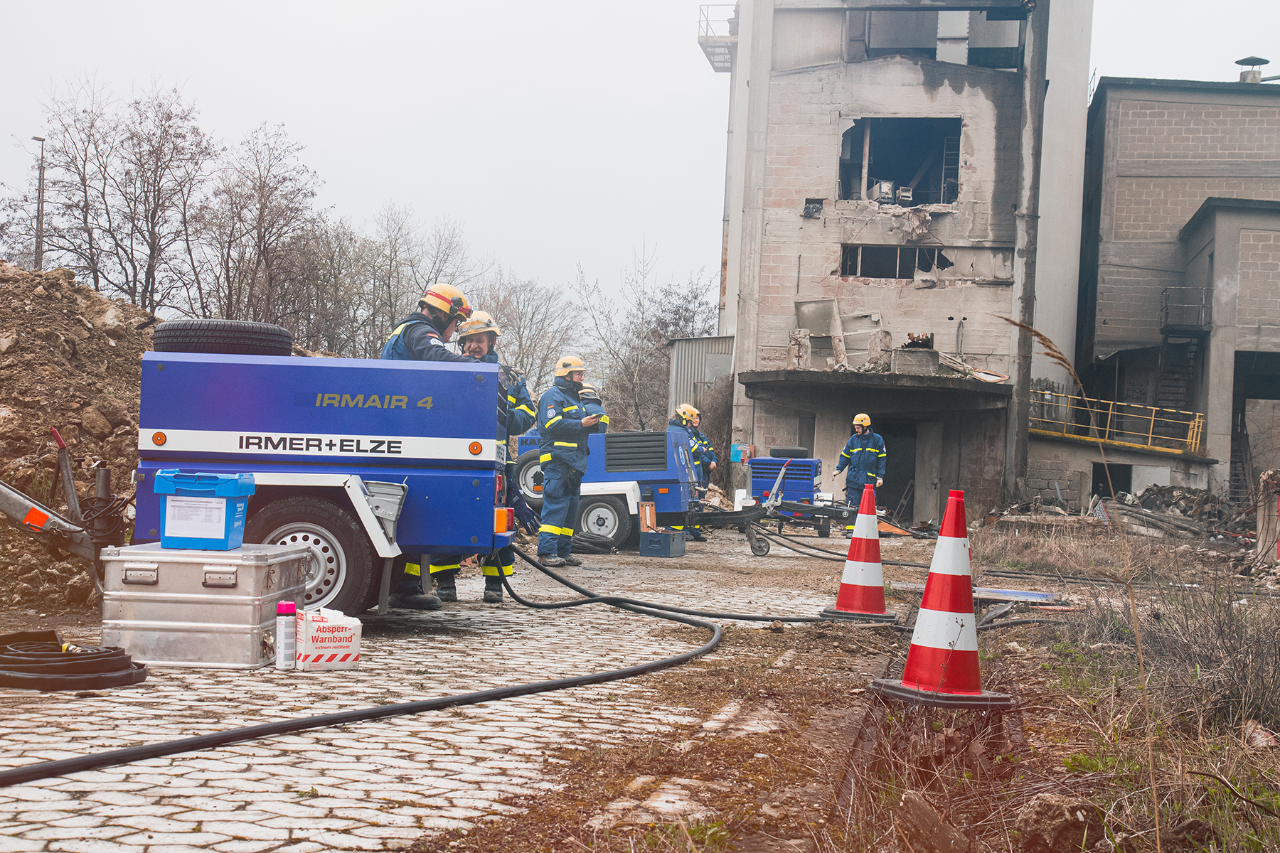 An anderen Übungsstationen perfektionierten die THW-Freiwilligen den Umgang mit der Motorsäge oder zerkleinerten mit Drucklufterzeugern größere Betonteile.