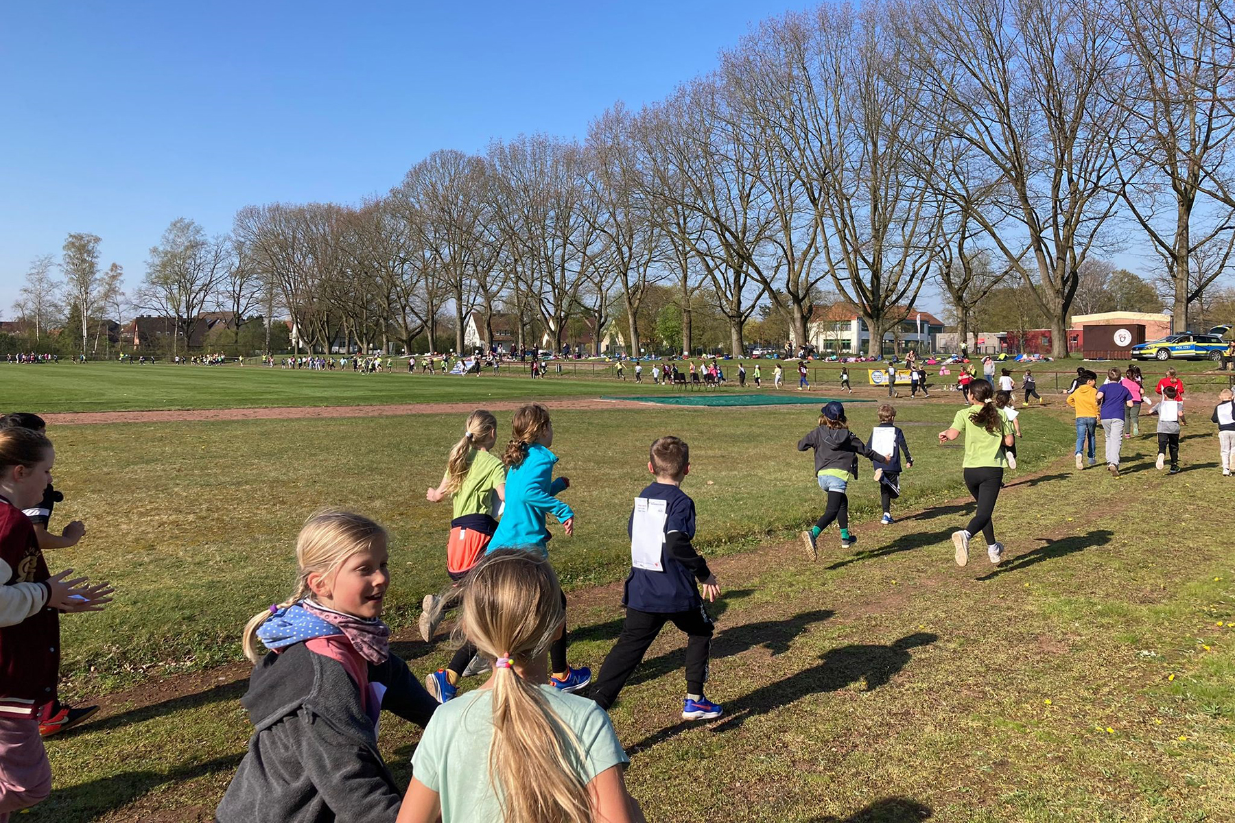 Insgesamt sind bei Sonnenschein und bester Atmosphäre die Schüler beider Schulen 3519 Runden um die Laufbahn am Reuterweg gelaufen. Aufgeteilt waren die Kinder in 17 Teams, aus pädagogischen Gründen gemischt in Jahrgang und Schule. Eröffnet wurde der Sponsorenlauf durch motivierende Worte des Schulleiters beider Schulen, Andreas Reichert, sowie Stefanie Hamburg und Anne-Christine Weindl. Auch vor Ort war der Kontaktbeamte Frank Michael Voigt von der Polizeiinspektion Celle, der mit dem Martinhorn den Startschuss zum Lauf gegeben hatte.