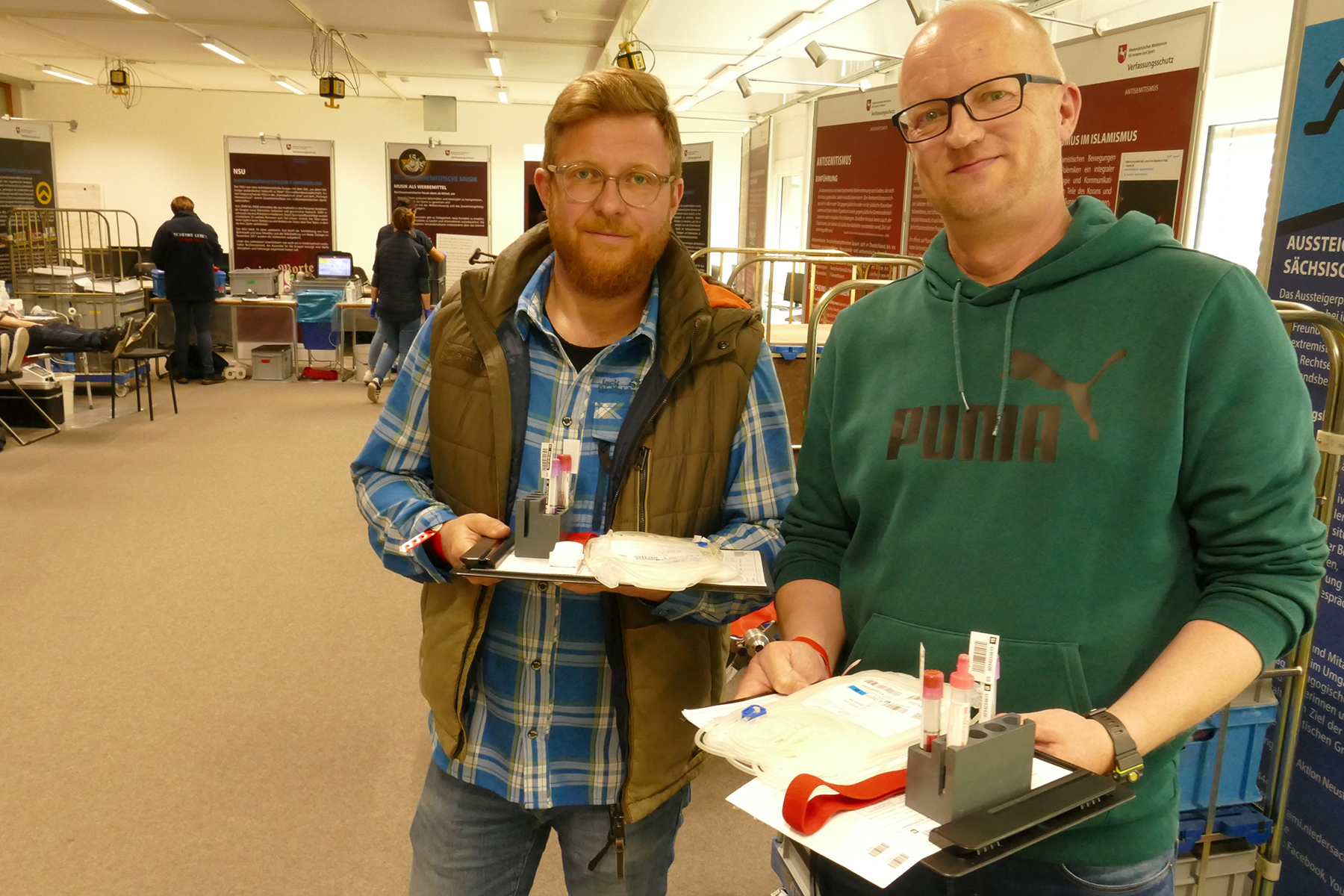 Neben der klassischen Blutspende wurde außerdem eine Typisierung für Knochenmarkspende durchgeführt. Bei dieser geht es um den Kampf gegen Blutkrebs. Vorteil: das ist schon mit 17 Jahren möglich und geht völlig schmerz- und stressfrei mit einem kleinen Abstrich mit einem Wattestäbchen im Mund. "Die jungen Leute gehen so in eine Registrierung in die deutsche Stammzellenspenderdatei ein, das Angebot hier wird sehr gut angenommen heute", freut sich Cornelia Wilcke von der DSD (Deutsche Stammzellspenderdatei). Insgesamt haben sich 38 junge Menschen typisieren lassen.