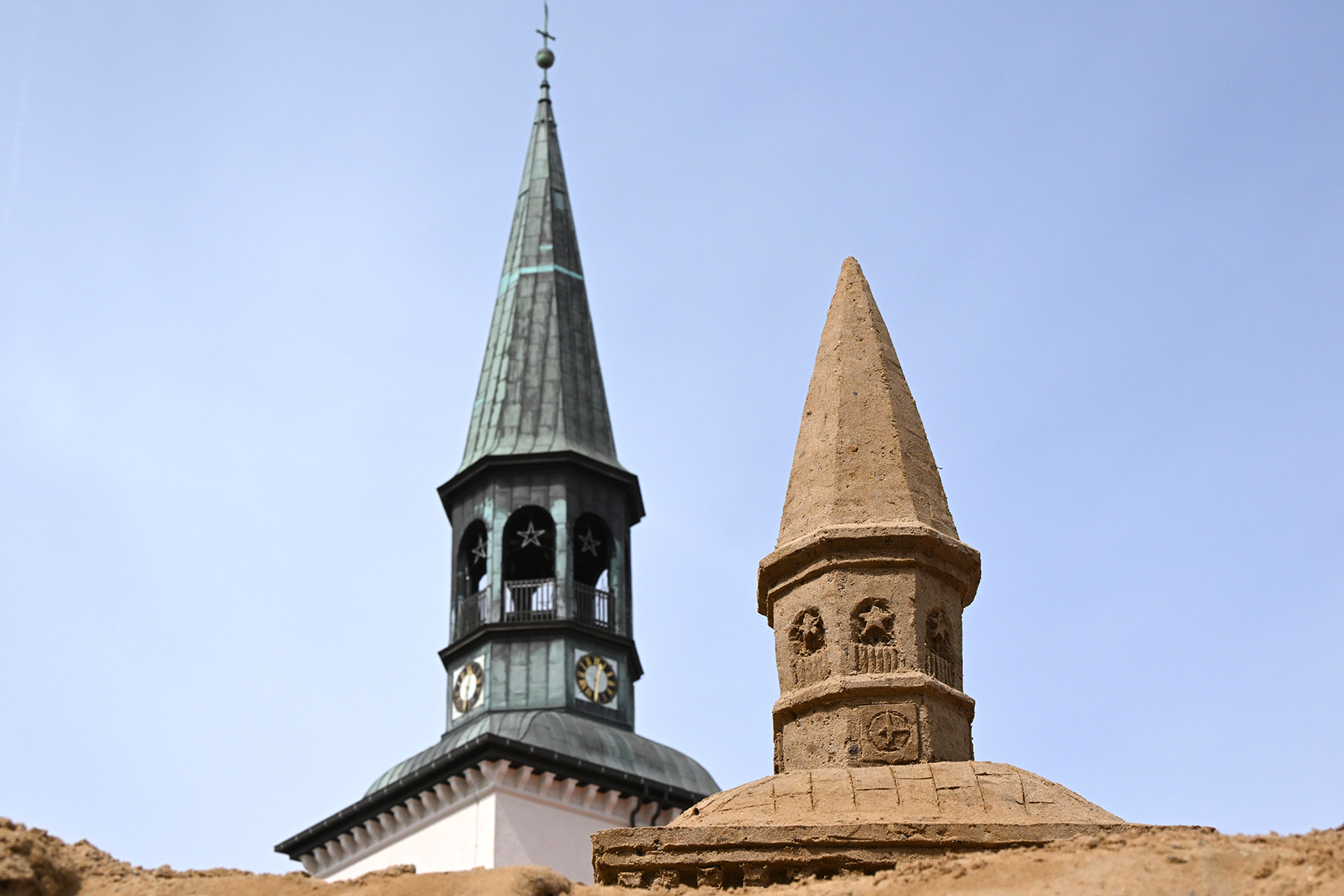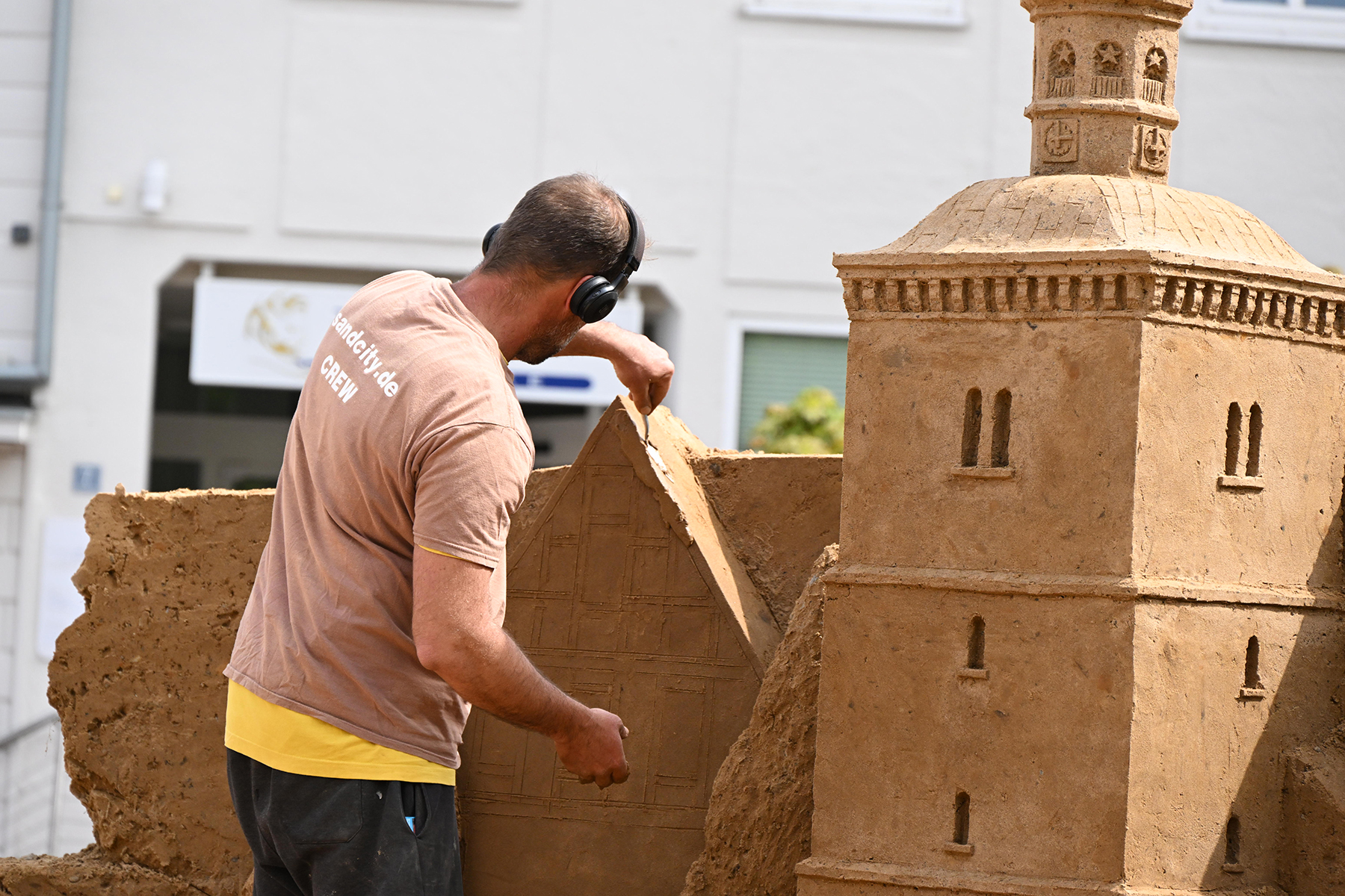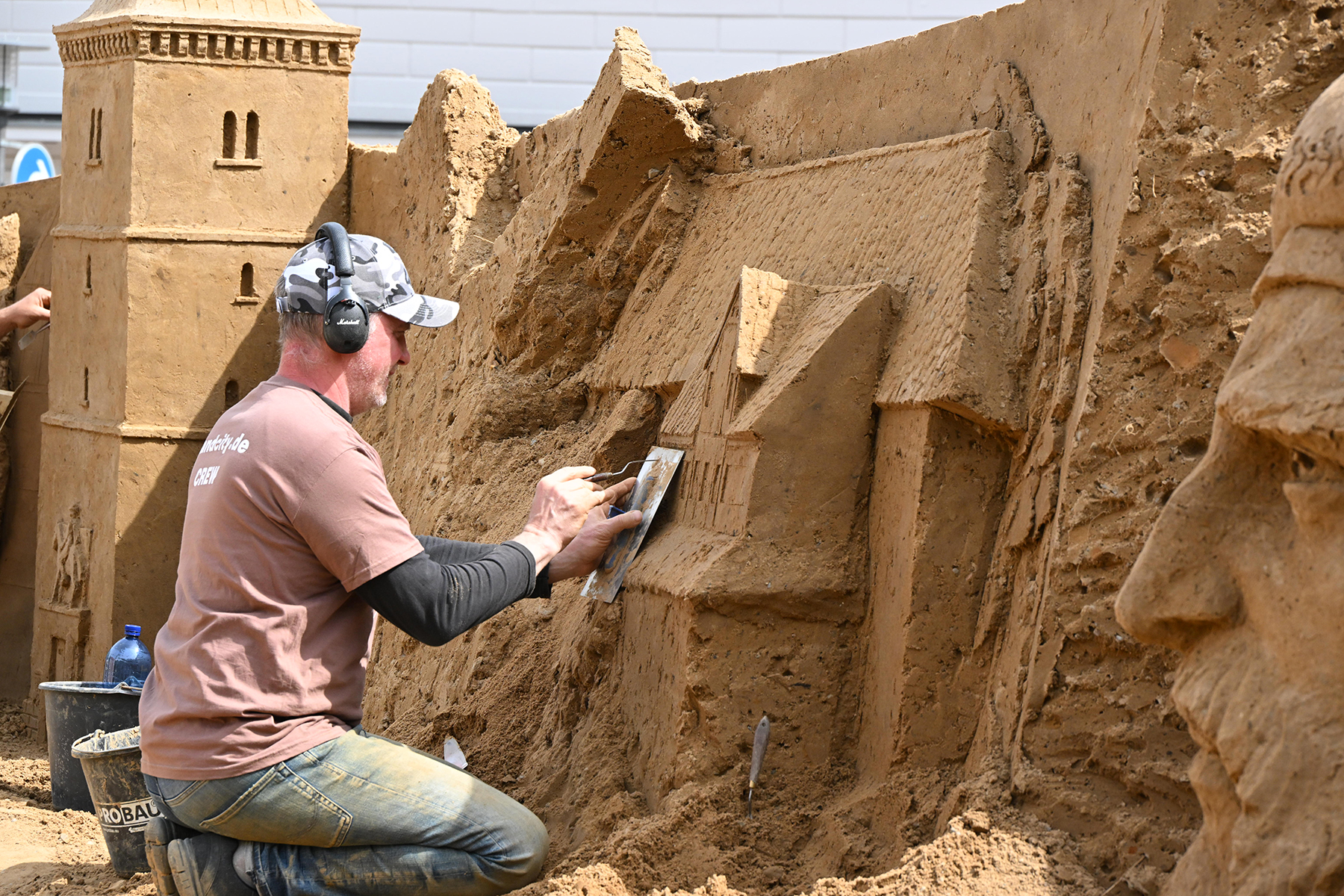 Bis Sonntag sind die Burgenbauer noch am Werkeln, danach wird das filigrane Kunstobjekt wieder entfernt und der Sand geht wieder in den Werkstoff-Kreislauf zurück.