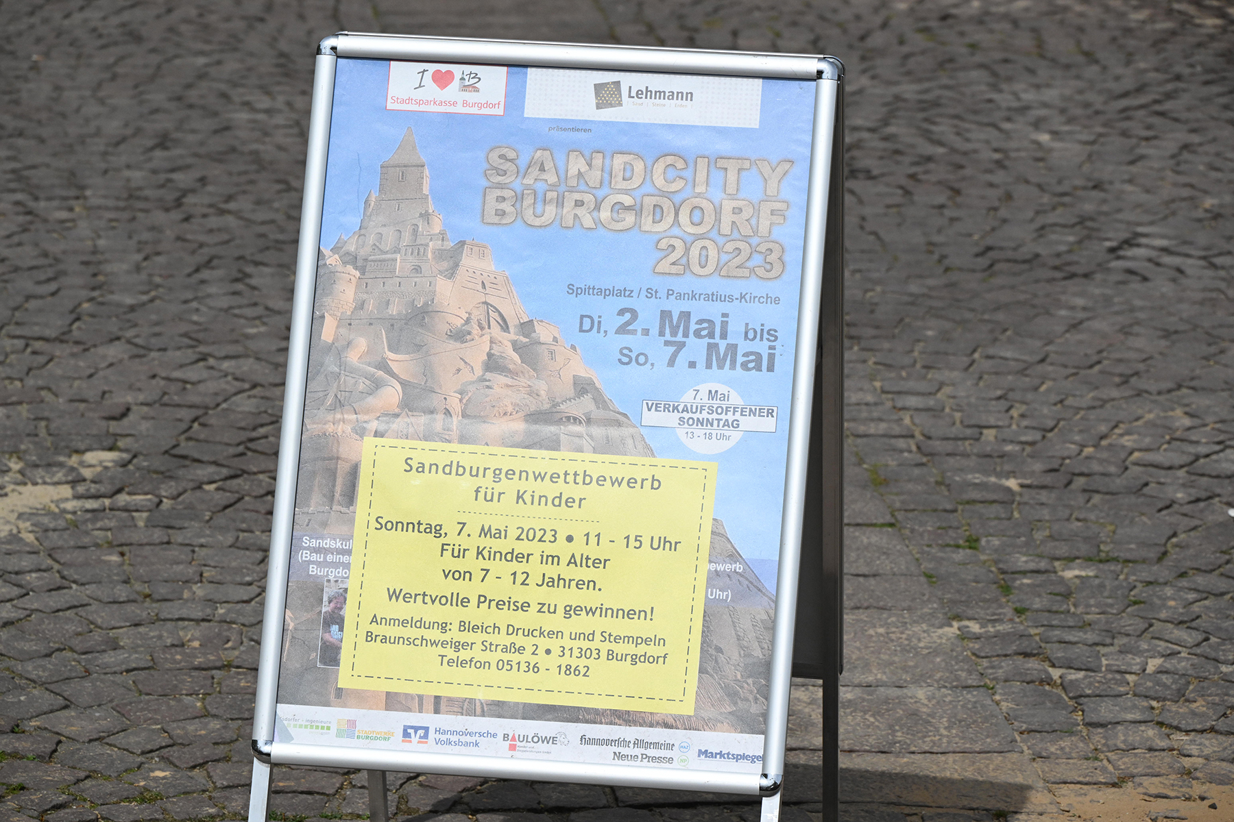 "Die Leute sind begeistert", stellt auch SMB-Geschäftsführer Gerhard Bleich fest. Die Stadtsparkasse Burgdorf, heute vertreten durch Heiko Nebel, und die Gustav Lehmann Mörtel-, Sand- und Kieswerke GmbH mit Markus Lehmann sind die Hauptsponsoren des Events. Letzterer hat rund 210 Tonnen extra bereitgestellten Burgdorfer Sand auf dem Spittaplatz angeliefert. Dabei handelt es sich zum einen um Beach-Sand sowie besser verarbeitbaren Sand für die Burgenbauer.