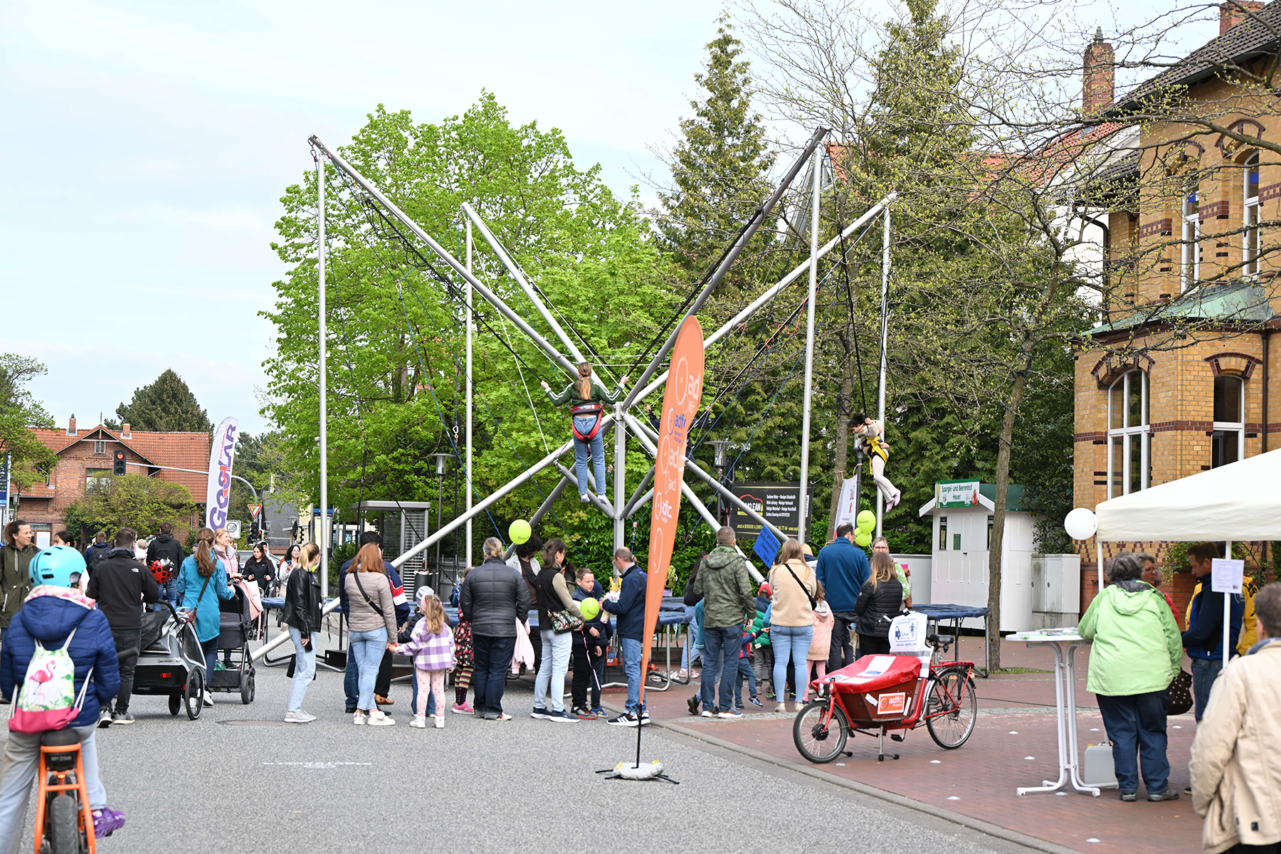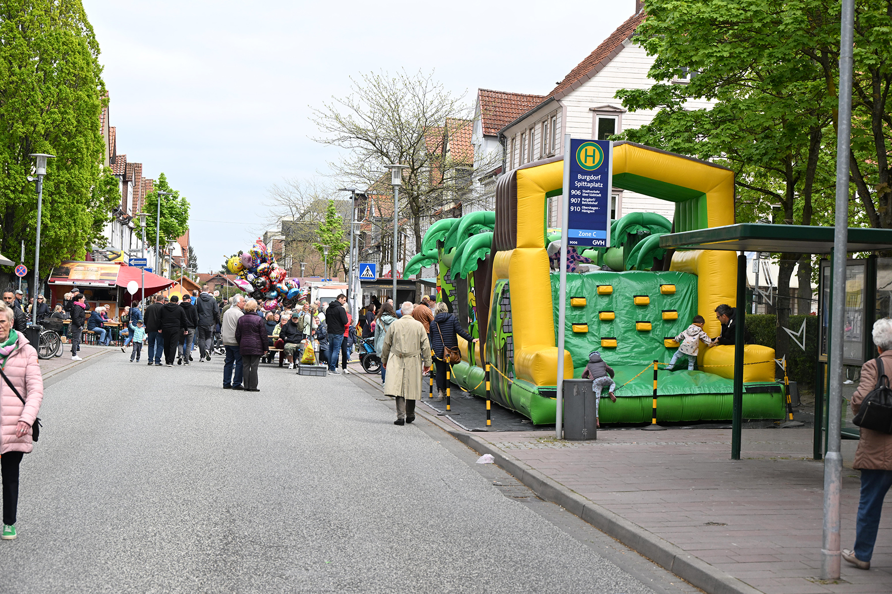 Derweil herrschte reges Treiben auf der Burgdorfer Marktstraße. Ob nun die Hüpfburg, Karussell oder dem Bungee-Jumping am Boden: Für Kinder gab es wieder ein umfangreiches Angebot. In den zum Verkaufsoffenen Sonntag gingen unzählige Shoppen und für ein abwechslungsreiches Angebot an Speichen und Getränke nebst Eis war ebenso gesorgt.