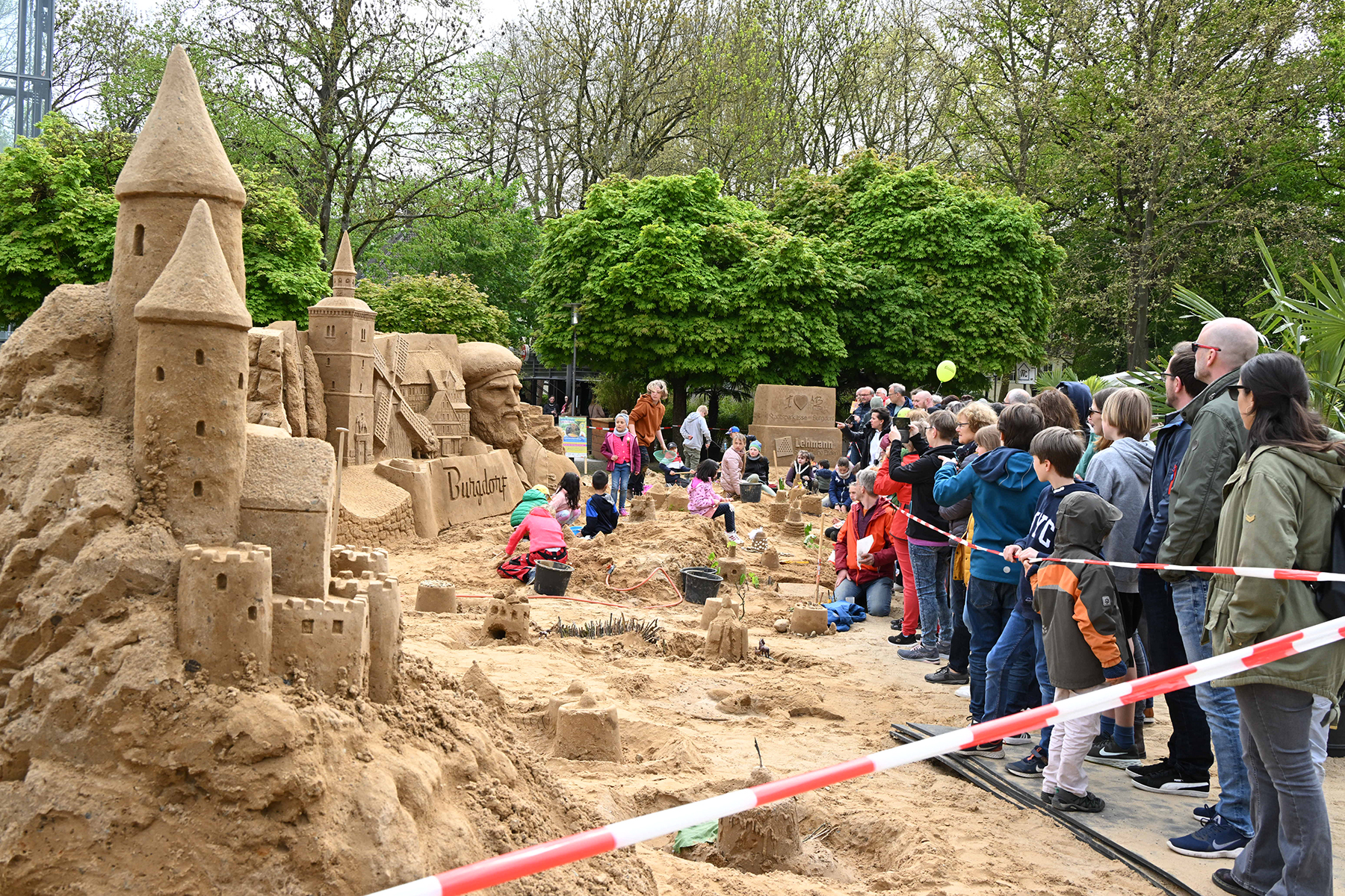 "Auch wenn es in Celle und Peine auch Verkaufsoffene Sonntage gibt, so freuen wir uns über die vielen Besucher, zog Stadtmarketing-Geschäftsführer Gerhard Bleich ein dennoch positives Fazit. Besonderes Highlight war auf jeden Fall die ebenfalls von Stadtmarketing Burgdorf initiierte große Sandburg auf dem Spittaplatz. Das zehn Meter breite und zwei Meter hohe Kunstwerk – in sieben Tagen erschaffen von den Machern von sandcity.de – lockte viele Besucher an. Viele nutzten daher am heutigen Sonntag letzte Gelegenheit, die große Sandburg noch einmal zu sehen. Denn am morgigen Montag wird der Sand wieder abtransportiert. "Wir haben hier eine tolle Zeit verbracht", so Benno Lindel von sandcity.de. Auch der Regen der vergangenen Tage hatte dem Kunstwerk nichts anhaben können, so dass dieses am heutigen Sonntag nun vollendet erstrahlen konnte.