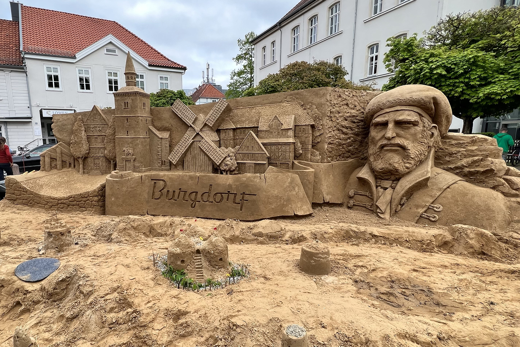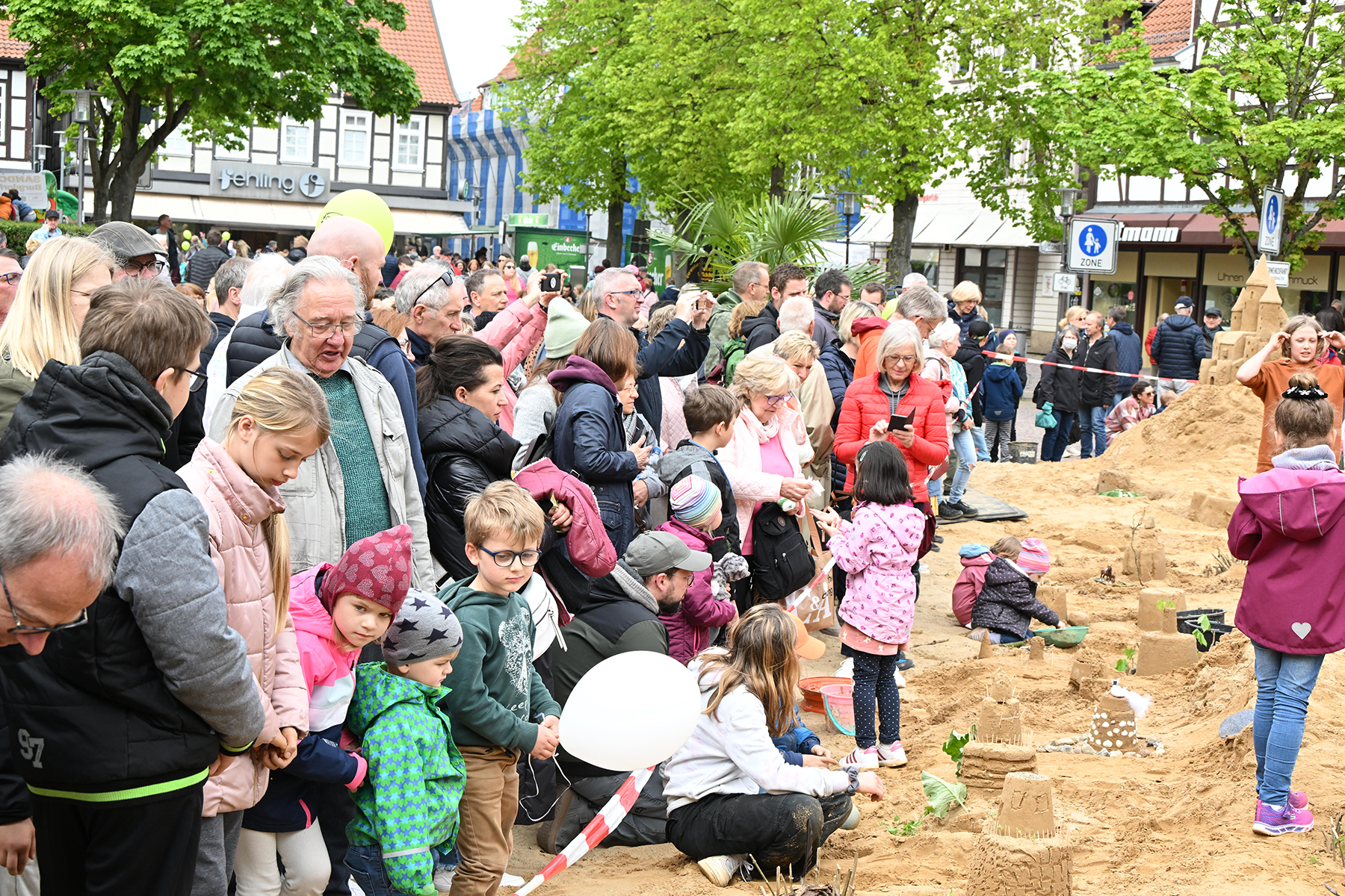 Es war ein erfolgreicher erster Verkaufsoffener Sonntag in diesem Jahr in Burgdorf. Vor allem die große Sandburg auf dem Spittaplatz lockte viele Besucher an. Auch wenn das Wetter am heutigen Sonntag, 7. Mai 2023, nicht gerade zum Bummel durch die Burgdorfer Innenstadt einlud, so blieb die Veranstaltung wenigstens vom angekündigten Regen verschont. Bei Temperaturen um die 16 Grad kamen aber dennoch viele Besucher in Burgdorf.