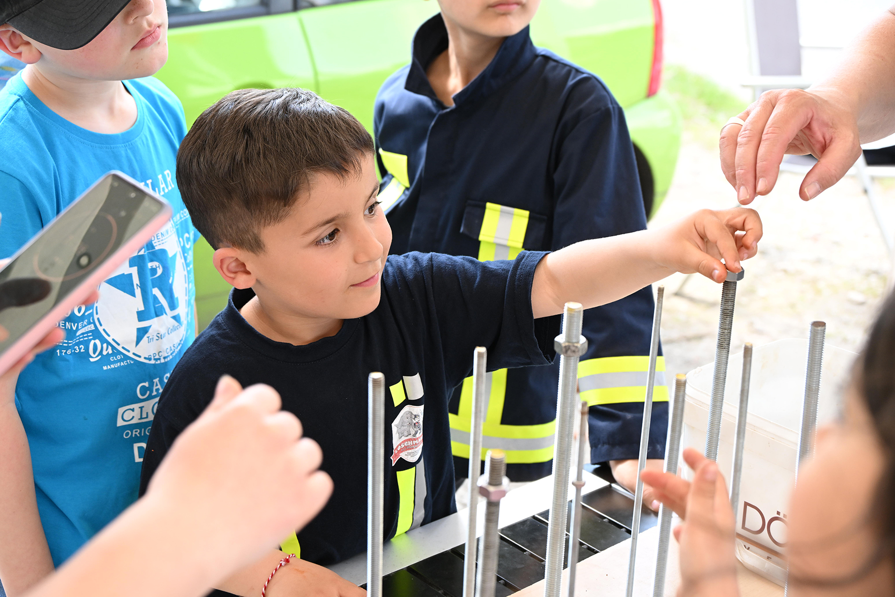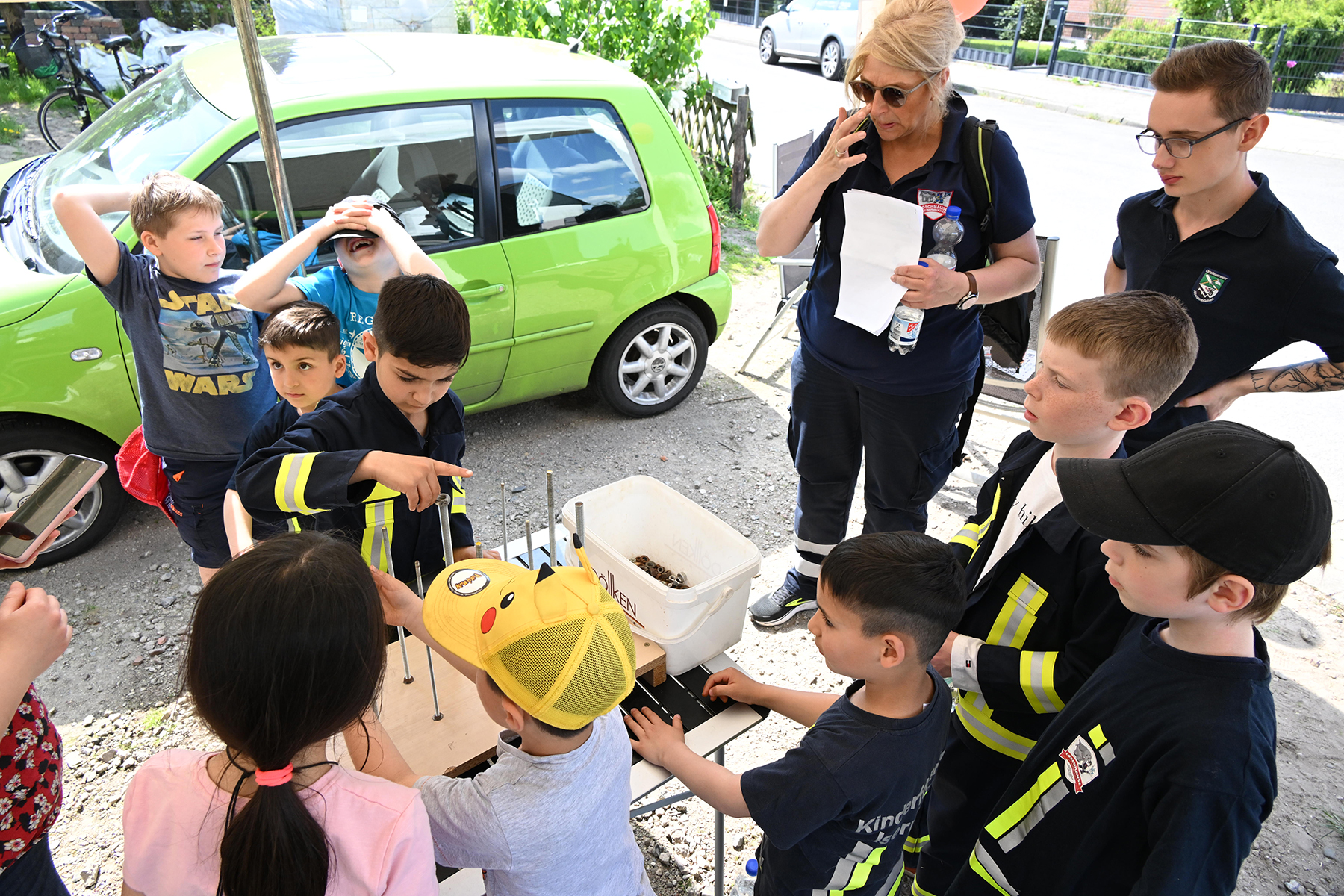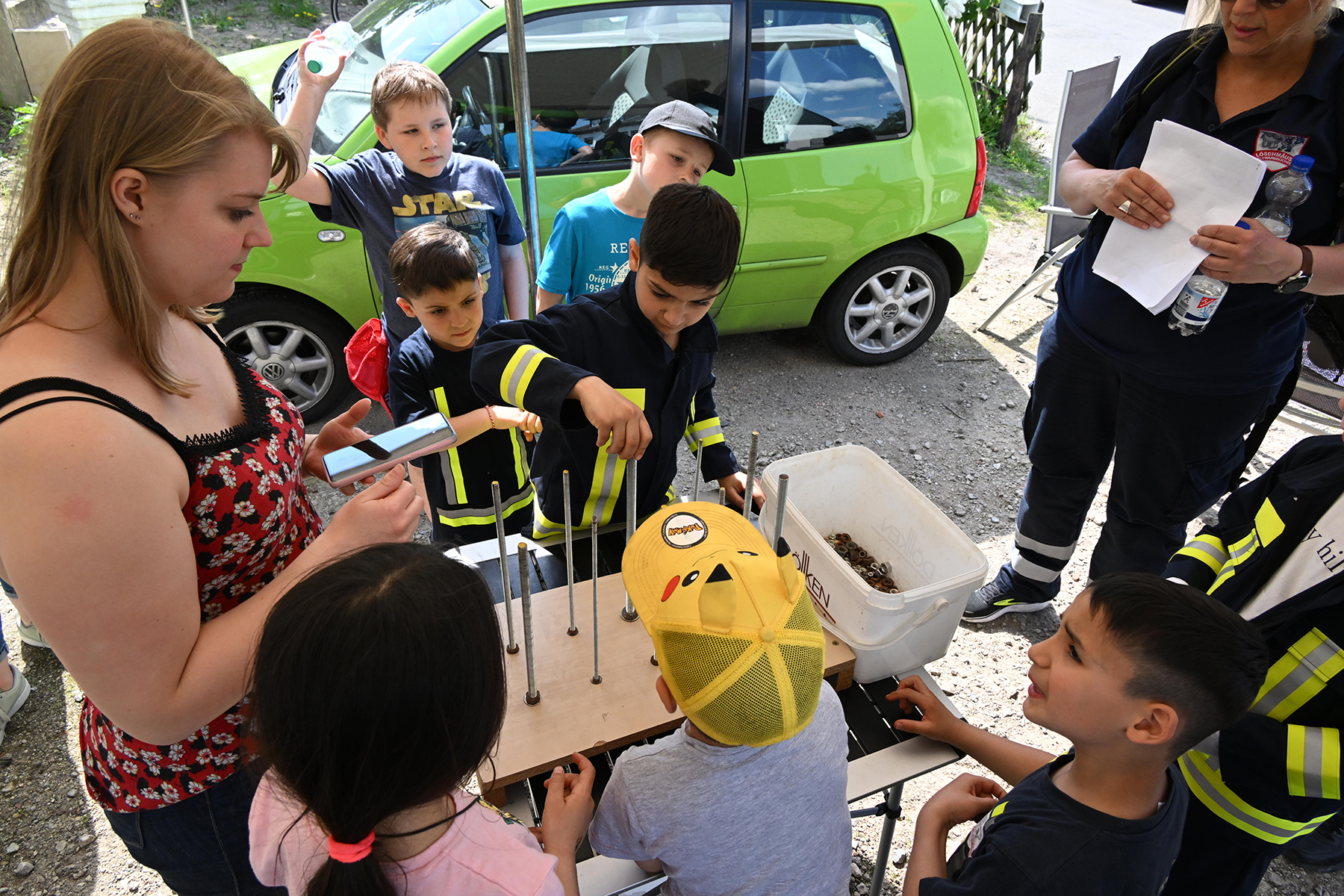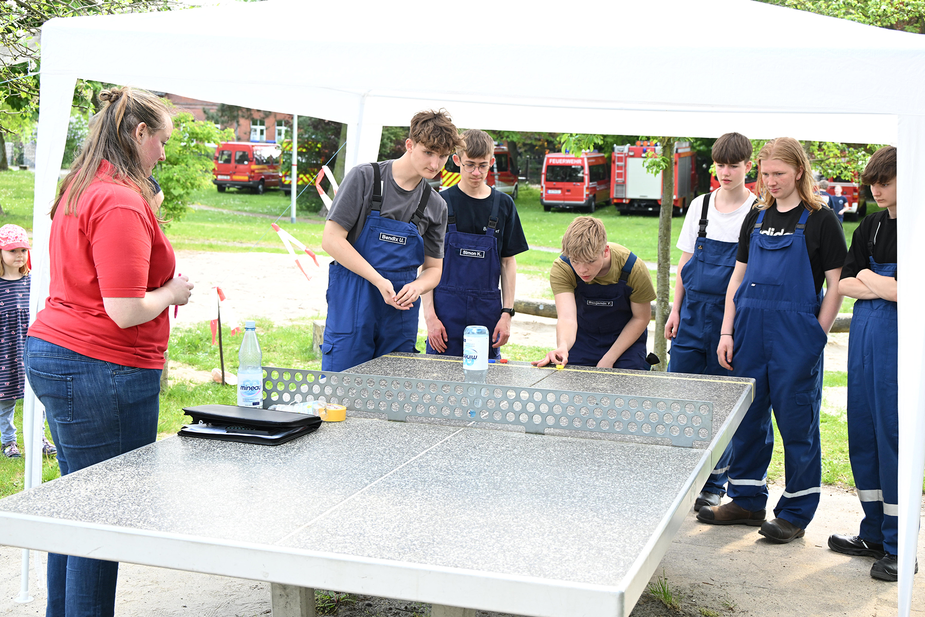 Zurück auf dem Dorfplatz erwartete die Gruppen ein buntes Programm an Spiel und Spaß. Auch die Verpflegung kam mit Bratwurst, Pommes und Getränken nicht zu kurz. Zu Besuch waren unter anderem der Ortsbrandmeister aus Ramlingen-Ehlershausen, Heinrich Könecke, und der stellvertretende Ortsbrandmeister aus Thönse, Björn Schimkewitsch.