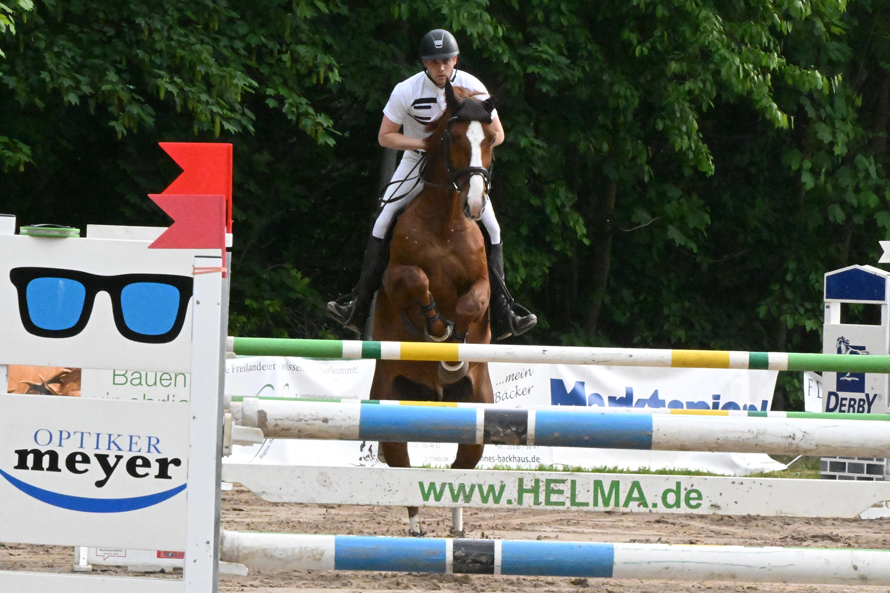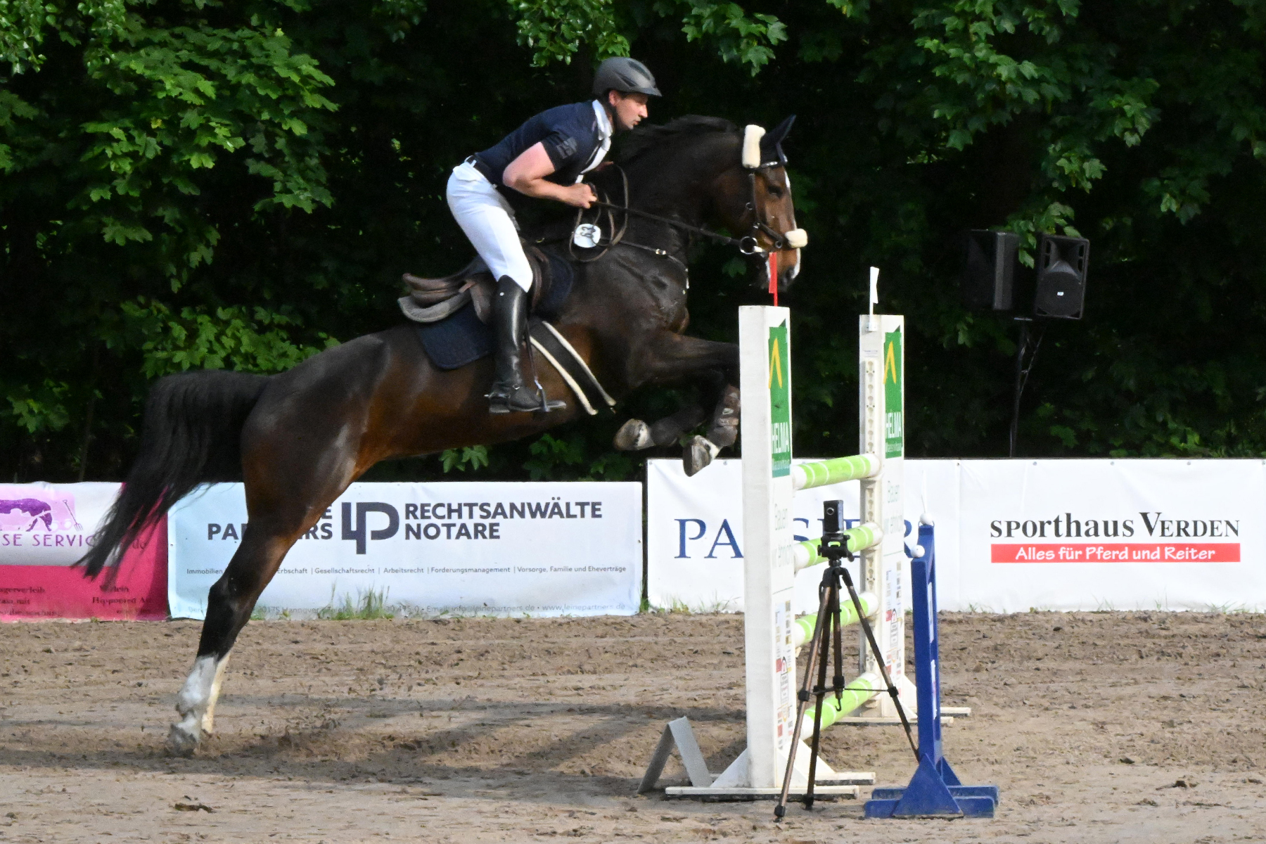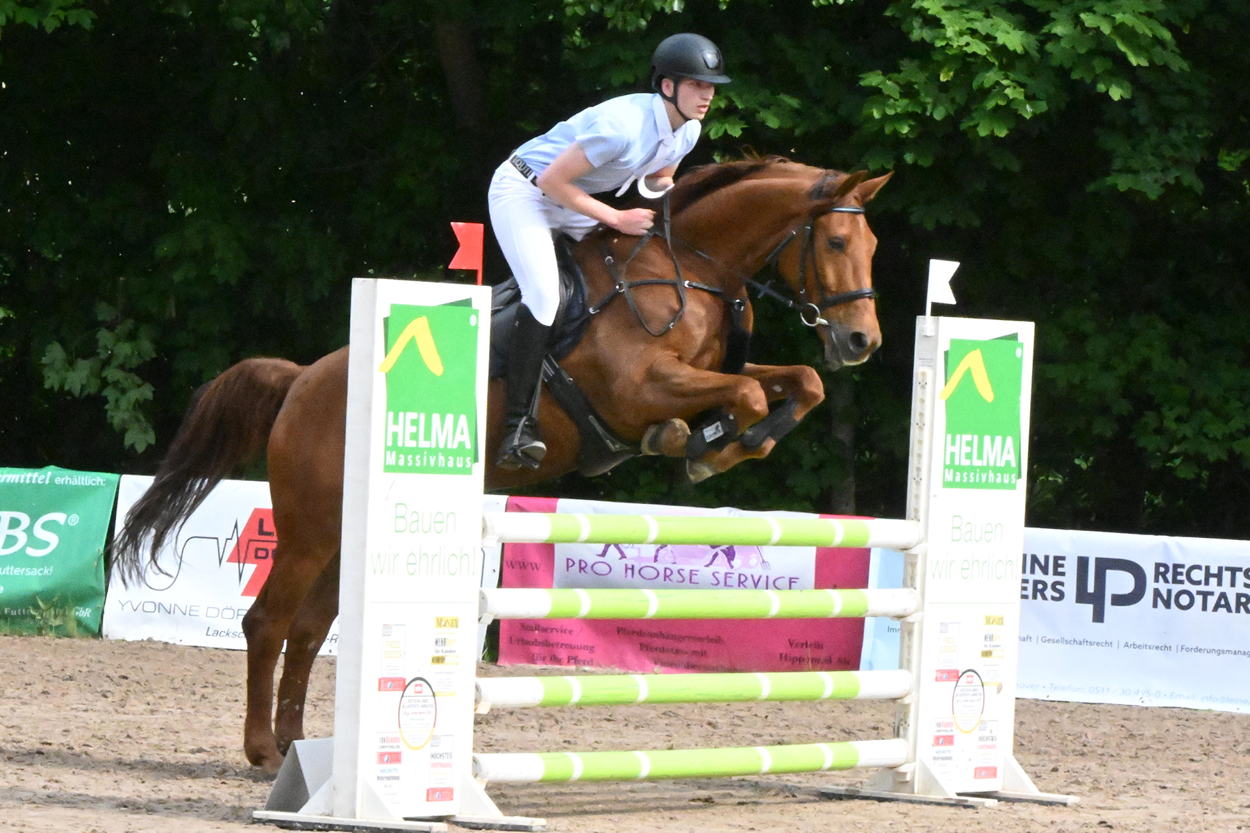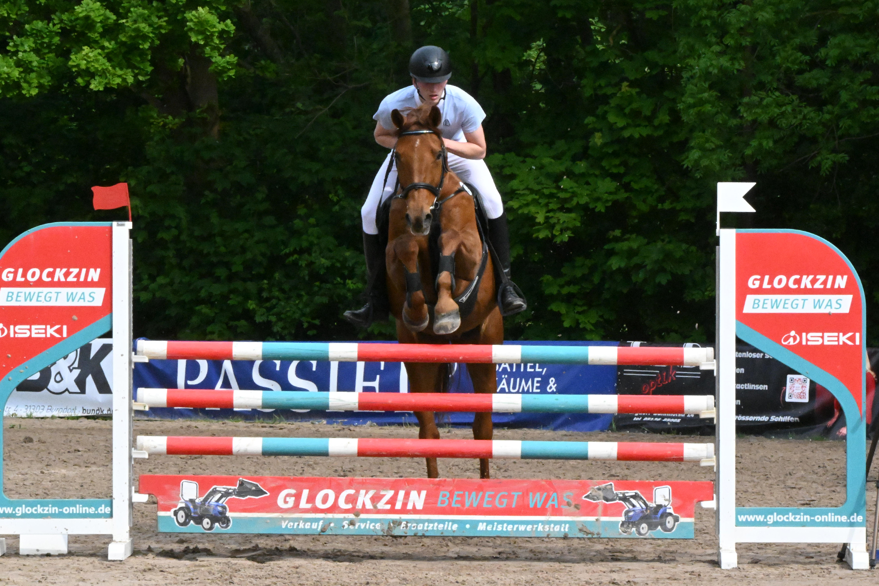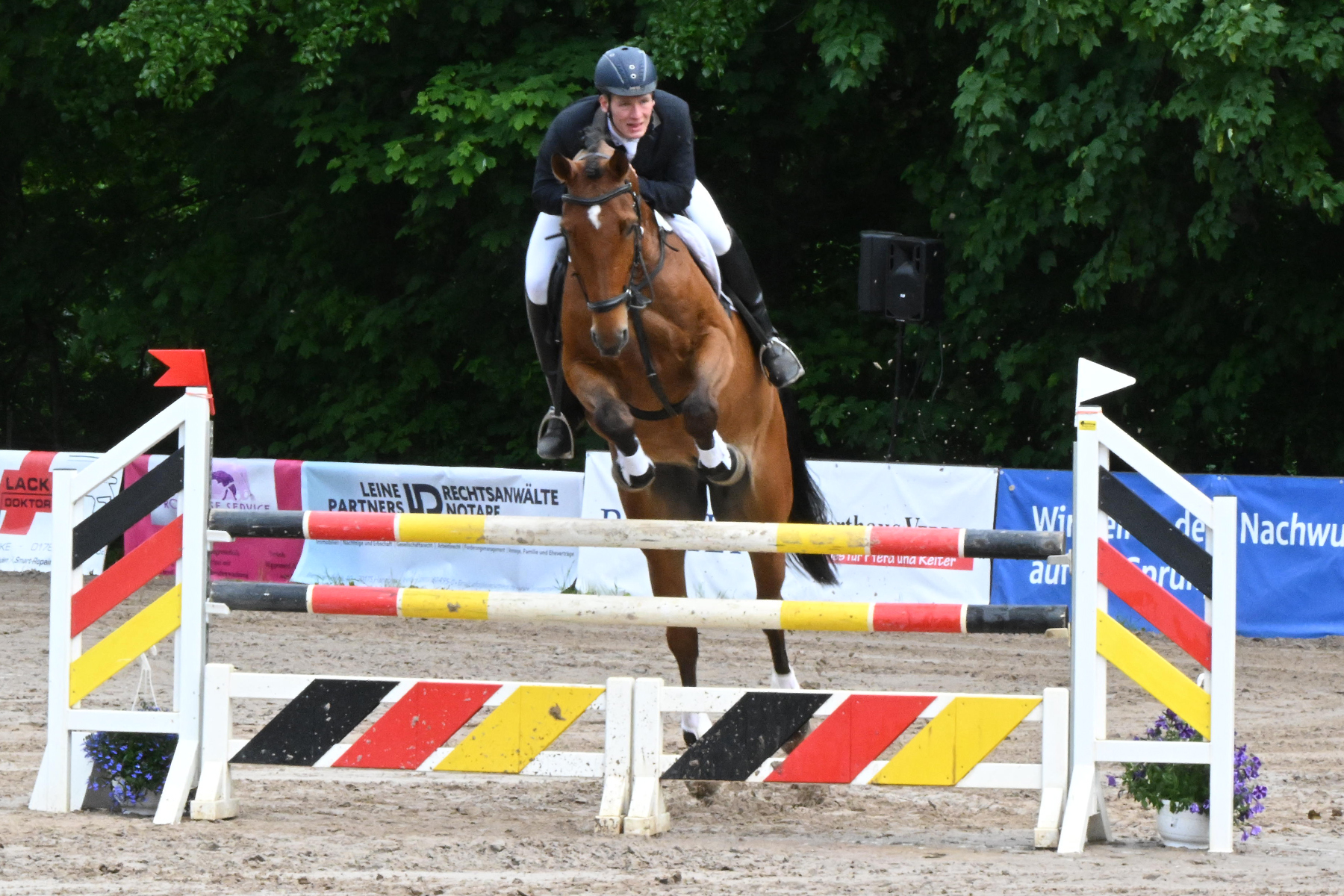 Einen Sieg für die Burgdorfer holte Louis Philipp Muhle auf Berta bei der Springprüfung der Klasse M* am Sonnabend. Der Sonntag stand für das Gespann unter keinem so guten Stern: Bei der Springprüfung der Klasse M* mit Siegerrunde erschrak Berta beim Doppelhindernis, woraufhin Louis Philipp Muhle abbrach. Mit Clarimero versuchte er sich ebenso bei der Punktespringprüfung der Klasse M*. Allerdings eher zur Übung. Nachdem er auf Clarimero zuvor bei der Springprüfung Klasse L mit steigenden Anforderungen den 4. Platz belegt hatte, wollte er es auch eine Klasse höher versuchen, musste aber auch hier abbrechen, weil Clarimero ein Hindernis verweigerte. "Nun heißt es weiter üben", zog er dennoch ein positives Fazit nach seinen Starts.