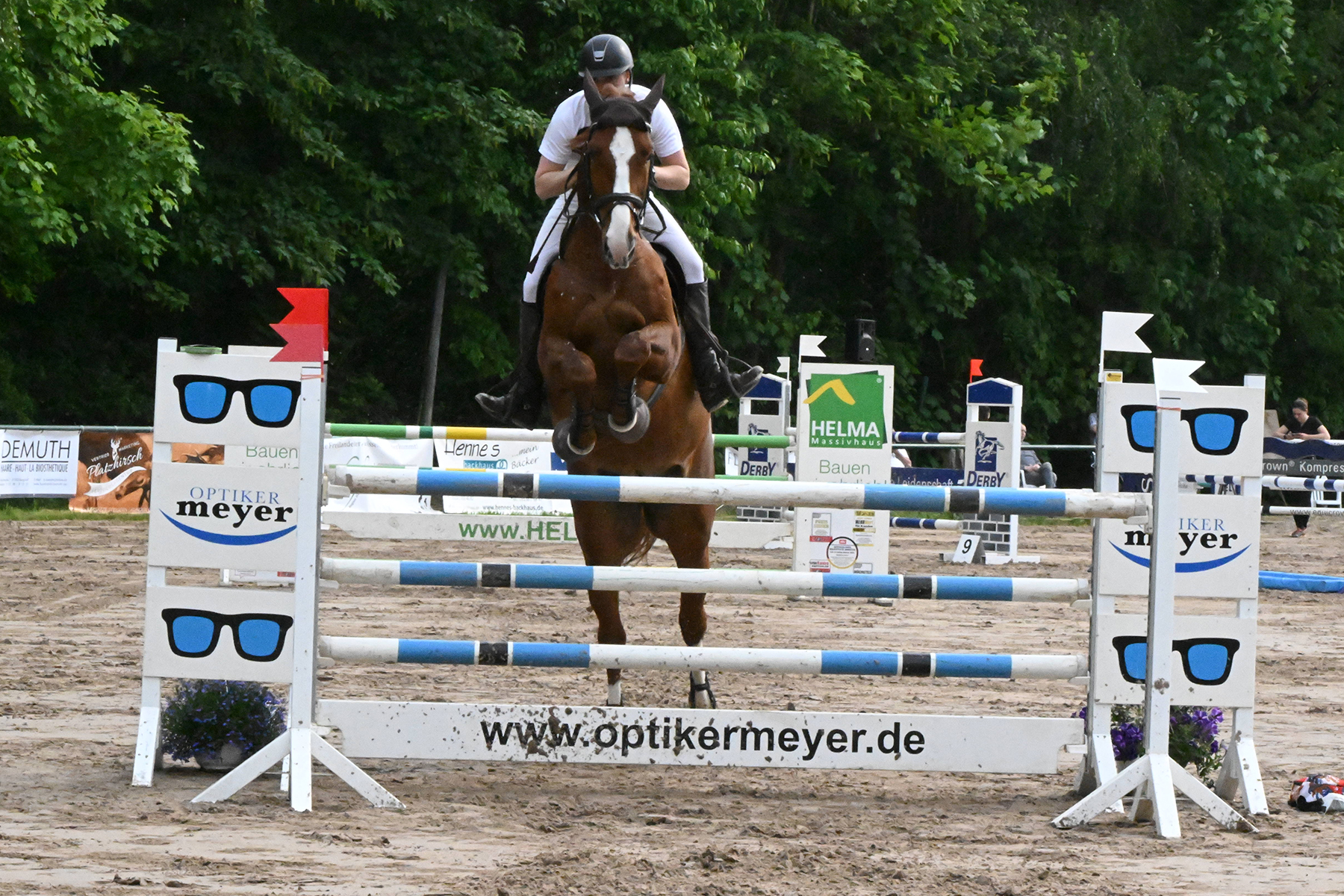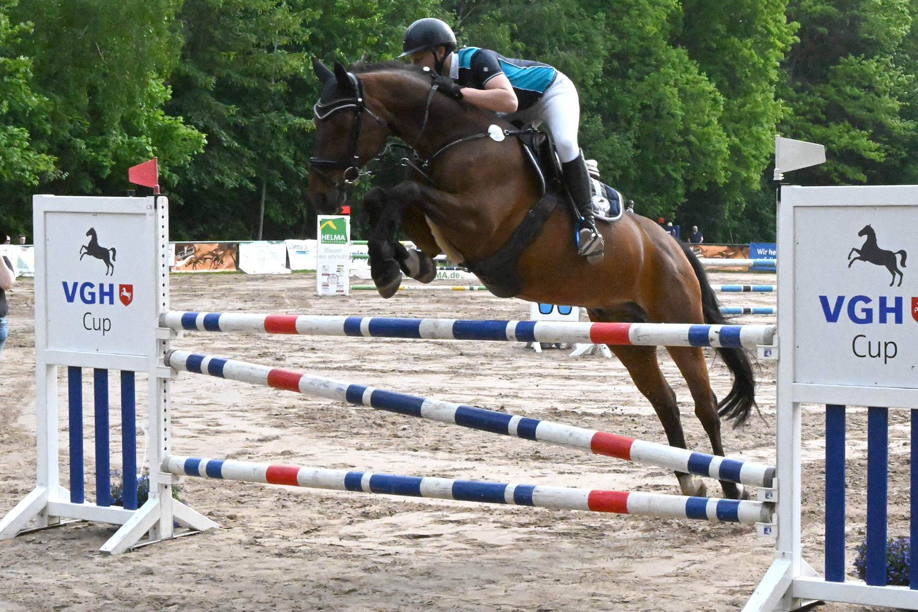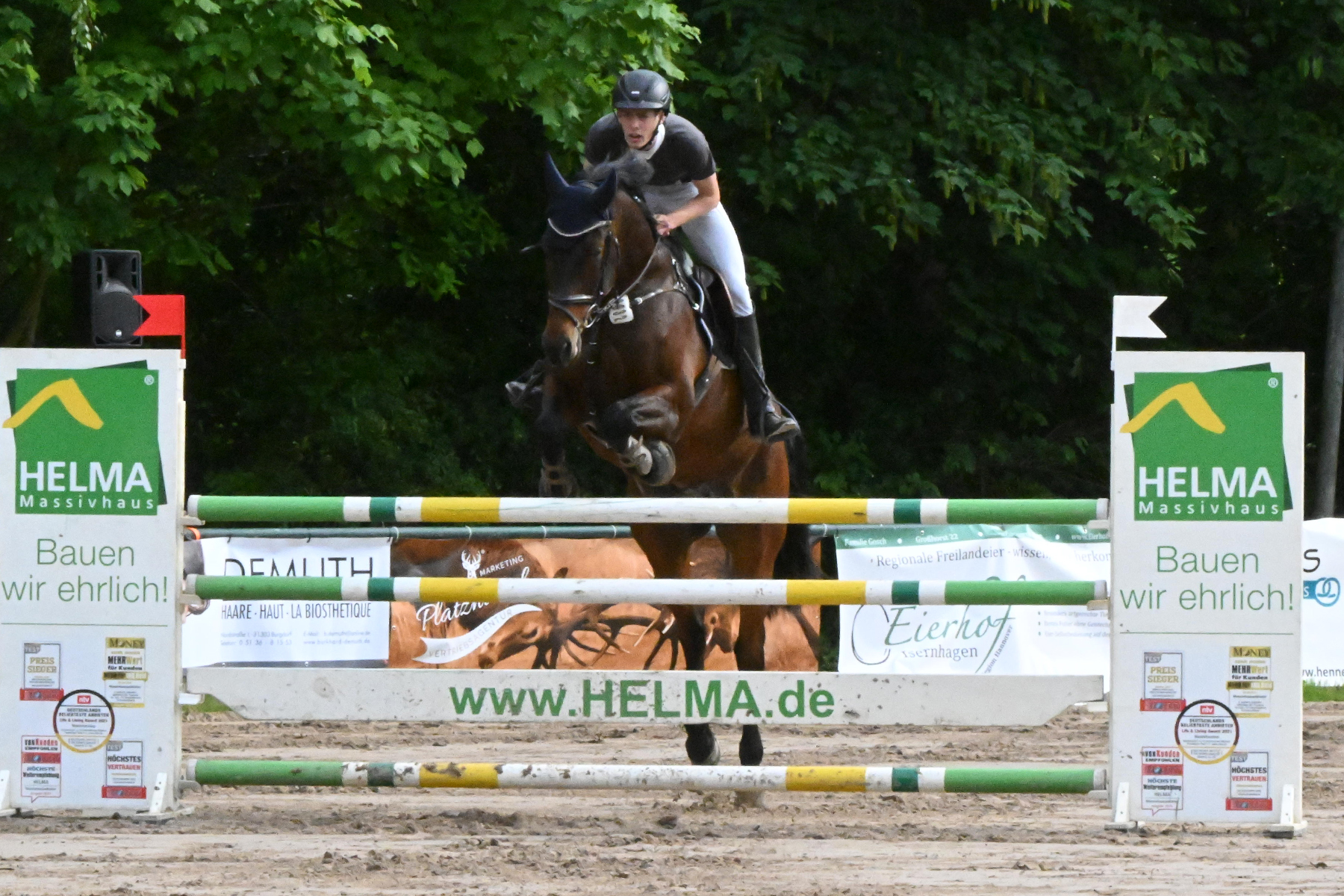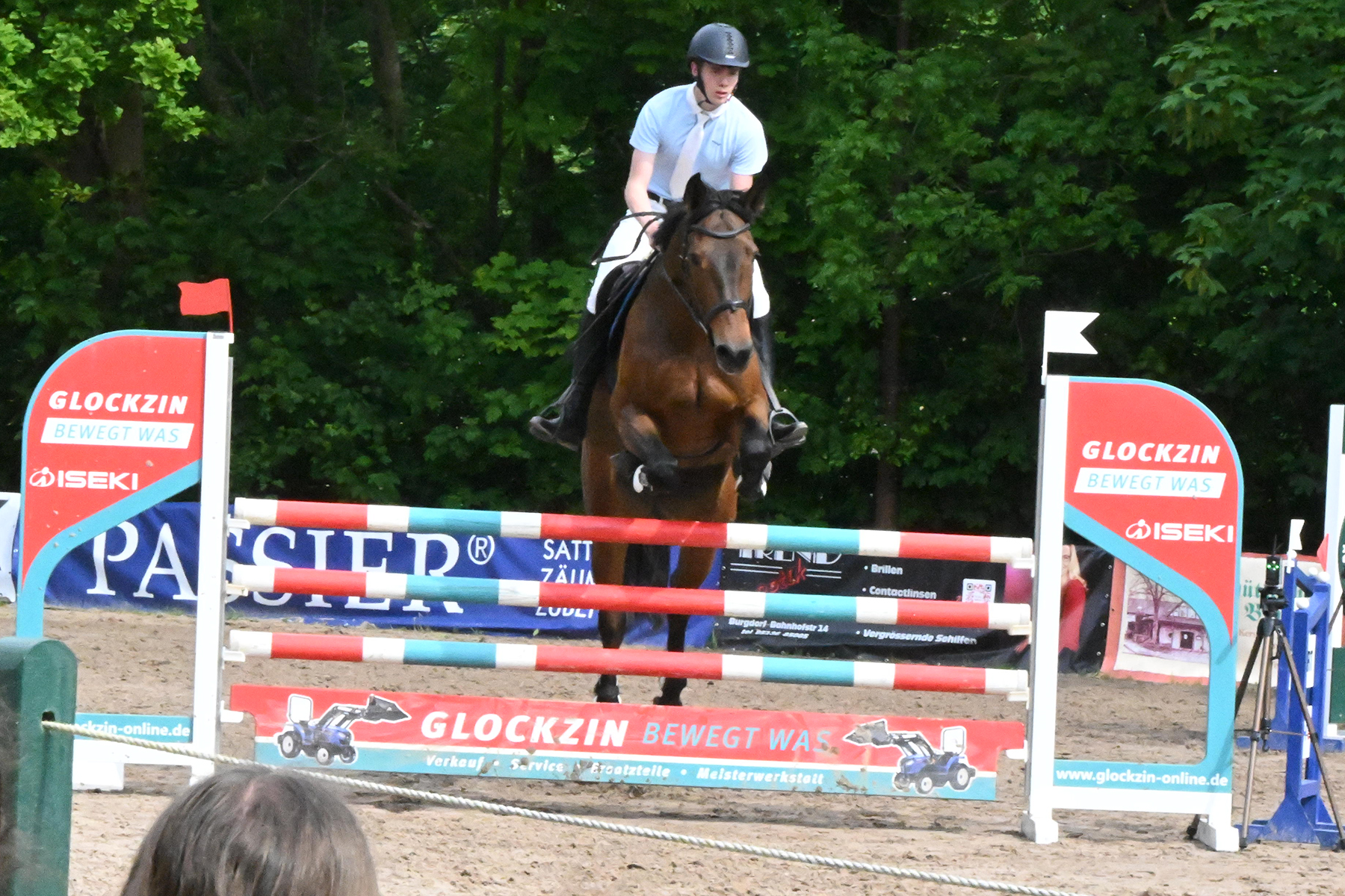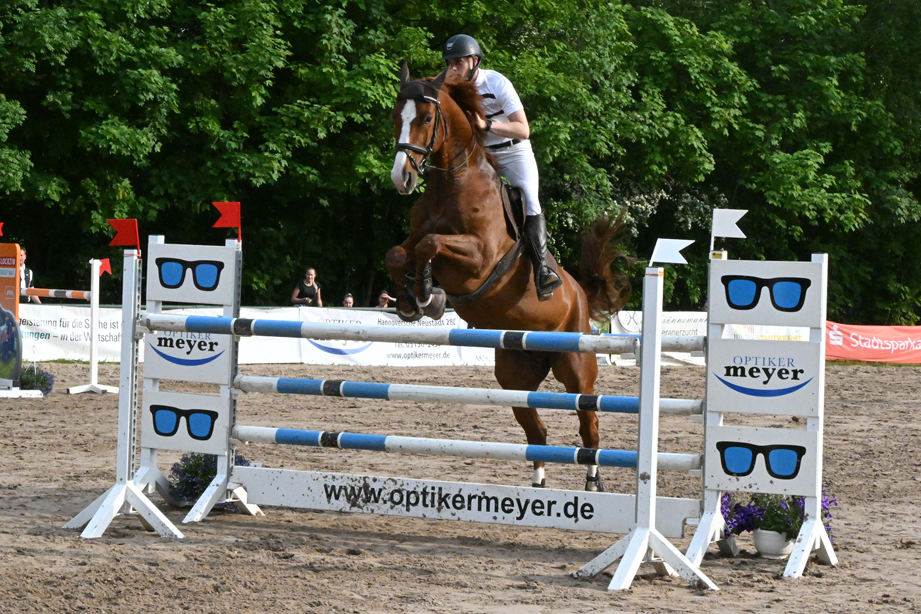 Einen Sieg für die Burgdorfer holte Louis Philipp Muhle auf Berta bei der Springprüfung der Klasse M* am Sonnabend. Der Sonntag stand für das Gespann unter keinem so guten Stern: Bei der Springprüfung der Klasse M* mit Siegerrunde erschrak Berta beim Doppelhindernis, woraufhin Louis Philipp Muhle abbrach. Mit Clarimero versuchte er sich ebenso bei der Punktespringprüfung der Klasse M*. Allerdings eher zur Übung. Nachdem er auf Clarimero zuvor bei der Springprüfung Klasse L mit steigenden Anforderungen den 4. Platz belegt hatte, wollte er es auch eine Klasse höher versuchen, musste aber auch hier abbrechen, weil Clarimero ein Hindernis verweigerte. "Nun heißt es weiter üben", zog er dennoch ein positives Fazit nach seinen Starts.