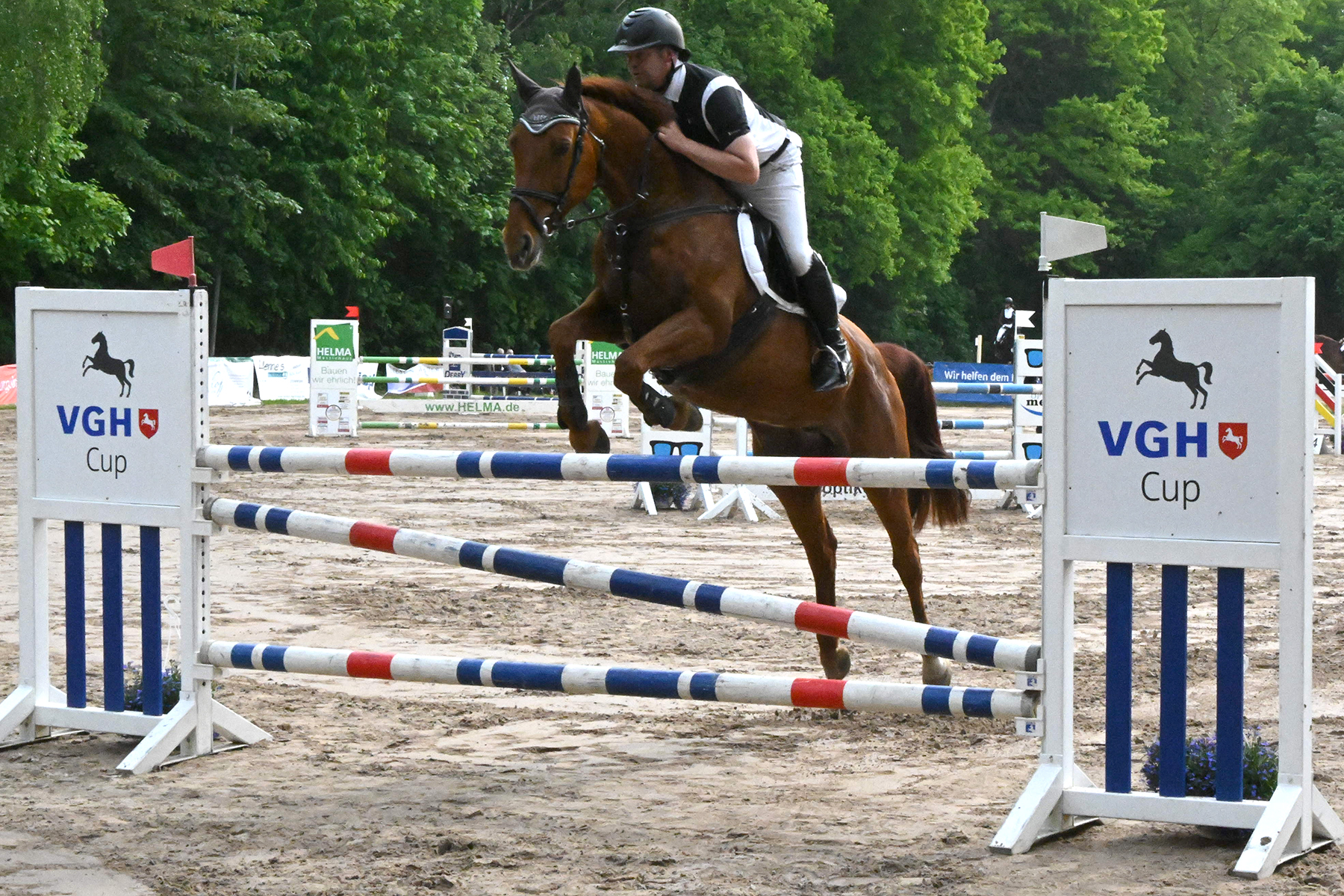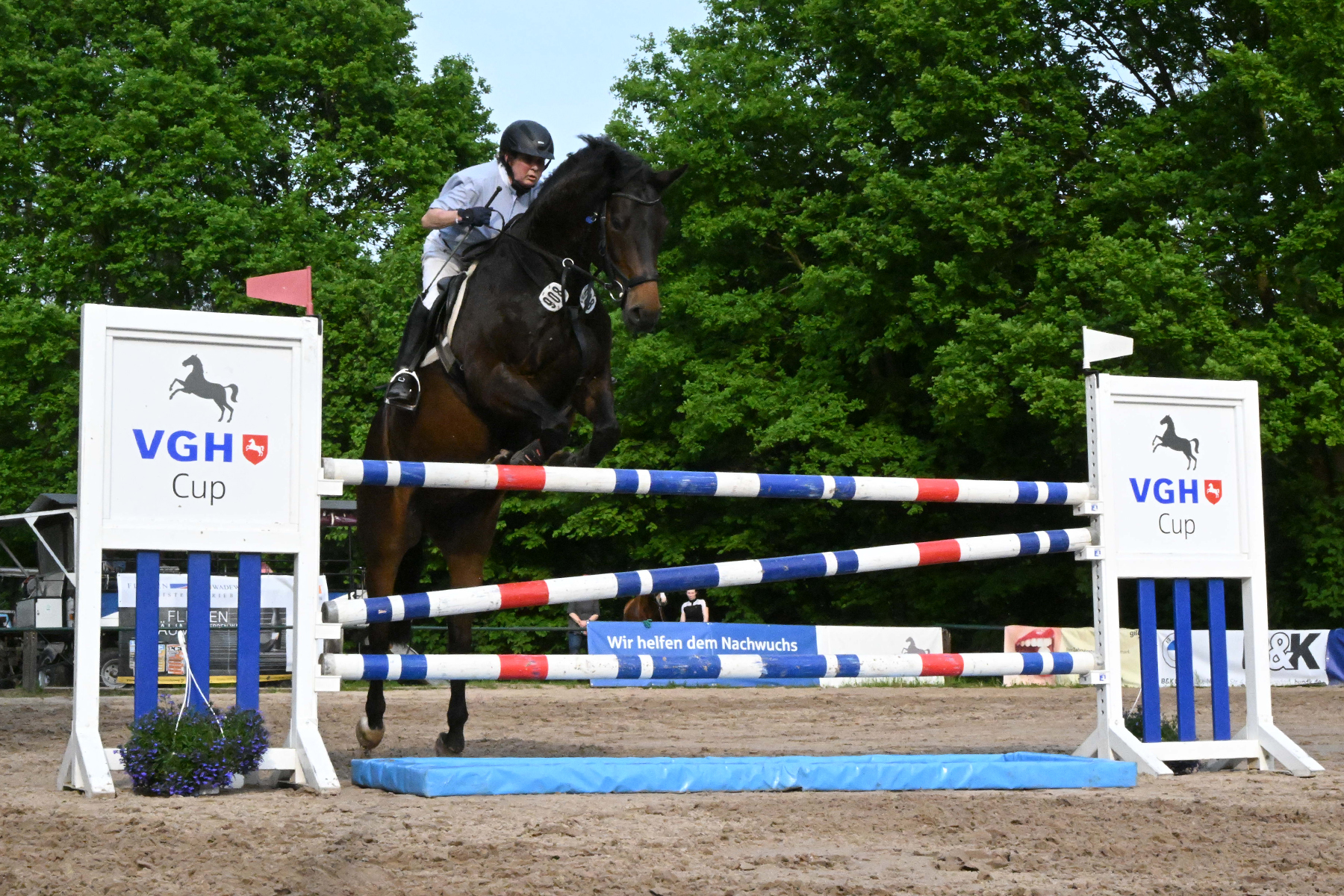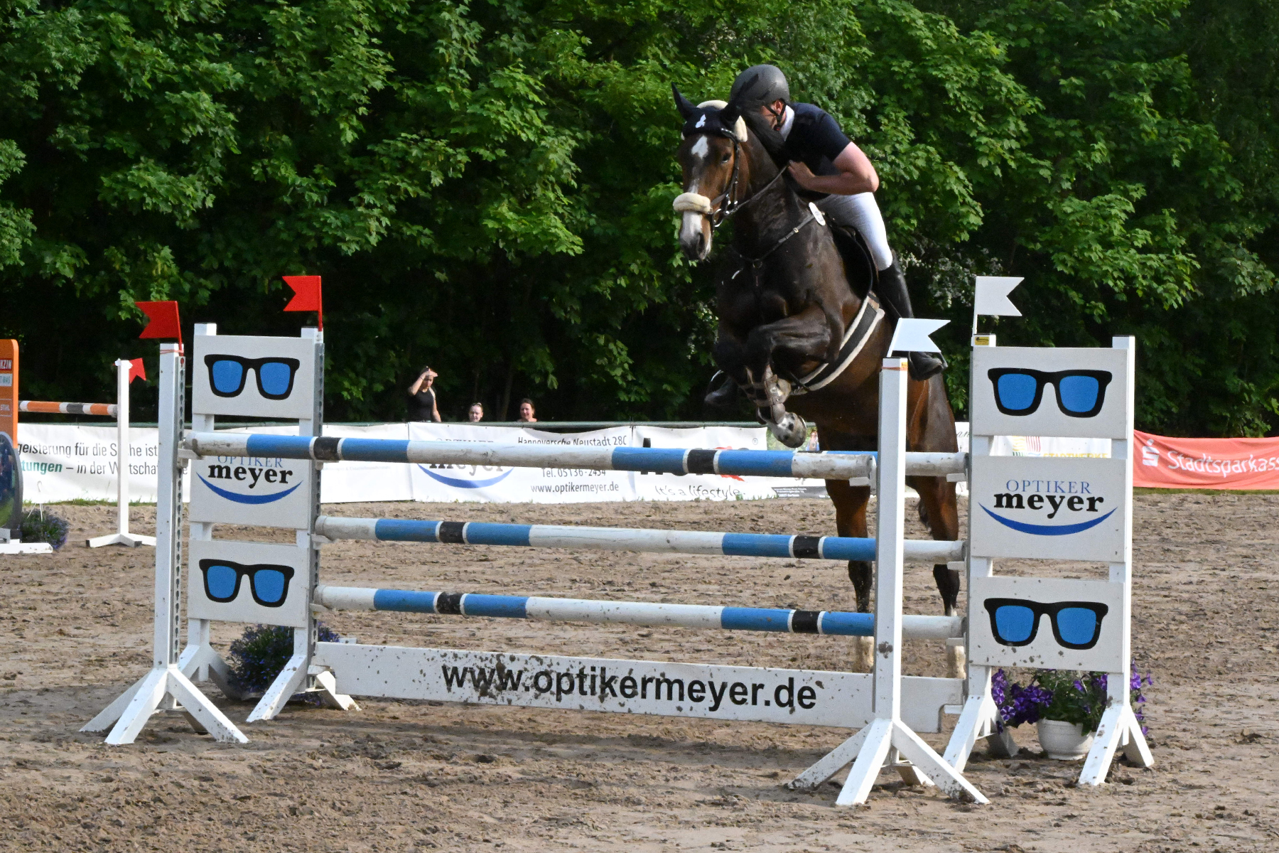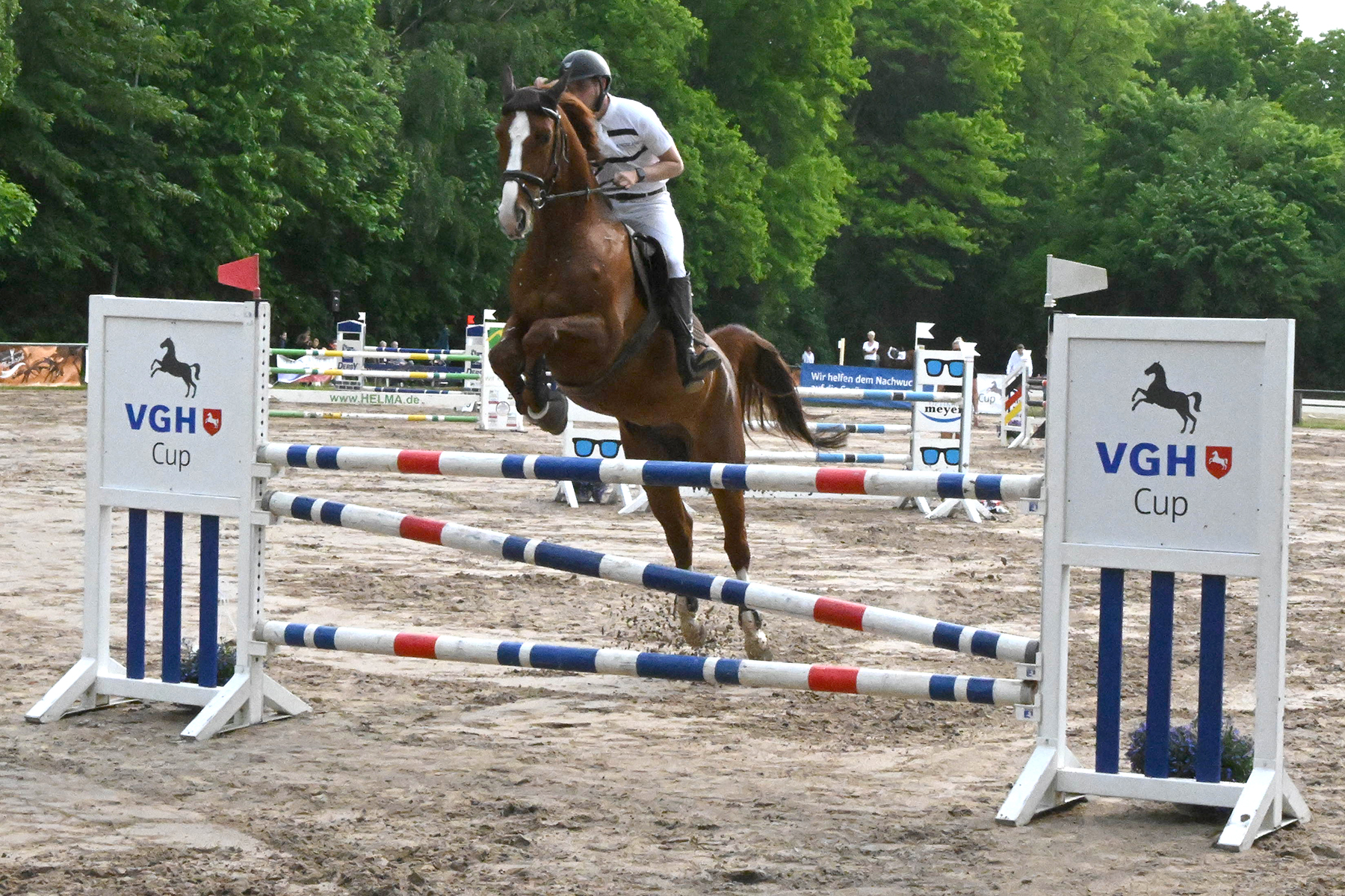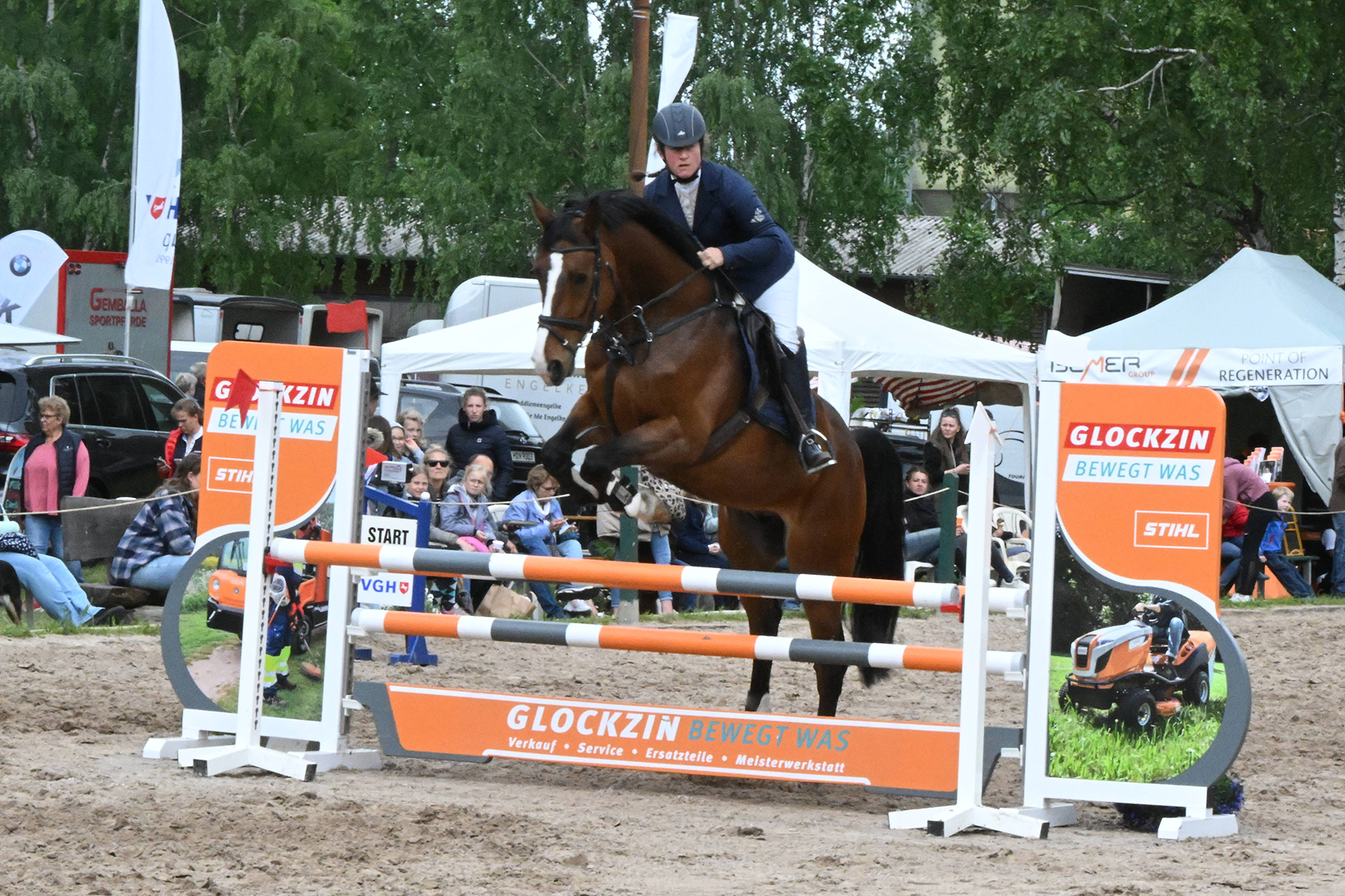Einen Sieg für die Burgdorfer holte Louis Philipp Muhle auf Berta bei der Springprüfung der Klasse M* am Sonnabend. Der Sonntag stand für das Gespann unter keinem so guten Stern: Bei der Springprüfung der Klasse M* mit Siegerrunde erschrak Berta beim Doppelhindernis, woraufhin Louis Philipp Muhle abbrach. Mit Clarimero versuchte er sich ebenso bei der Punktespringprüfung der Klasse M*. Allerdings eher zur Übung. Nachdem er auf Clarimero zuvor bei der Springprüfung Klasse L mit steigenden Anforderungen den 4. Platz belegt hatte, wollte er es auch eine Klasse höher versuchen, musste aber auch hier abbrechen, weil Clarimero ein Hindernis verweigerte. "Nun heißt es weiter üben", zog er dennoch ein positives Fazit nach seinen Starts.