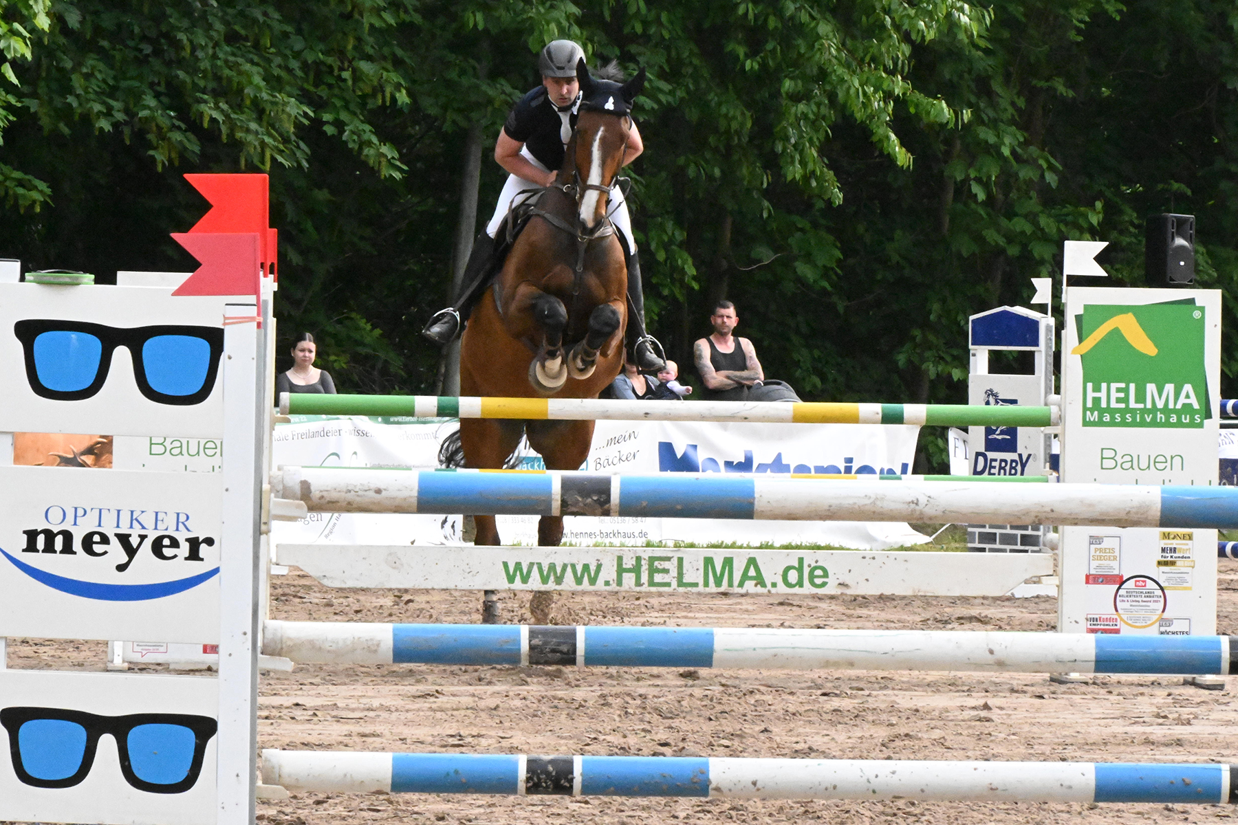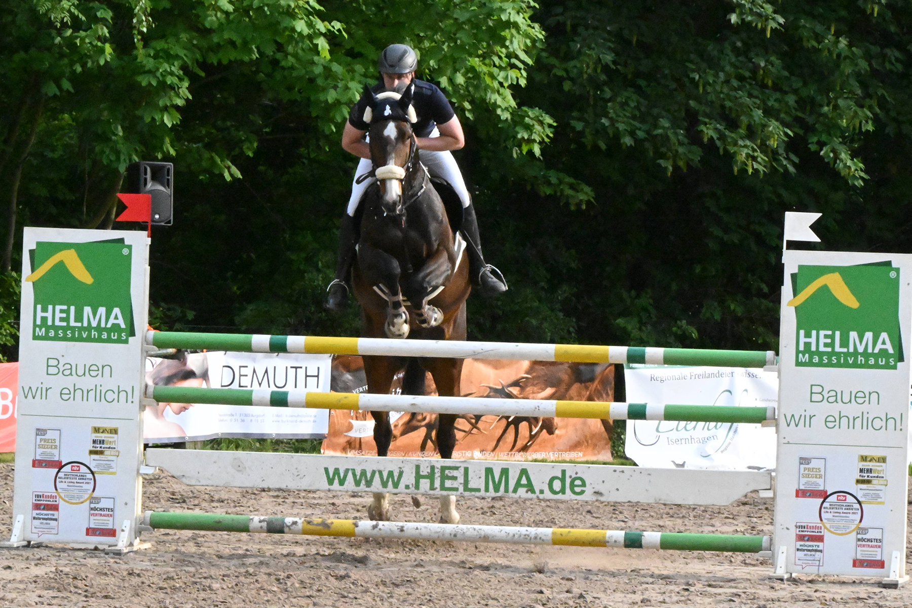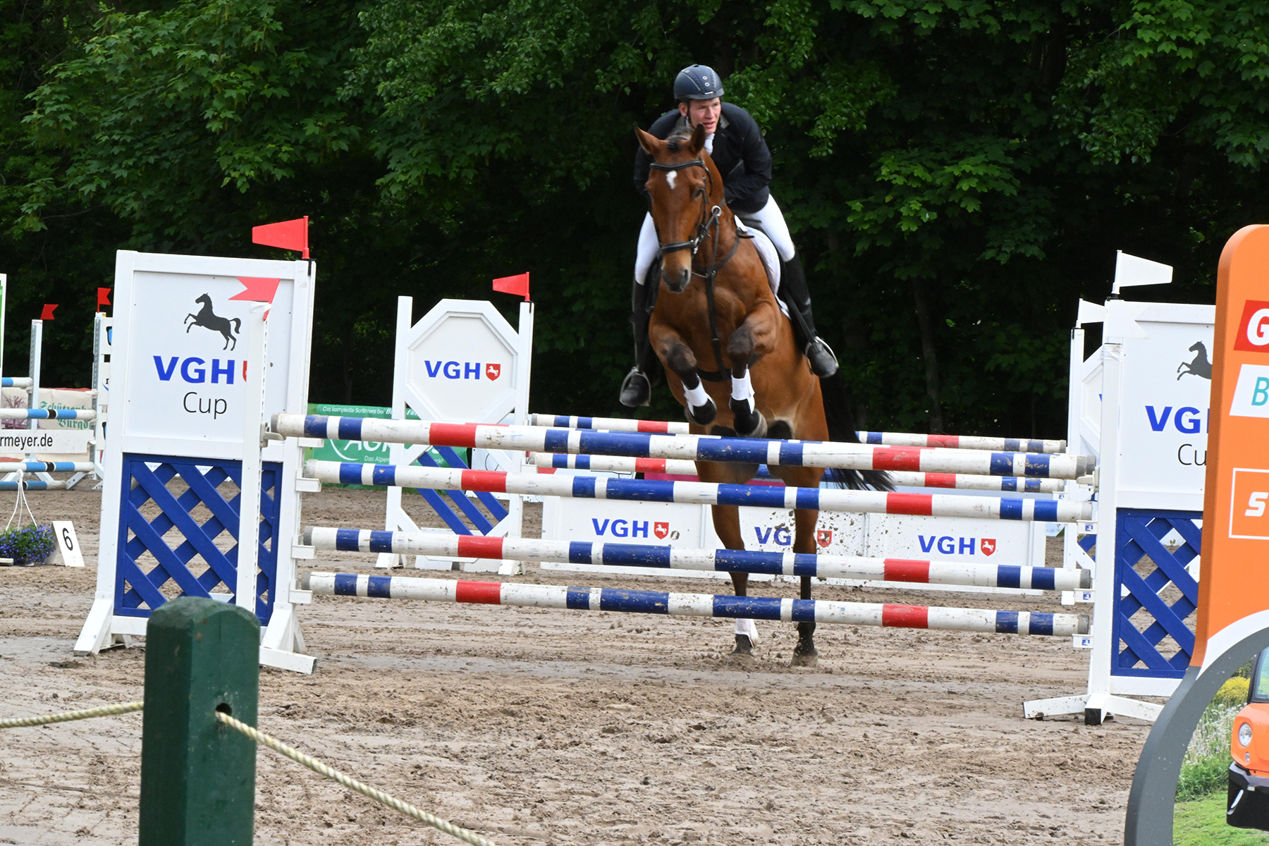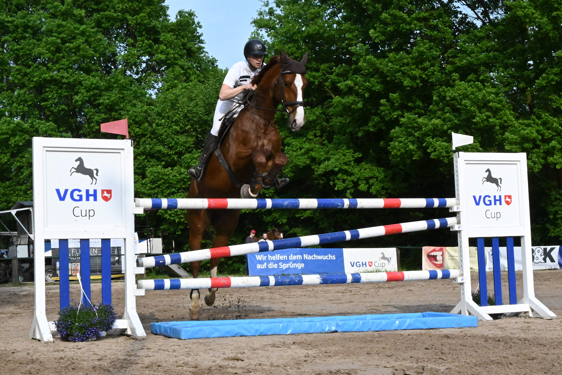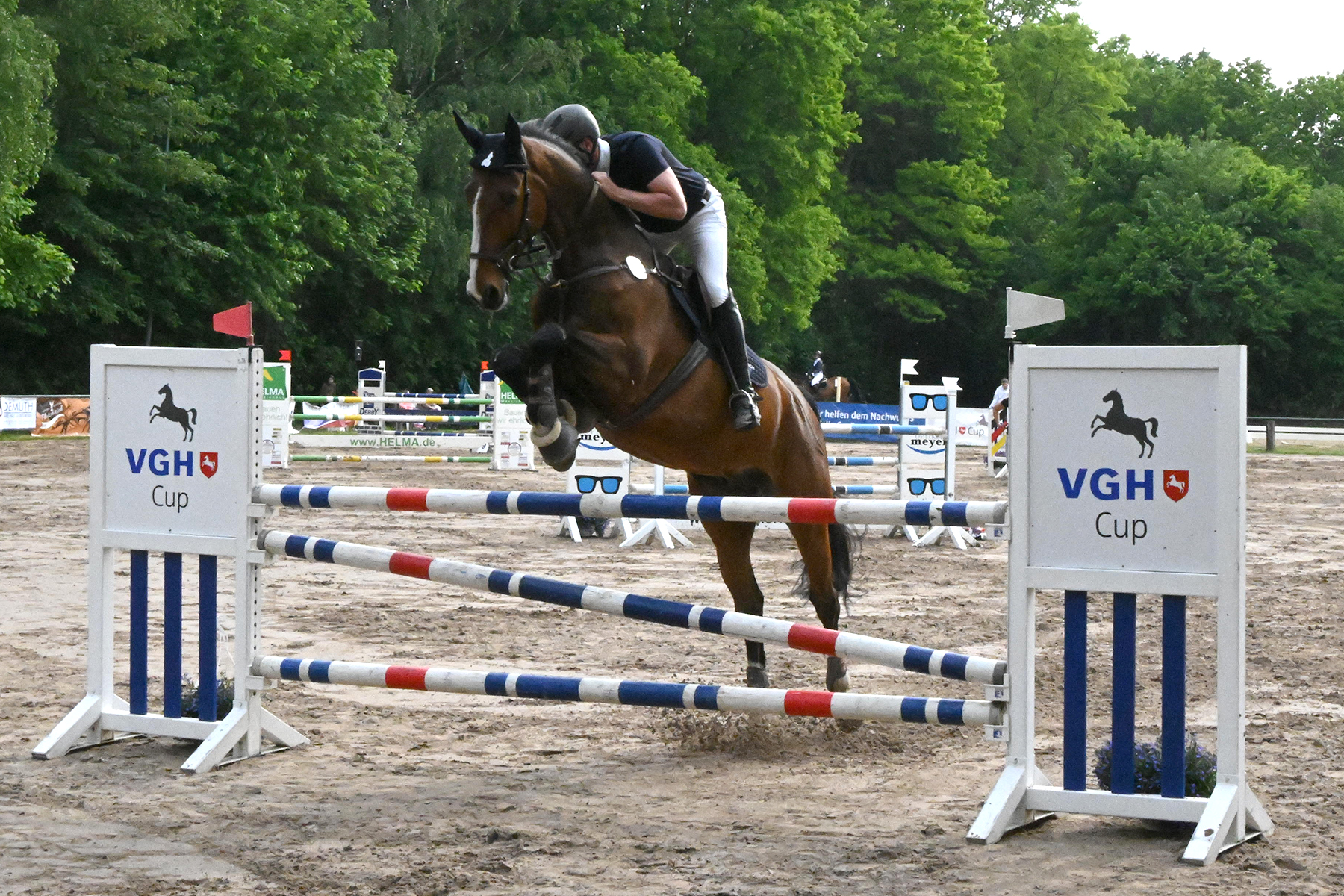Einen Sieg für die Burgdorfer holte Louis Philipp Muhle auf Berta bei der Springprüfung der Klasse M* am Sonnabend. Der Sonntag stand für das Gespann unter keinem so guten Stern: Bei der Springprüfung der Klasse M* mit Siegerrunde erschrak Berta beim Doppelhindernis, woraufhin Louis Philipp Muhle abbrach. Mit Clarimero versuchte er sich ebenso bei der Punktespringprüfung der Klasse M*. Allerdings eher zur Übung. Nachdem er auf Clarimero zuvor bei der Springprüfung Klasse L mit steigenden Anforderungen den 4. Platz belegt hatte, wollte er es auch eine Klasse höher versuchen, musste aber auch hier abbrechen, weil Clarimero ein Hindernis verweigerte. "Nun heißt es weiter üben", zog er dennoch ein positives Fazit nach seinen Starts.