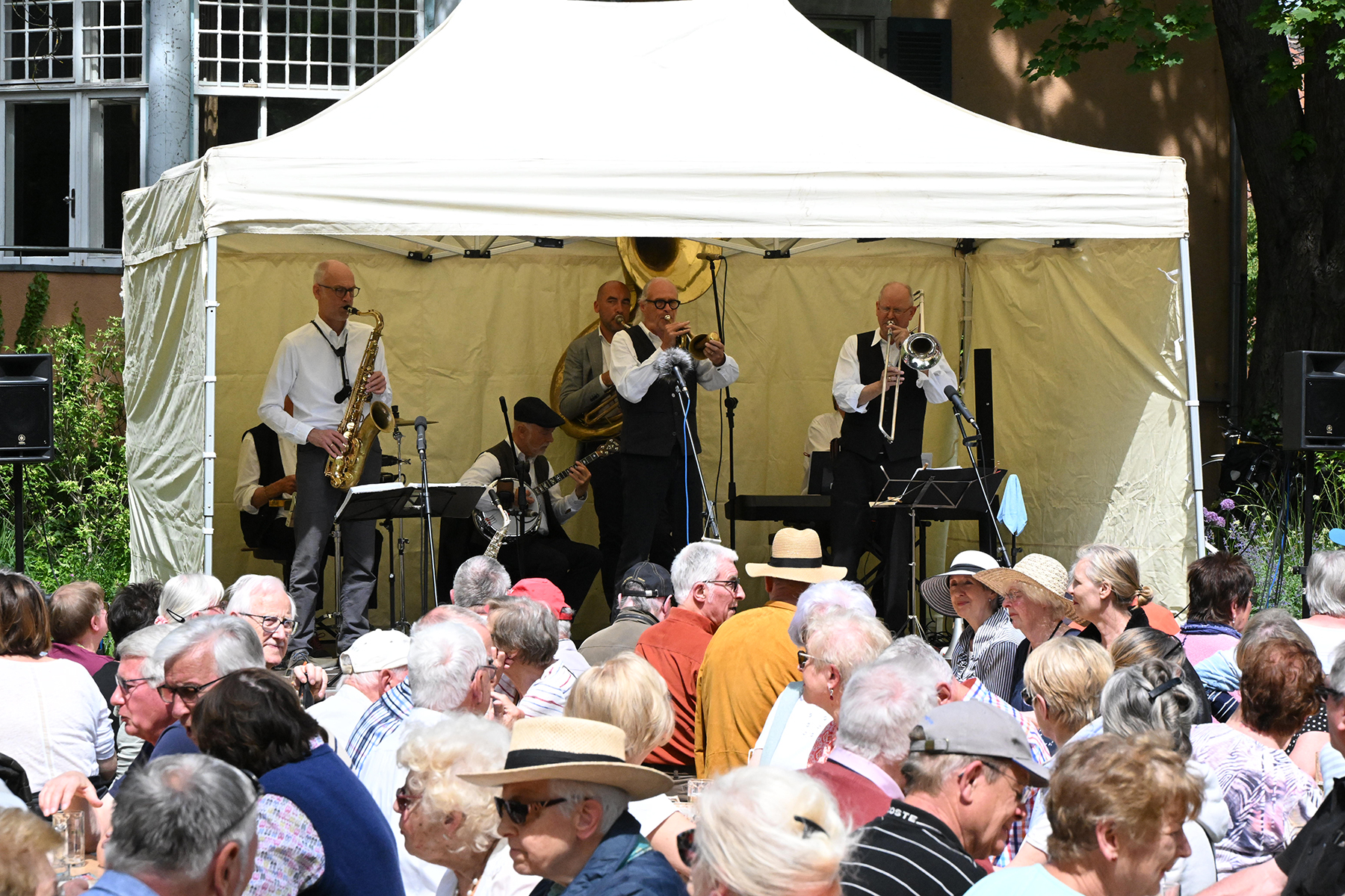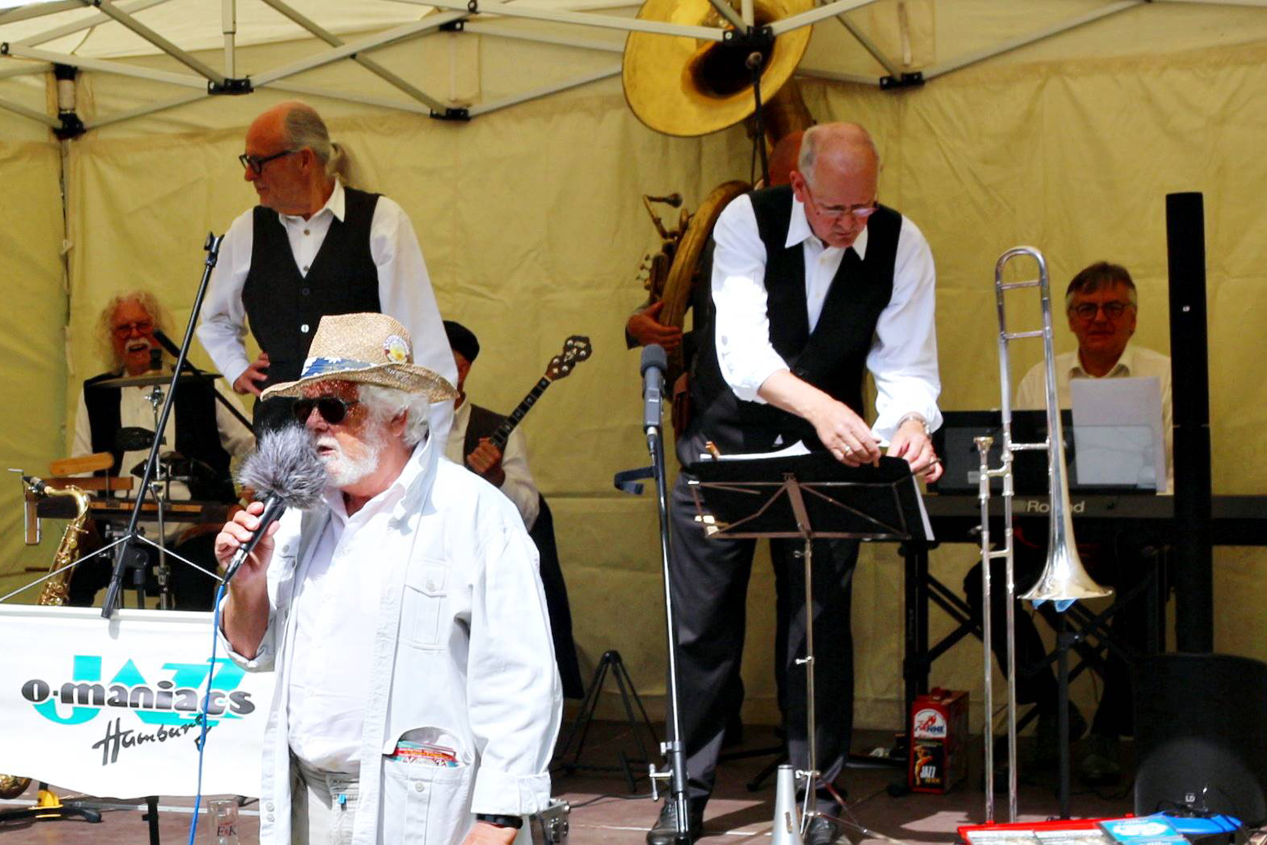 Vor mehr als 30 Jahren initiierte Burgdorfs damaliger stellvertretender Stadtdirektor Dagobert Strecker einen Open Air-Frühschoppen, der zahlreiche Fans der Jazzmusik am Pfingstmontag in den Schlosspark lockte und dessen Organisation später von Paul Rohde übernommen wurde. Seitdem wurde Rohde so etwas wie der Spiritus Rector der Traditionsveranstaltung mit besten Verbindungen zum Wettergott. Denn auch am gestrigen Pfingstmontag, 29. Mai 2023, konnte den sonnigen Jazzfrühschoppen hinter der "Alten Landratsvilla" mit den Jazz-O-Maniacs aus Hamburg kein Wässerchen trüben.
