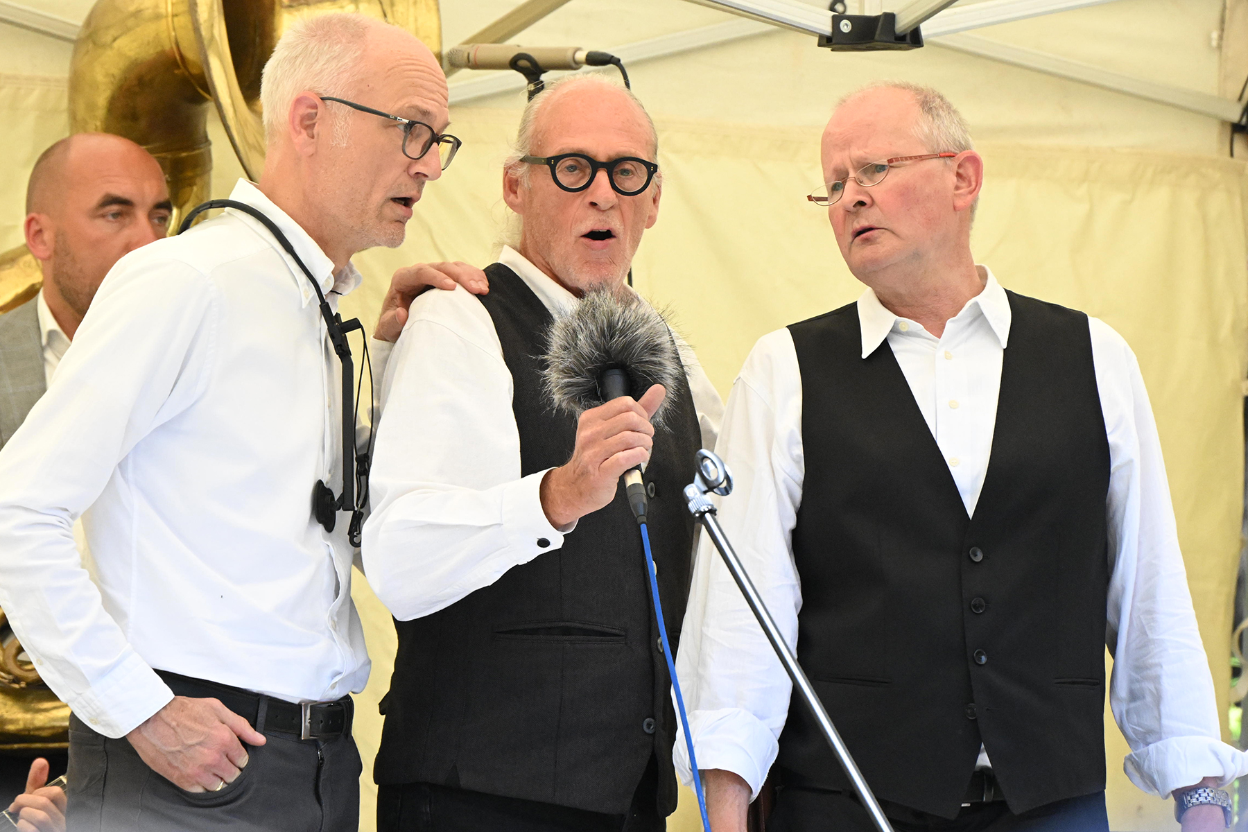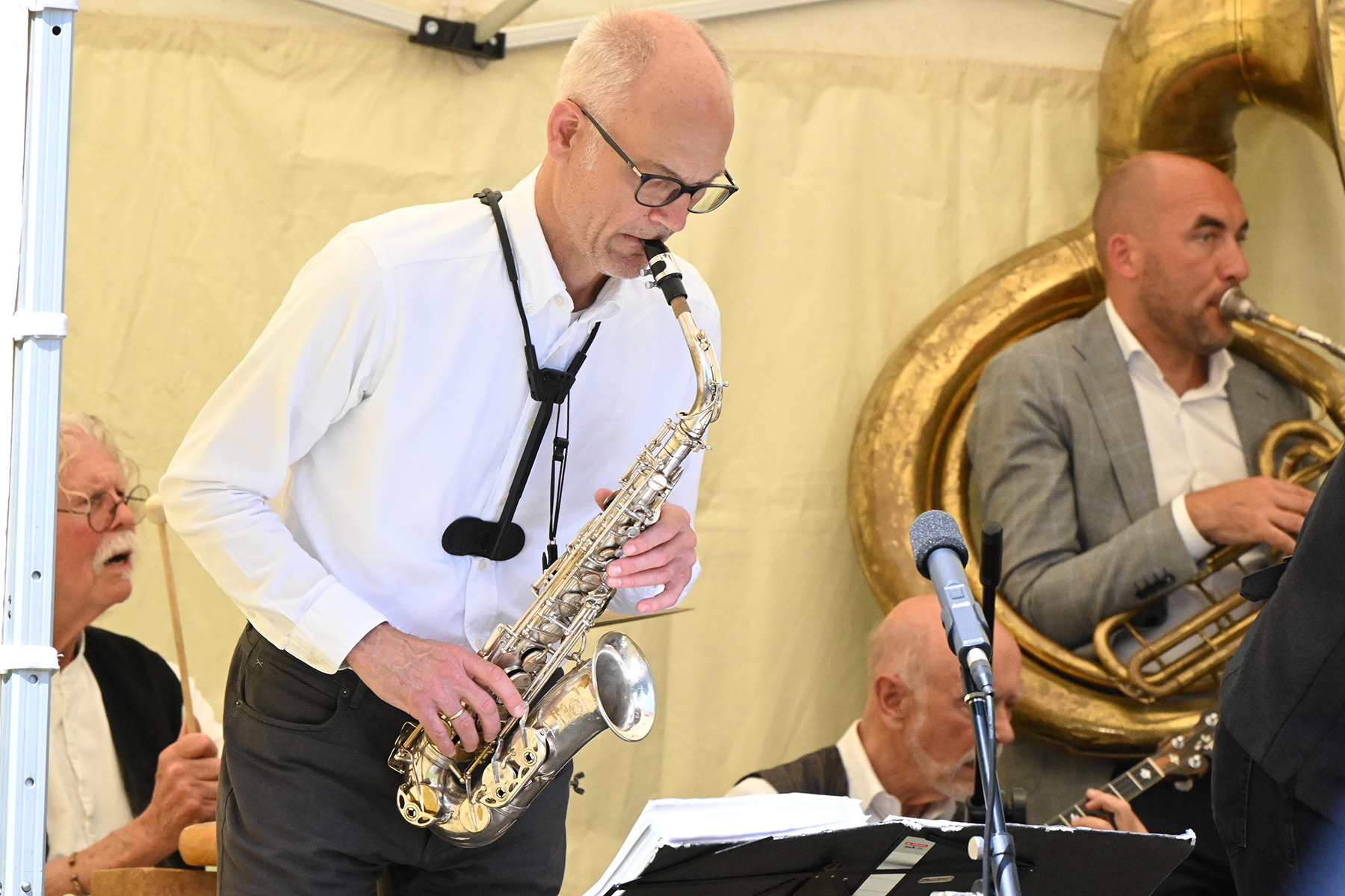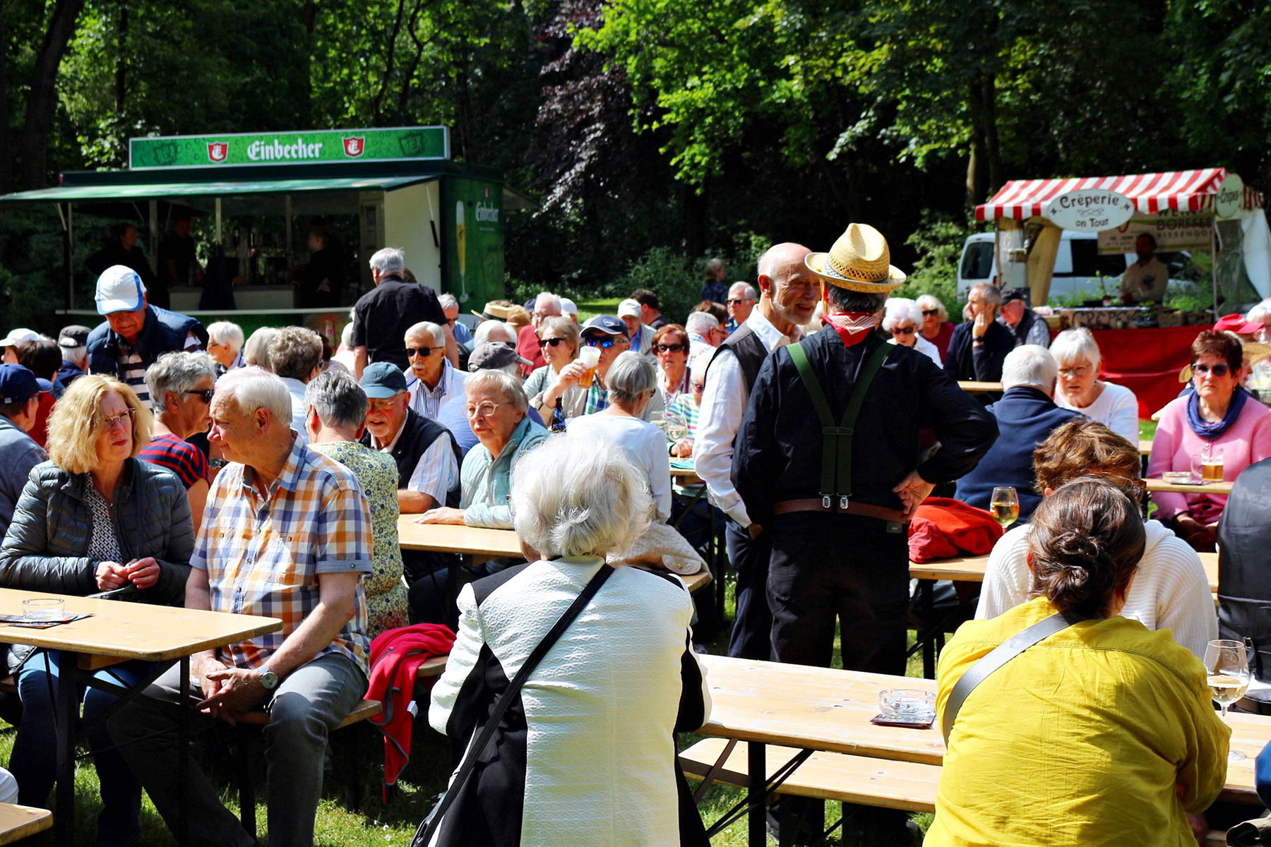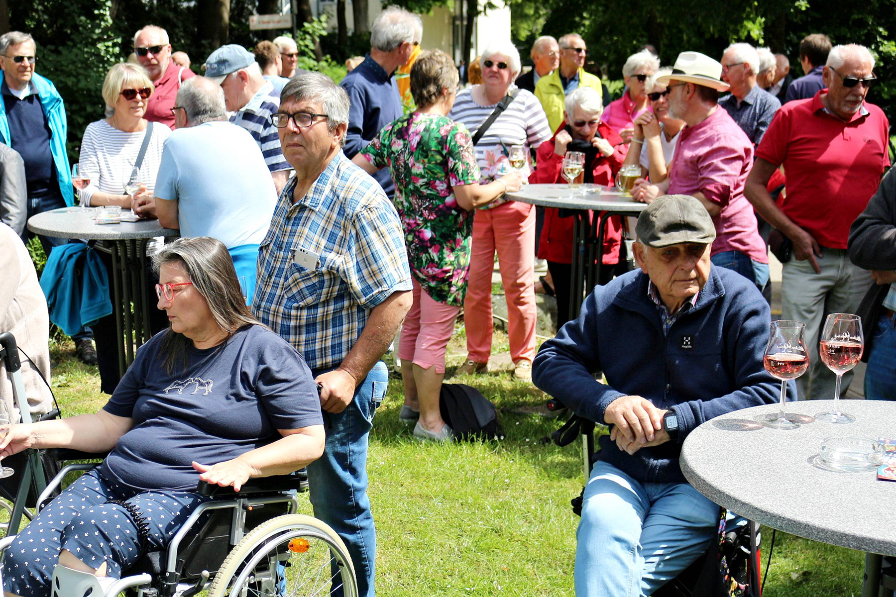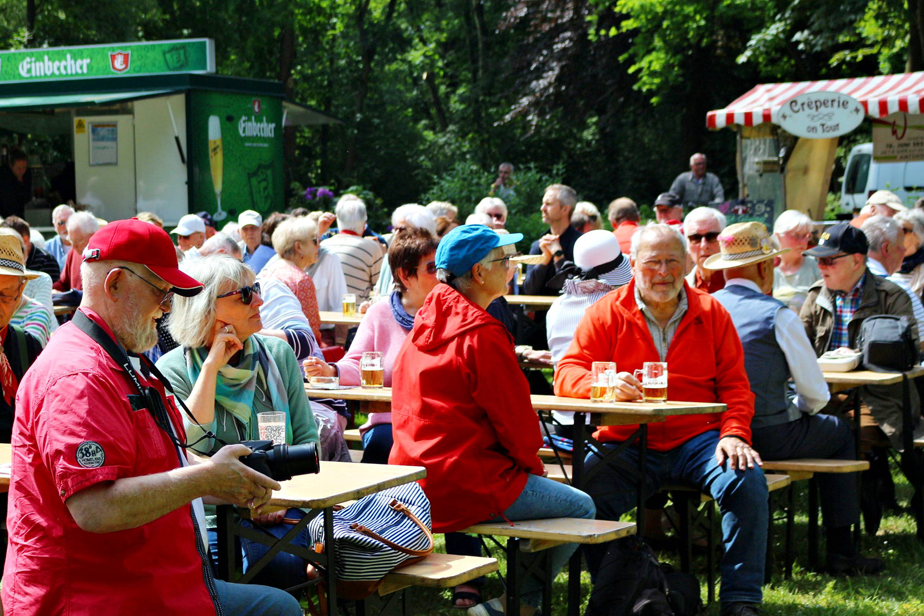 Wässerchen und andere kühle Durstlöscher gab es für die reichlich anwesenden Musikfreunde am Müsken-Weinstand sowie vom Zapfhahn des bewirtschaftenden Veranstaltungsteams von Peter Widdel. So versorgt servierten die sieben Hansestadt-Mucker dazu Hot Jazz aus den 20er Jahren.