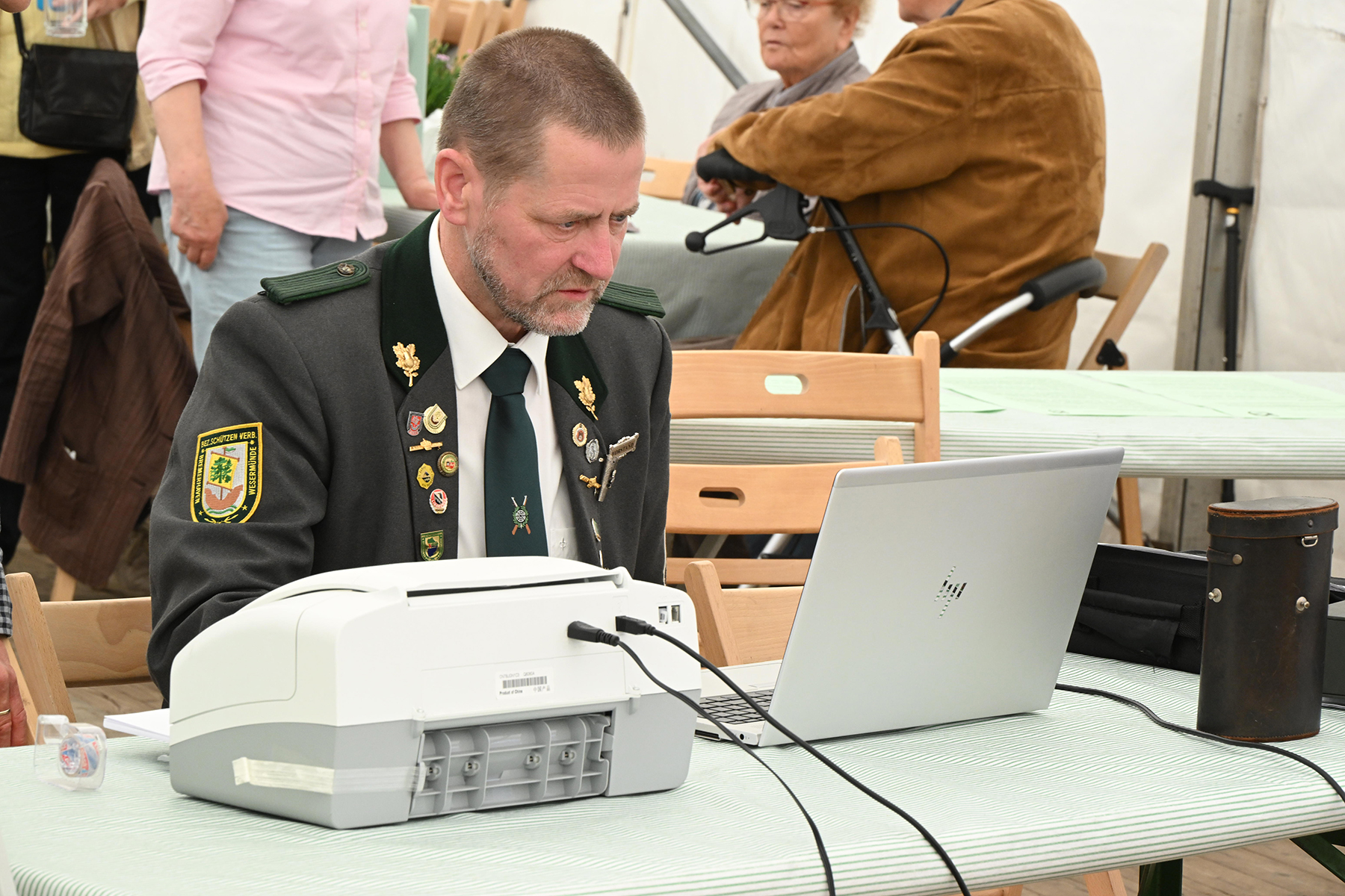 Erstmals hat die Schützengesellschaft Sorgensen die Königswürde nicht im Vorfeld des Schützenfestes ermittelt, sondern während des Festes. Am heutigen Sonnabend, 3. Juni 2023, wurde sodann im Zelt auf dem Festplatz mit dem Luftgewehr auf 10 Meter Entfernung auf den Vogel geschossen. Dieser wehrte sich jedoch mehr, als sich die Schützen gewünscht hatten. Nach 207 Schuss und einer Abkürzung standen die diesjährigen Majestäten fest..