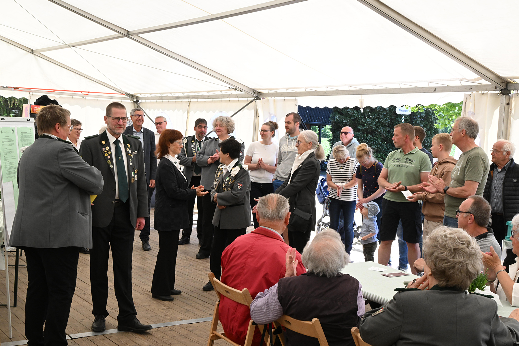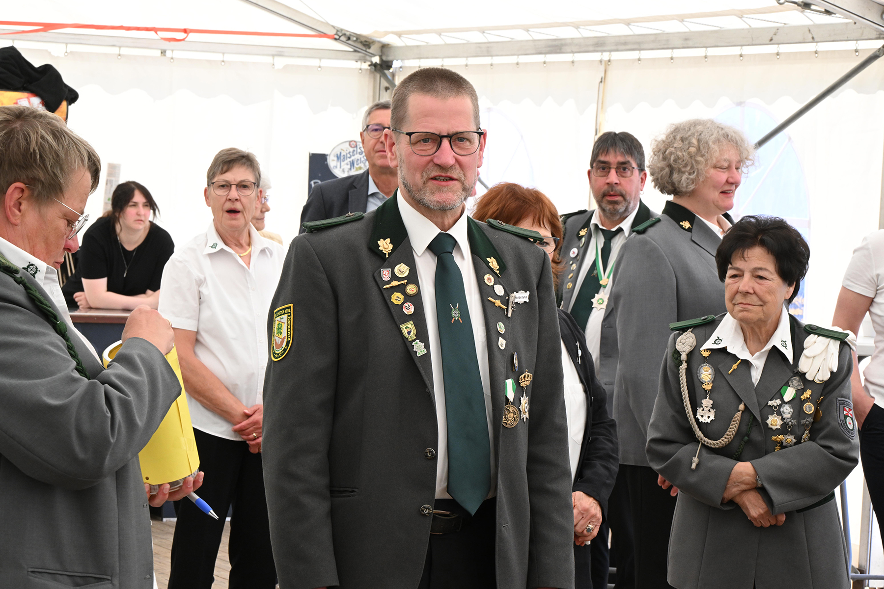 Desweiteren wurden am Freitag Mitglieder der Schützengesellschaft geehrt. Die silberne Nadel des Niedersächsischen Sportschützenverbandes (NSSV) für 15-jährige Mitgliedschaft erhielten Heike Grotheer, Svenja Grotheer und Jannis Haase. Die Ehrennadel des Deutschen Schützenbundes in Silber für 25 Jahre wurde an Elke Kistner und Heiner Bührke verliehen. Die Ehrennadel des Deutschen Schützenbundes in Gold für 40 Jahre Mitgliedschaft wurde Margrid Stadtländer verliehen und mit der Ehrennadel des Deutschen Schützenbundes in Gold für 50-jährige Treue wurden Waltraud Pankow, Heinz Pankow und Inge Meier geehrt.