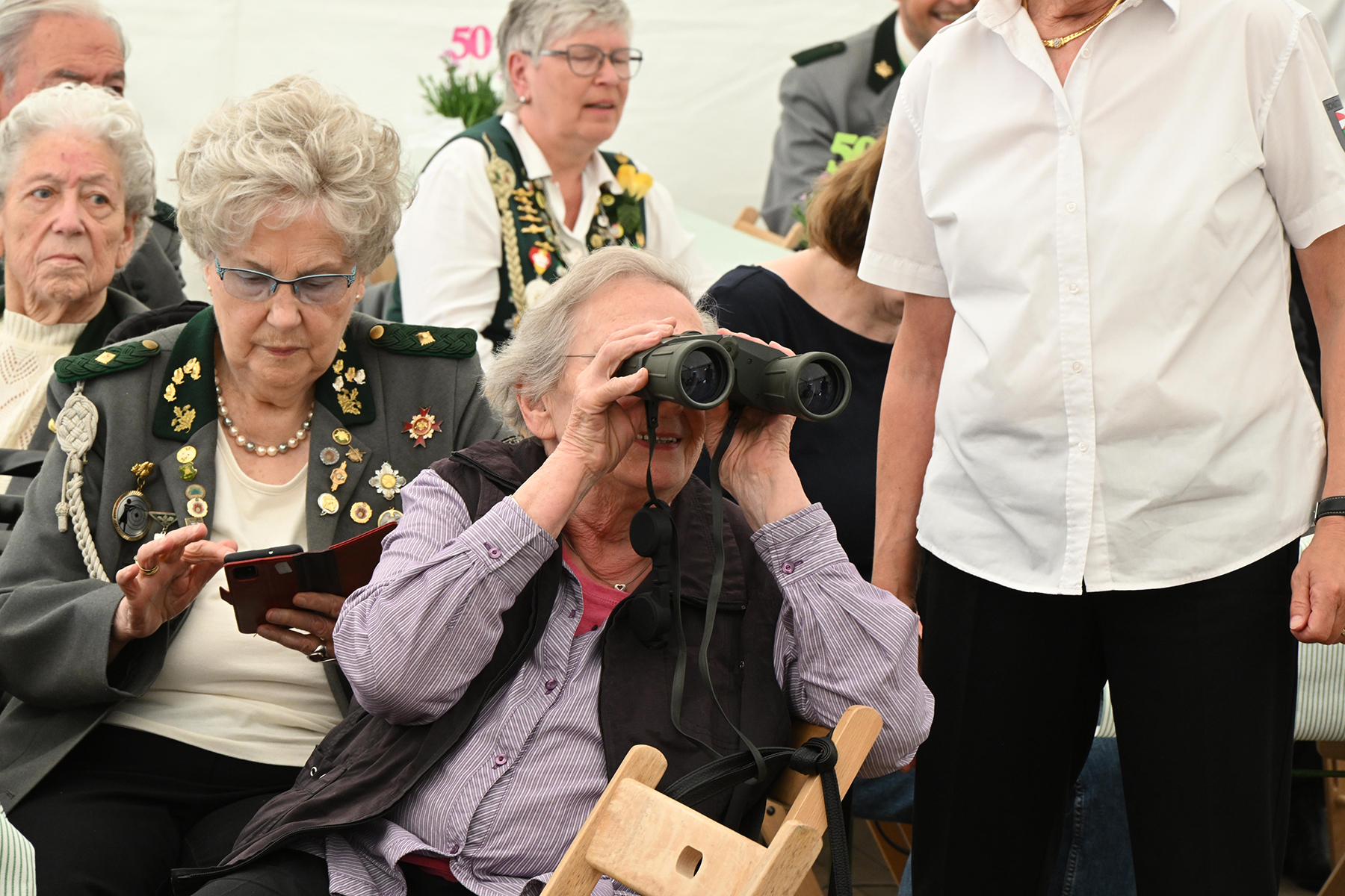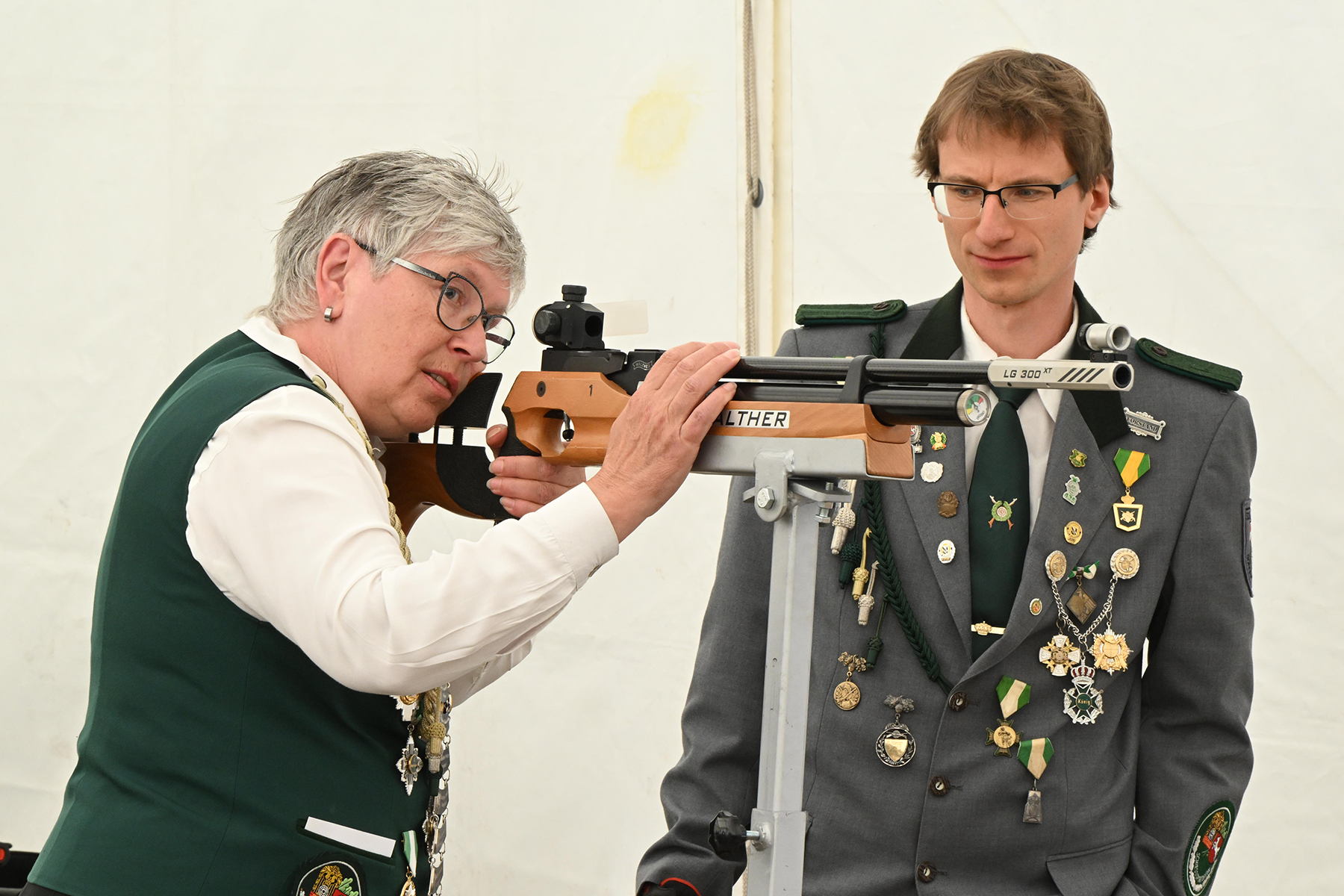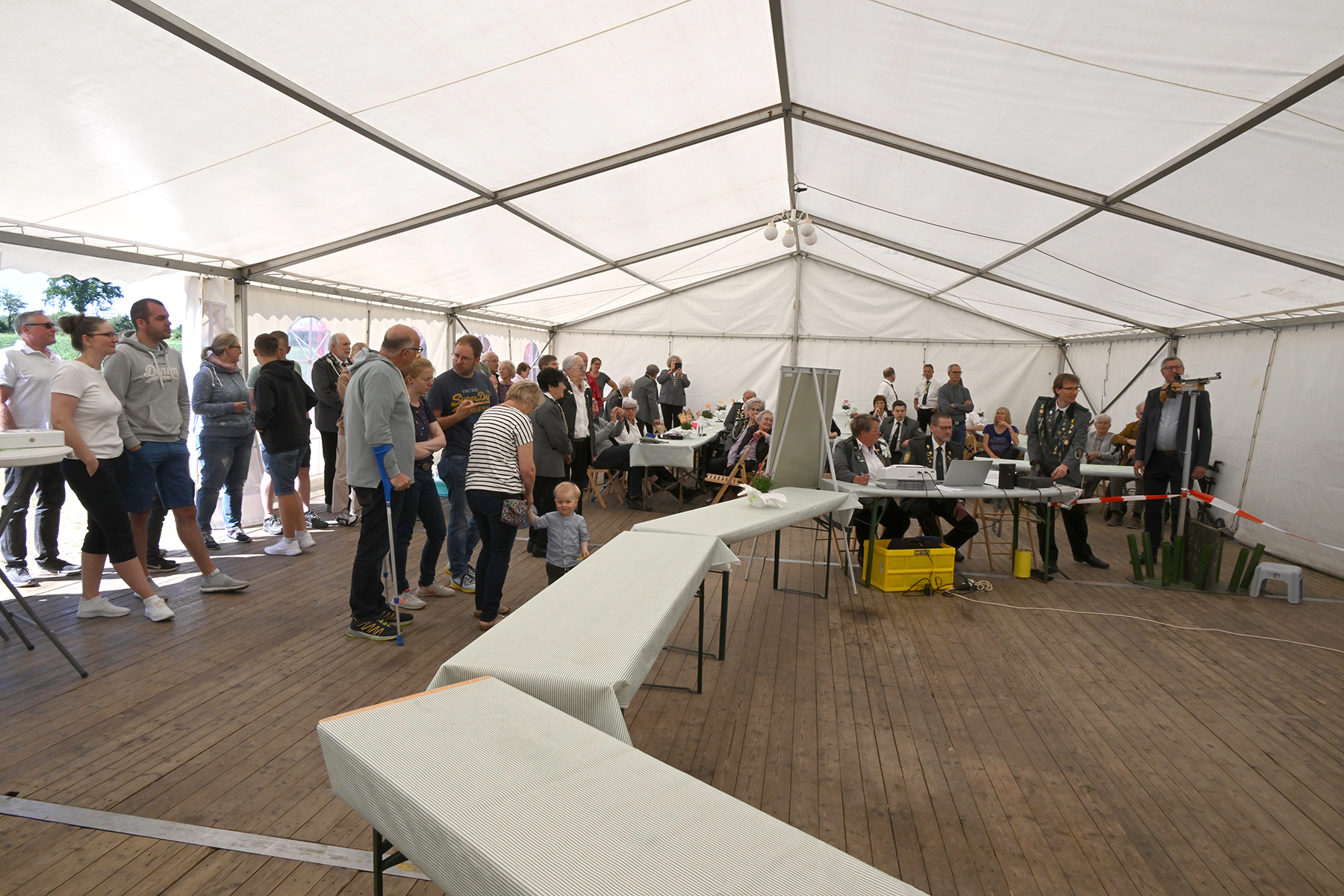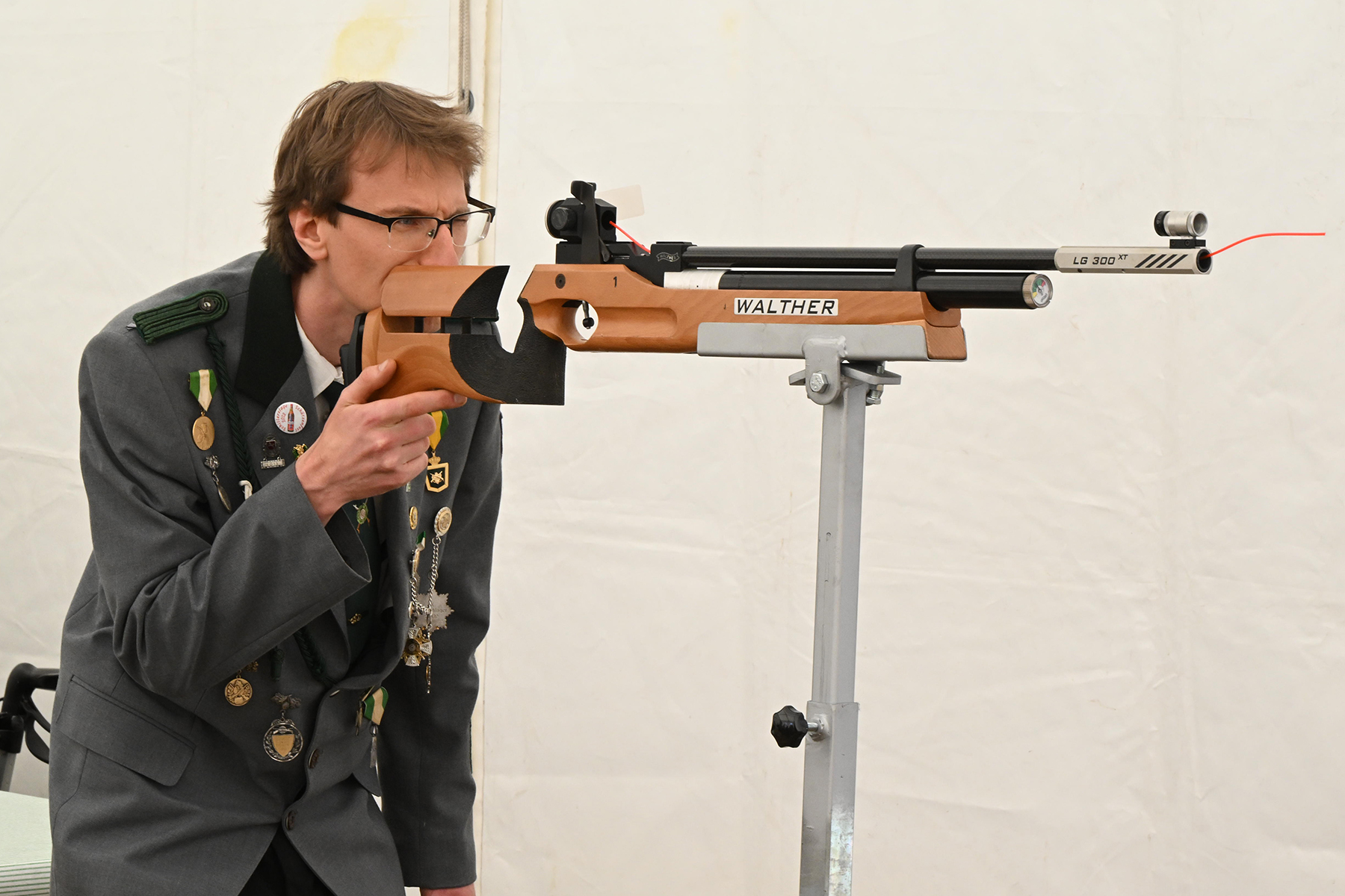 Um 11 Uhr hatten sich 35 Teilnehmer zum Schießen auf den Vogel angemeldet. Geschossen wurde zwar auf ein Ziel, jedoch in zwei Kategorien: Schützen und Einwohner. Denn es sollte einen Schützenkönig/Schützenkönigin und einen Dorfkönig/Dorfkönigin geben.
