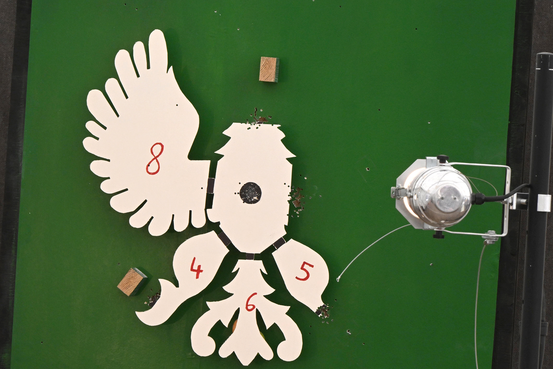 Doch heute war der Vogel widerspenstiger. Heinz Kistner und seine Vorstandskollegen Kai Wollenschläger und Frank Böhnke entschieden sich kurzerhand für eine Abkürzung, als der Wettbewerb zeitlich zu sehr in Verzug geriet, sodass schon auf den Rumpf geschossen werden durfte, ehe alle Teile abgeschossen worden waren.