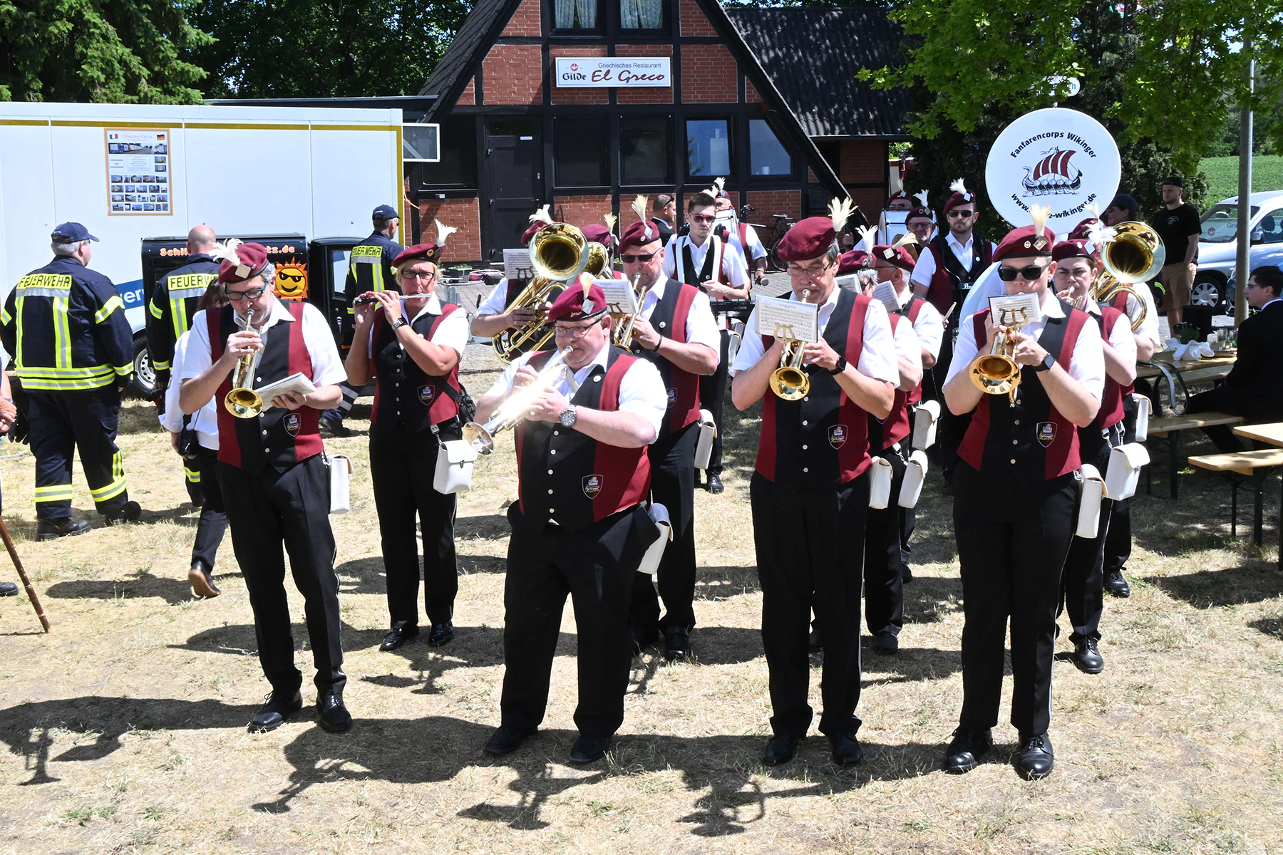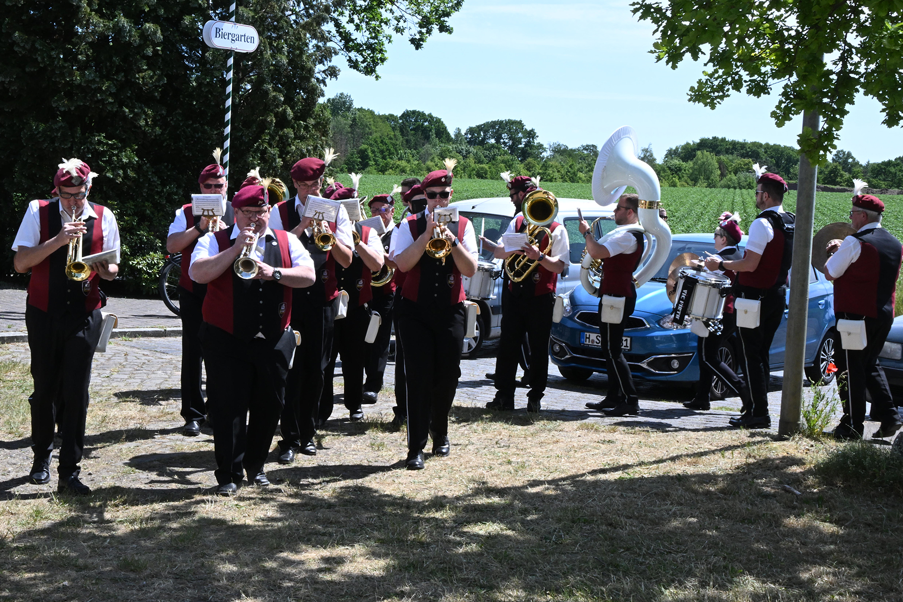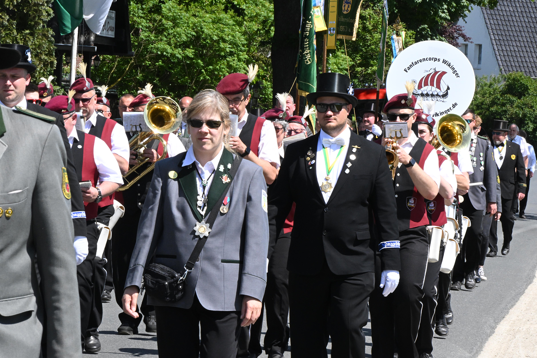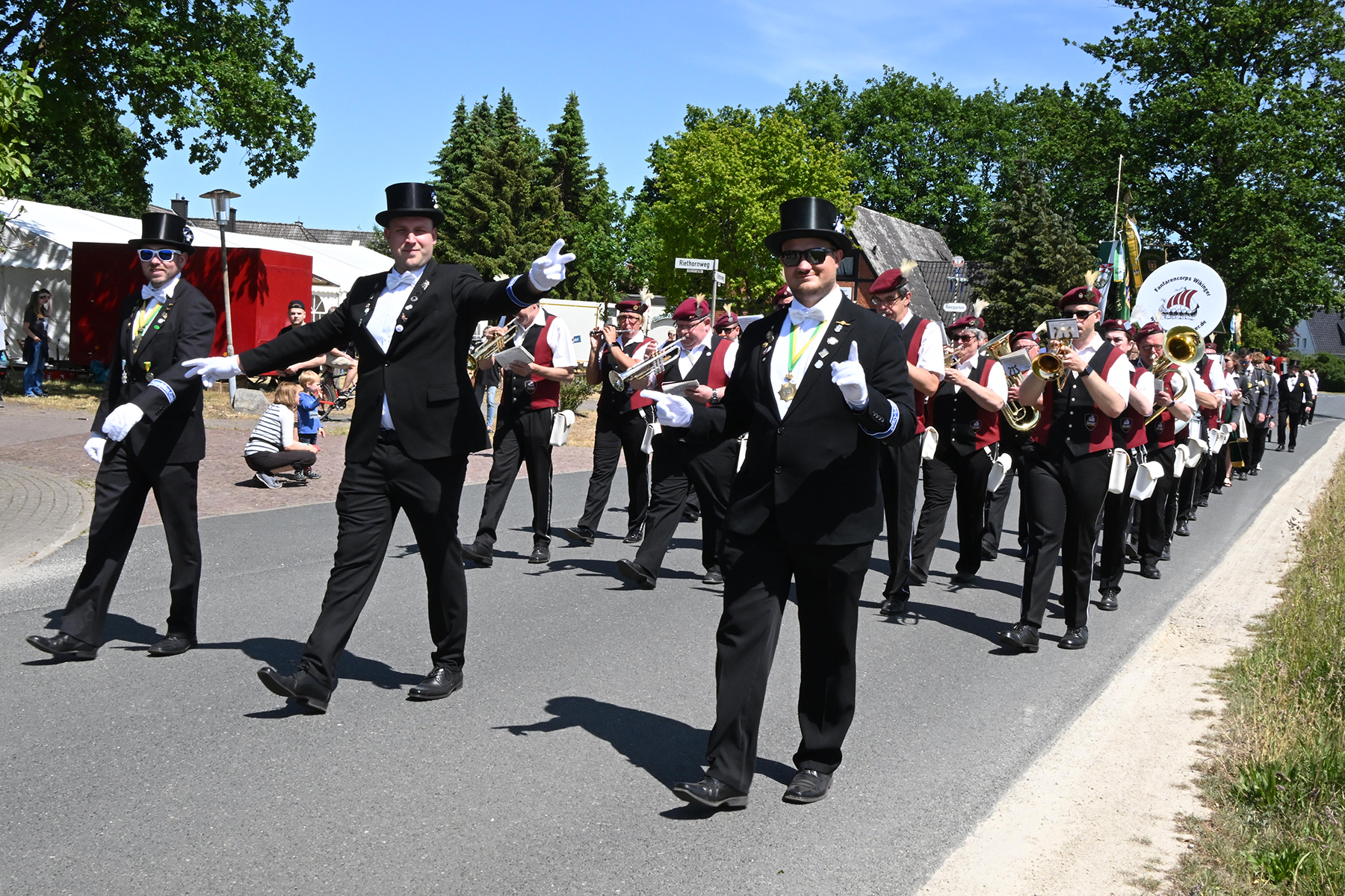 Anschließend ging es für die Schützen zum Anbringen der Königsscheibe. Unter der musikalischen Begleitung des Fanfarencorps "Wikinger" Burgdorf und Absicherung durch Mitglieder der Feuerwehren aus Dachtmissen und Weferlingsen ging es für die Schützen mit befreundeten Vereinen durch den Ort.