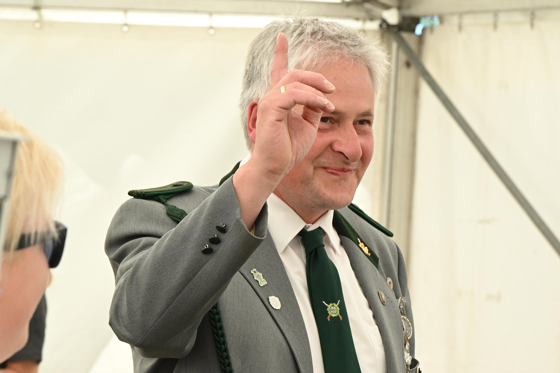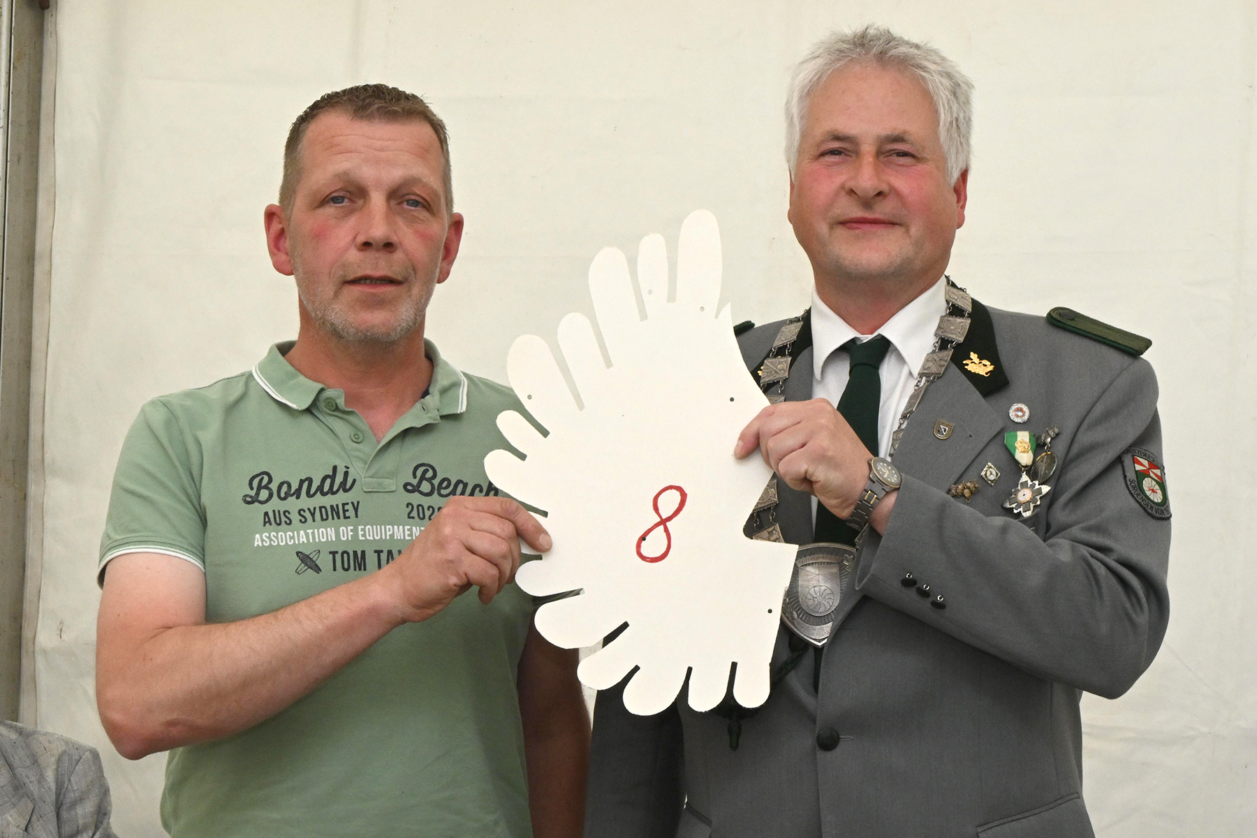 Und auch der Rumpf hielt länger als erwartet. Erneut schaute der Vorsitzende noch einmal nach, ob nachgeholfen werden muss, denn der Umzug sollte in wenigen Minuten starten: "Nein", war sein Urteil, denn es fehlten nach seinem Urteil nur noch wenige Schuss. Und er sollte Recht behalten: Herbert Wesche schoss kurze Zeit später und nur drei Minuten vor dem offiziellem Umzugsbeginn den Vogel ab löste den König von 2019, Werner Hildebrandt, ab. Erster Dorfkönig in Sorgensen ist Ralf Bösche geworden, der einen Flügel abschoss.