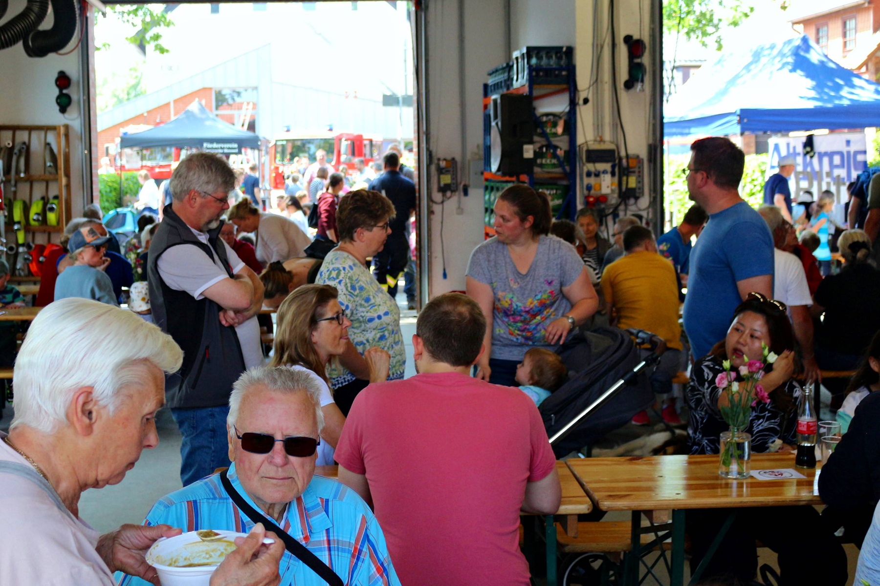 Ob Kinderschminken oder Hüpfburg, Fahrzeugshow oder eine Brandsimulation – für Groß und Klein war beim Informations- und Unterhaltungsangebot alles dabei. Mit kühlen Getränken und Leckerem aus der Gulaschkanone der Partnerwehr aus dem sachsen-anhaltinischen Colbitz war auch für Genussfreudige gut gesorgt. Der Besucherzuspruch war enorm, was auch als Anerkennung für die freiwilligen Anstrengungen der Heeßeler "Blauröcke" gewertet werden kann.