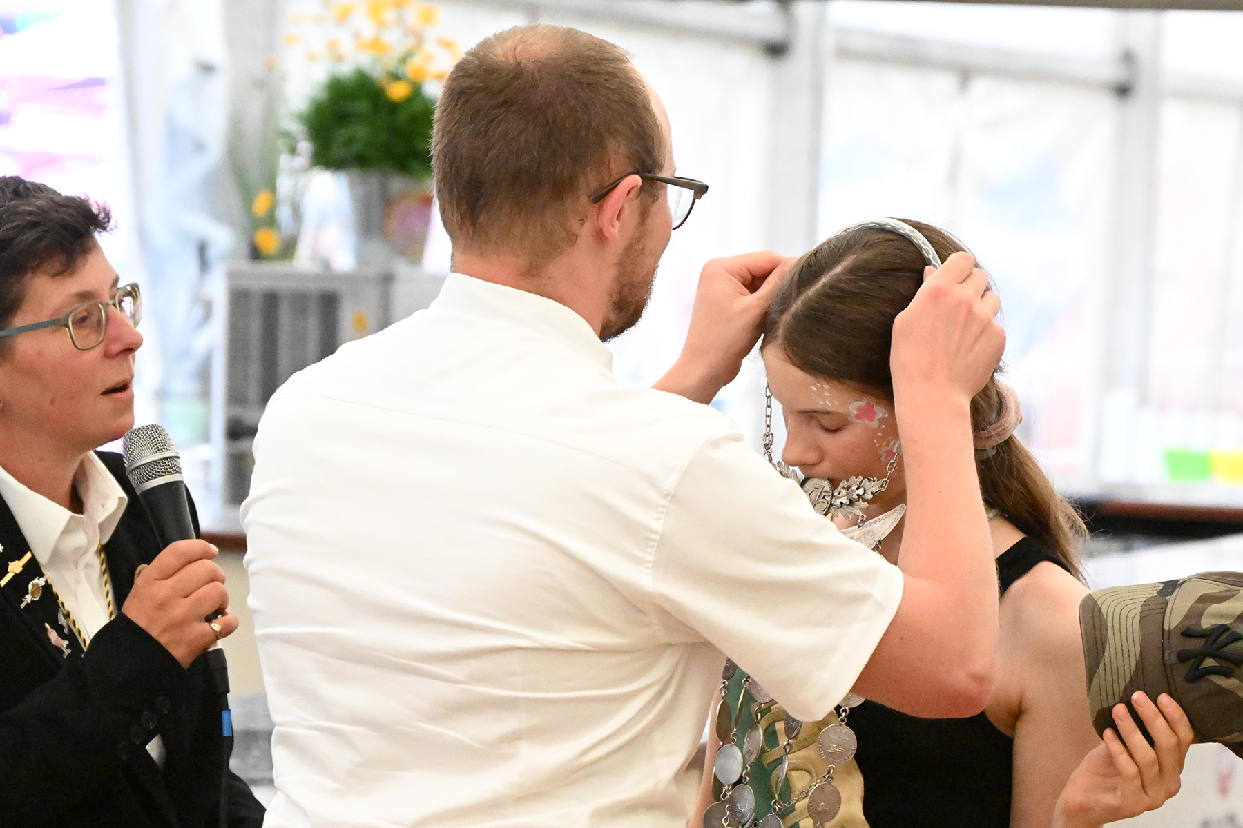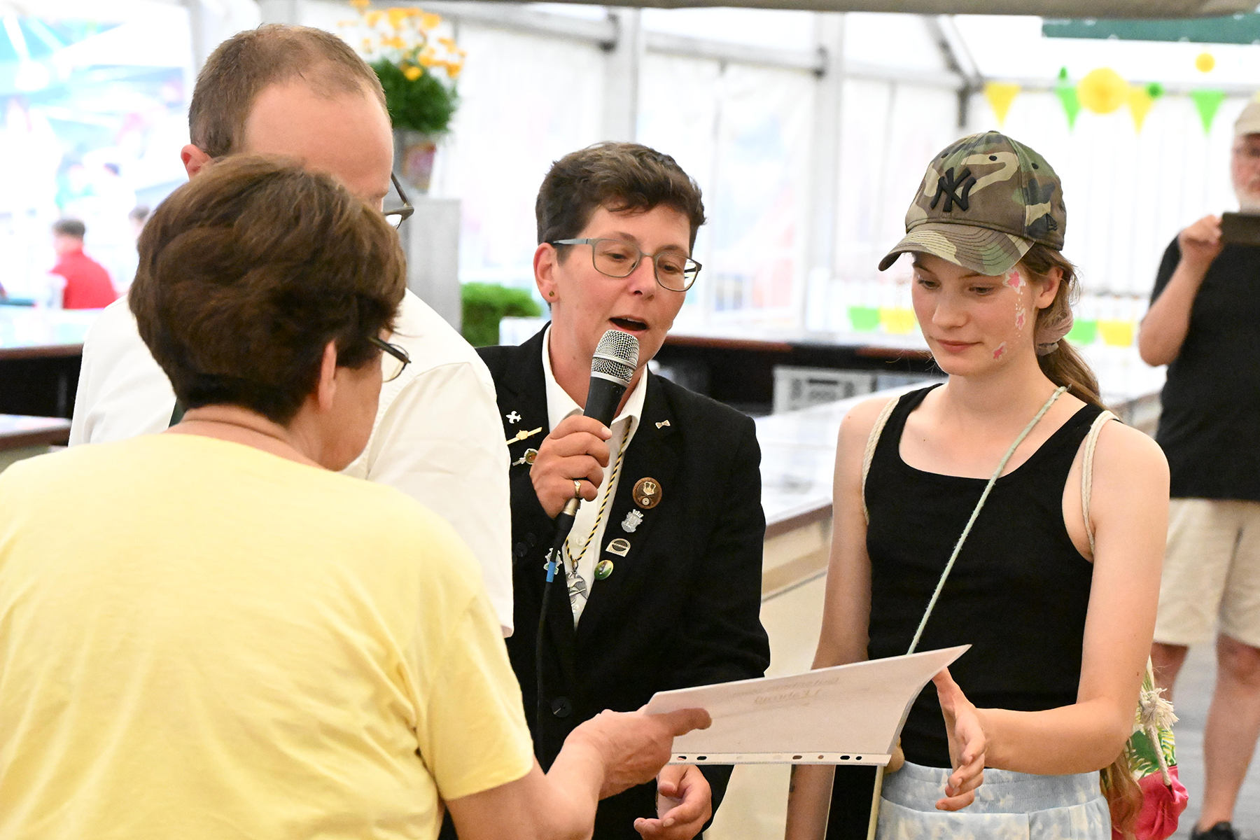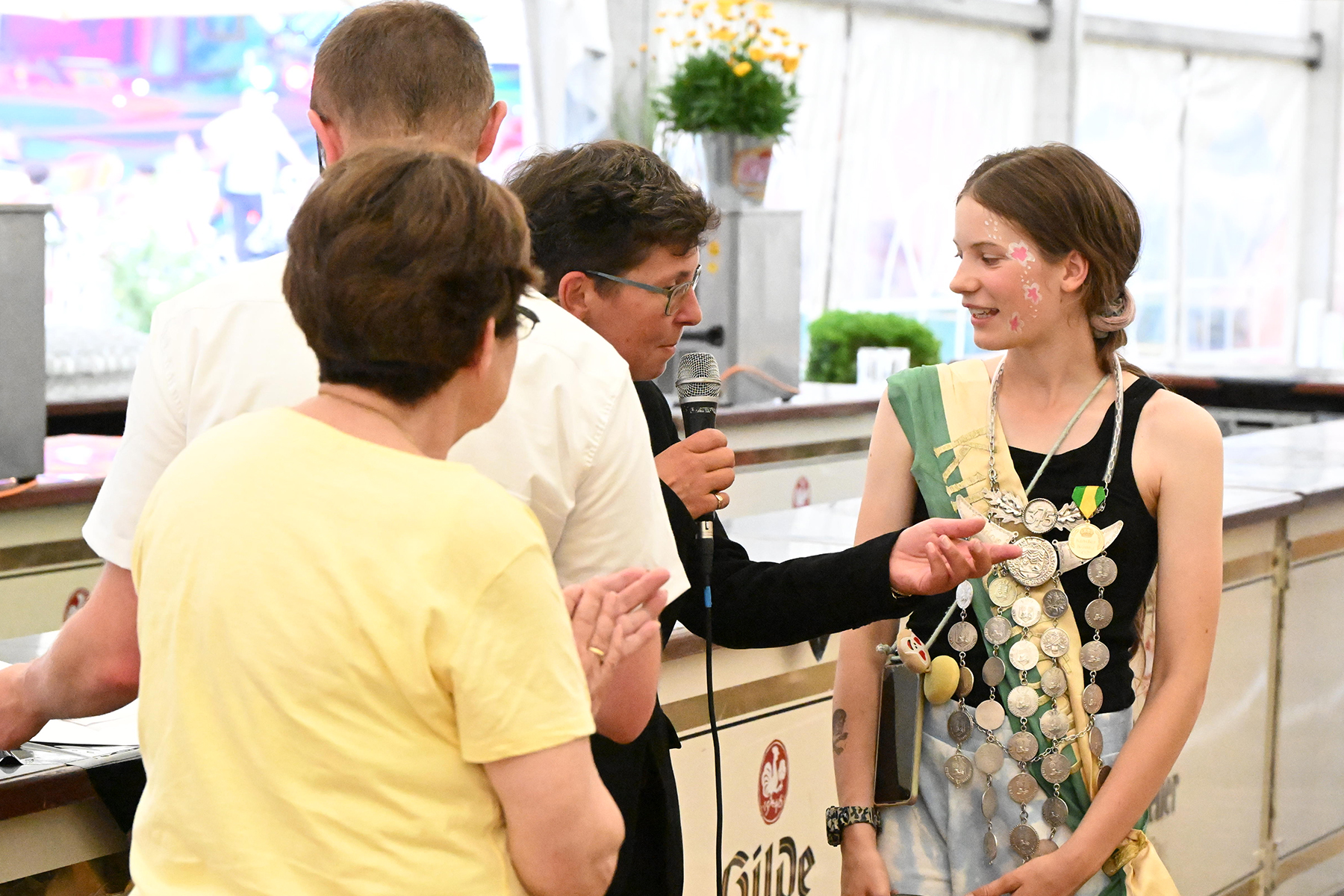 Mit Spannung wurde dann die erste Proklamation des diesjährigen Schützenfestes erwartet: Zur Kinderkönigin wurde die elfjährige Edyta Königsberg ausgerufen. Sie erhielt durch Cathrin und Elfi Eichner sowie Georg Rieger neben der Schärpe, der Königskette und Königsorden auch einen Gutschein für ein Fahrrad, der von Fahrrad Schiwy und Westphal Bedachungen gespendet wurde.