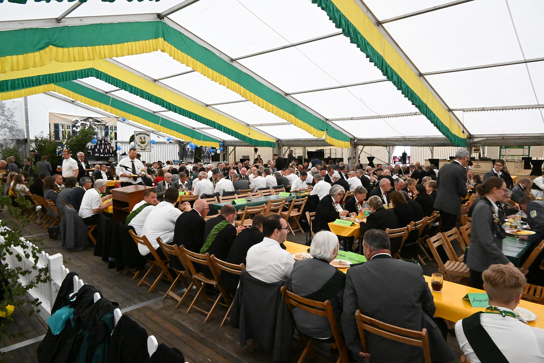 Anschließend ging es für die Schützen vom Festzelt zum Schützenhaus, wo derzeit der Königswettbewerb stattfindet.