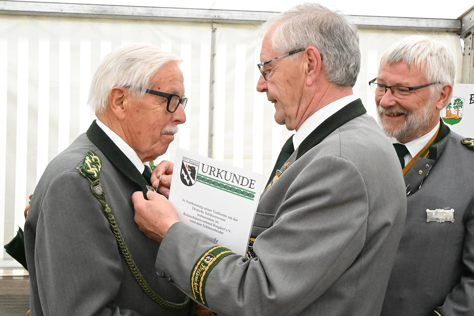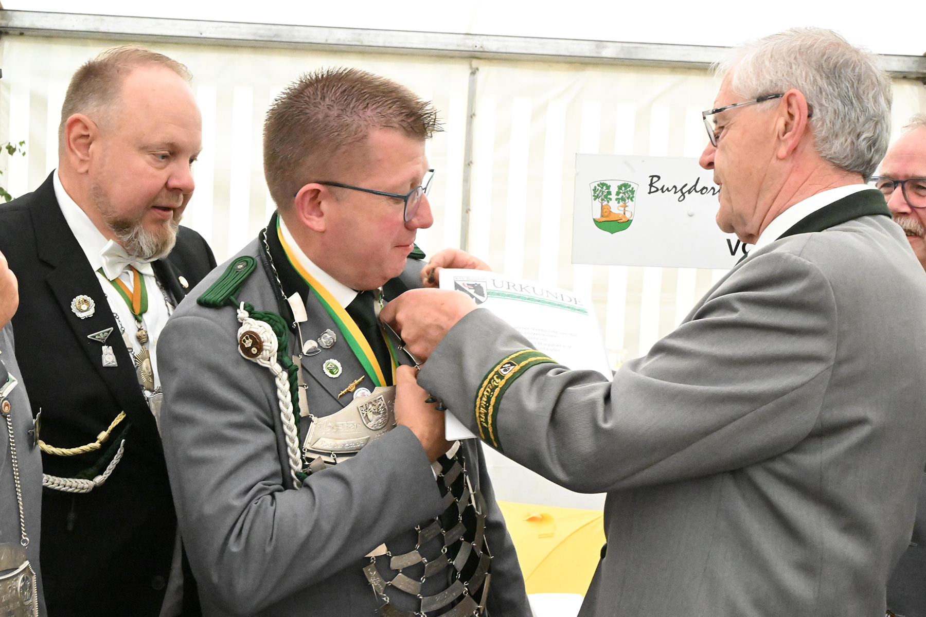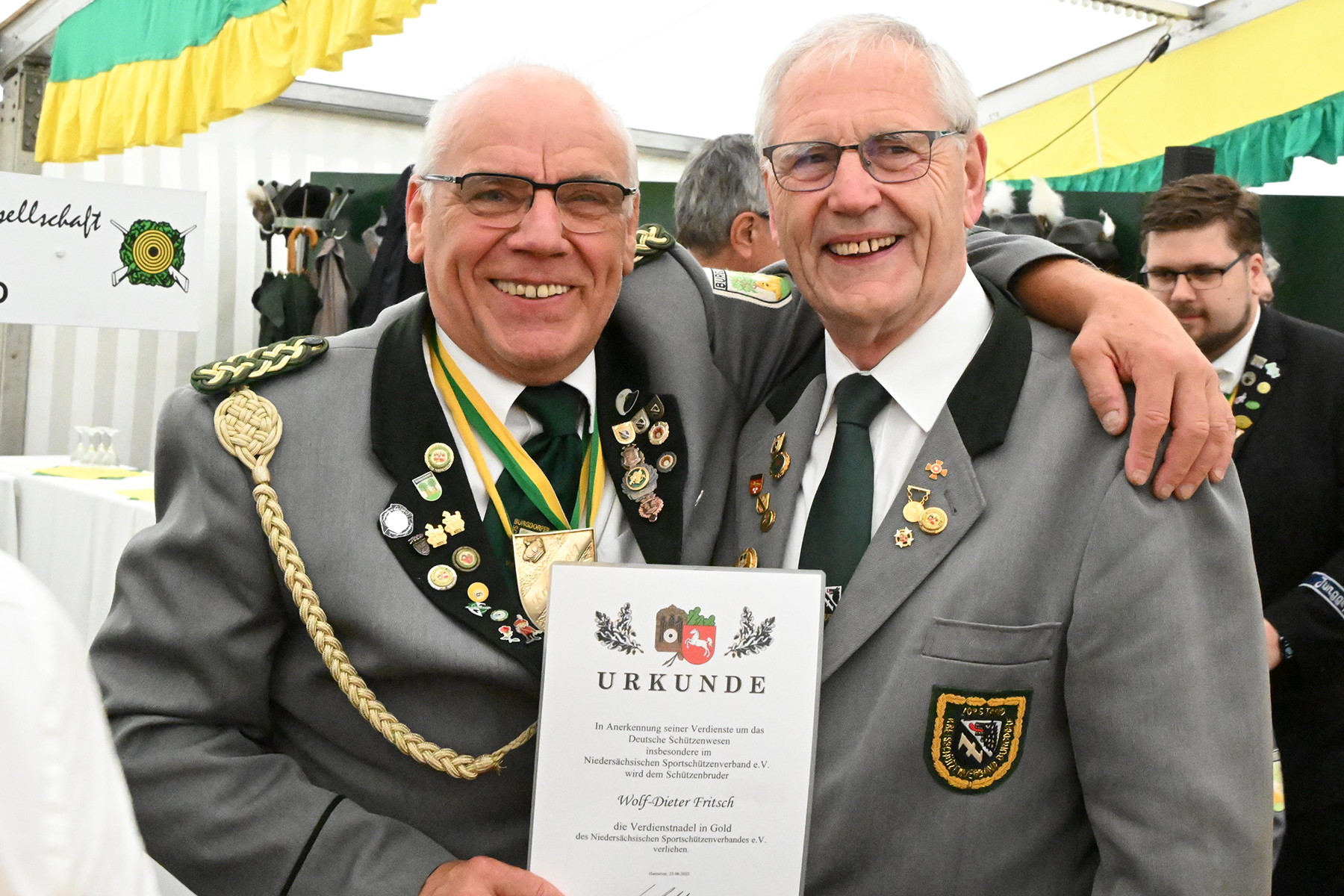 Werner Bösche, Präsident des Kreisschützenverbandes (KSV), ehrte zahlreiche verdiente Mitglieder der Schützengesellschaft. Die höchste Ehrung erhielt Wolf-Dieter Fritsch, der für sein Engagement in der Schützengesellschaft mit der Ehrennadel in Gold des Niedersächsischen Sportschützenverbandes (NSSV) ausgezeichnet wurde. Die Verdienstnadel in Silber des NSSV wurde Matthias Meyer verliehen. Die Verdienstnadel in Bronze des NSSV wurde an Heike Helbing verliehen.