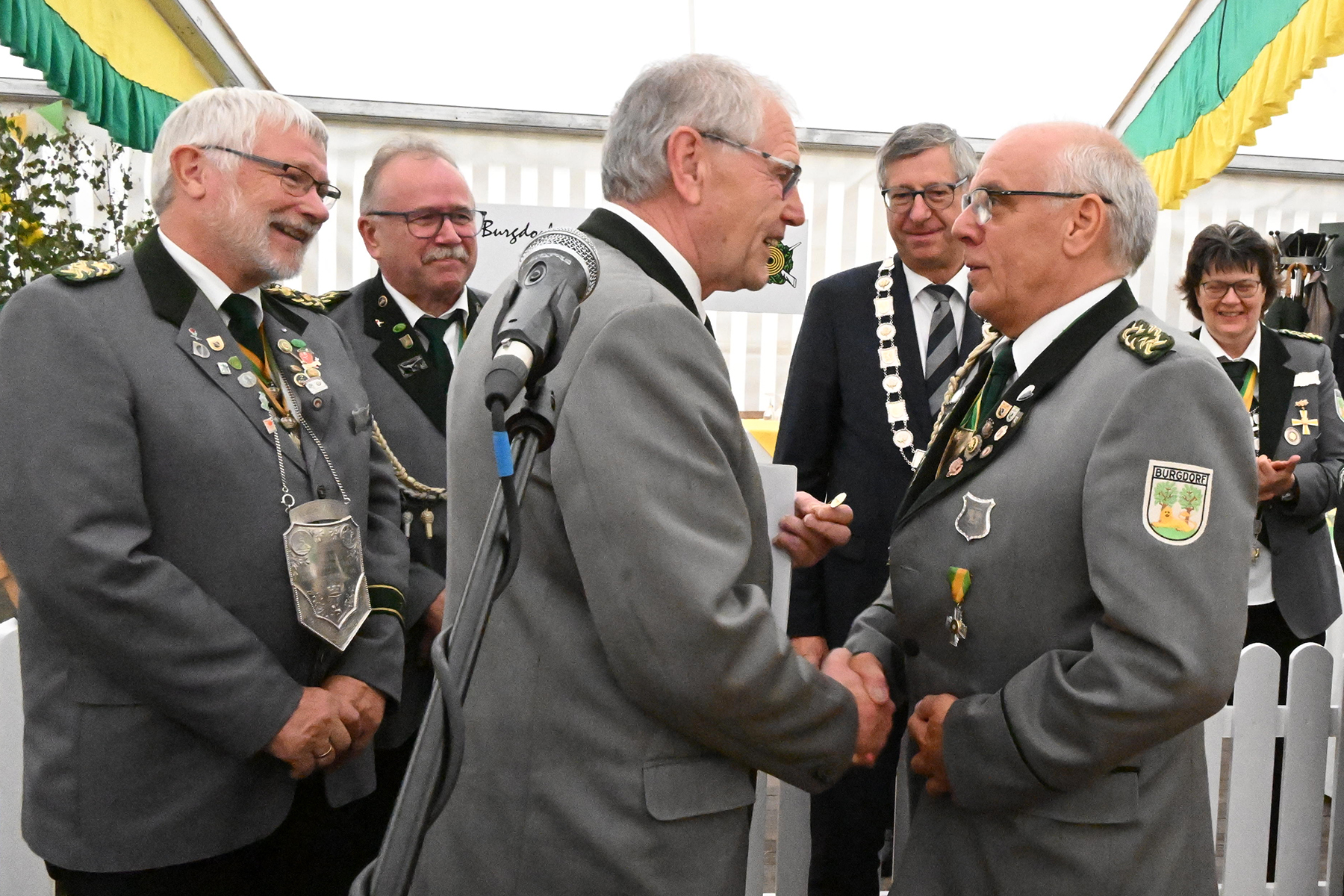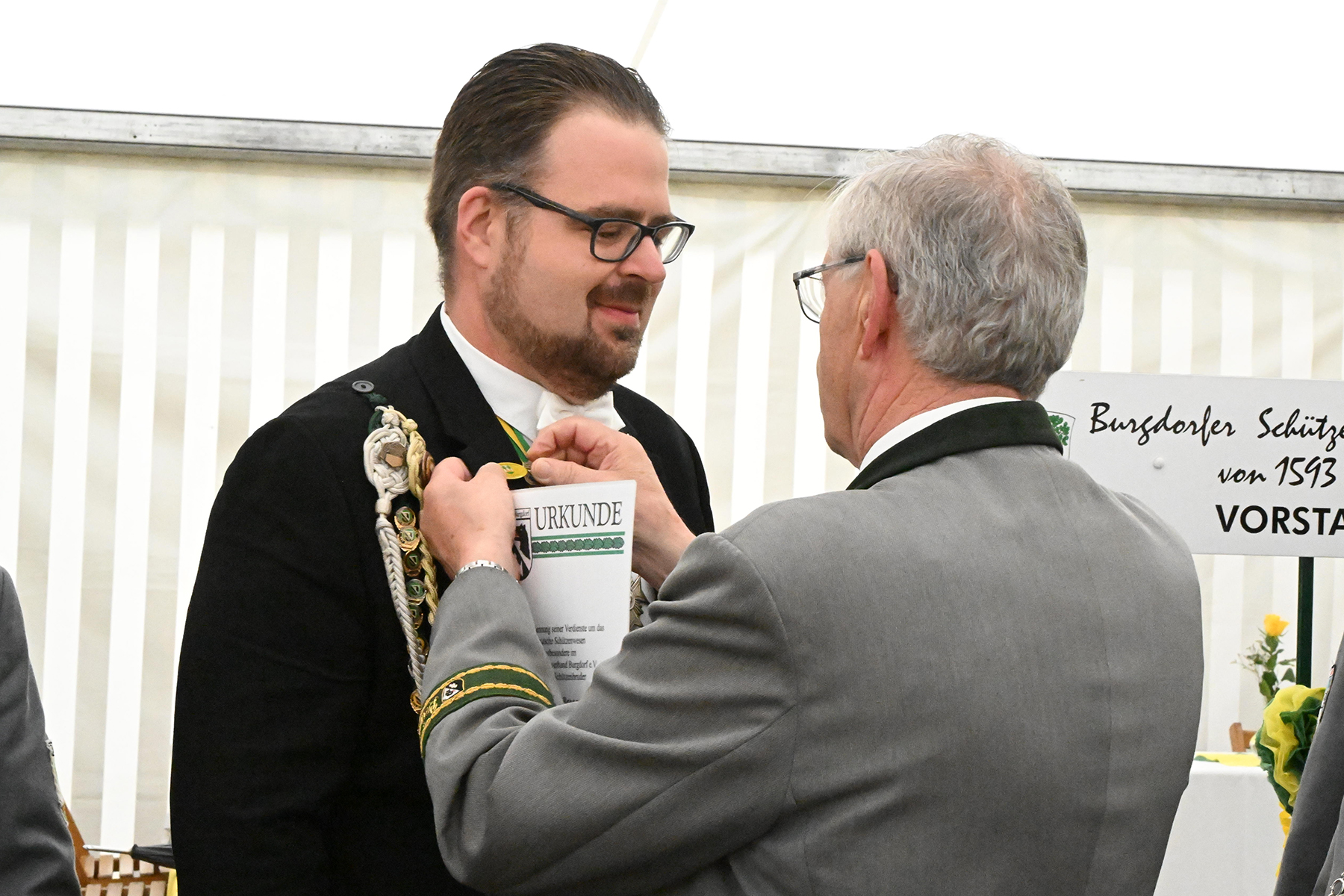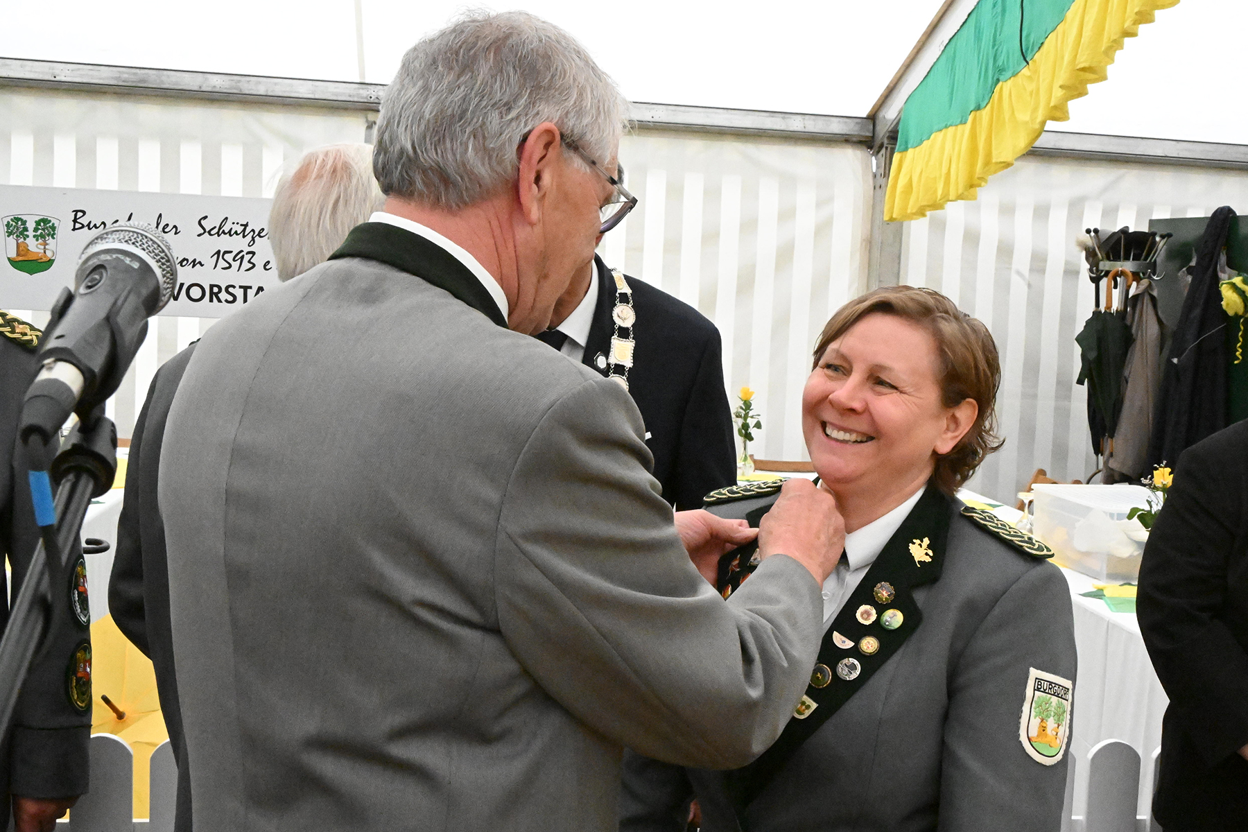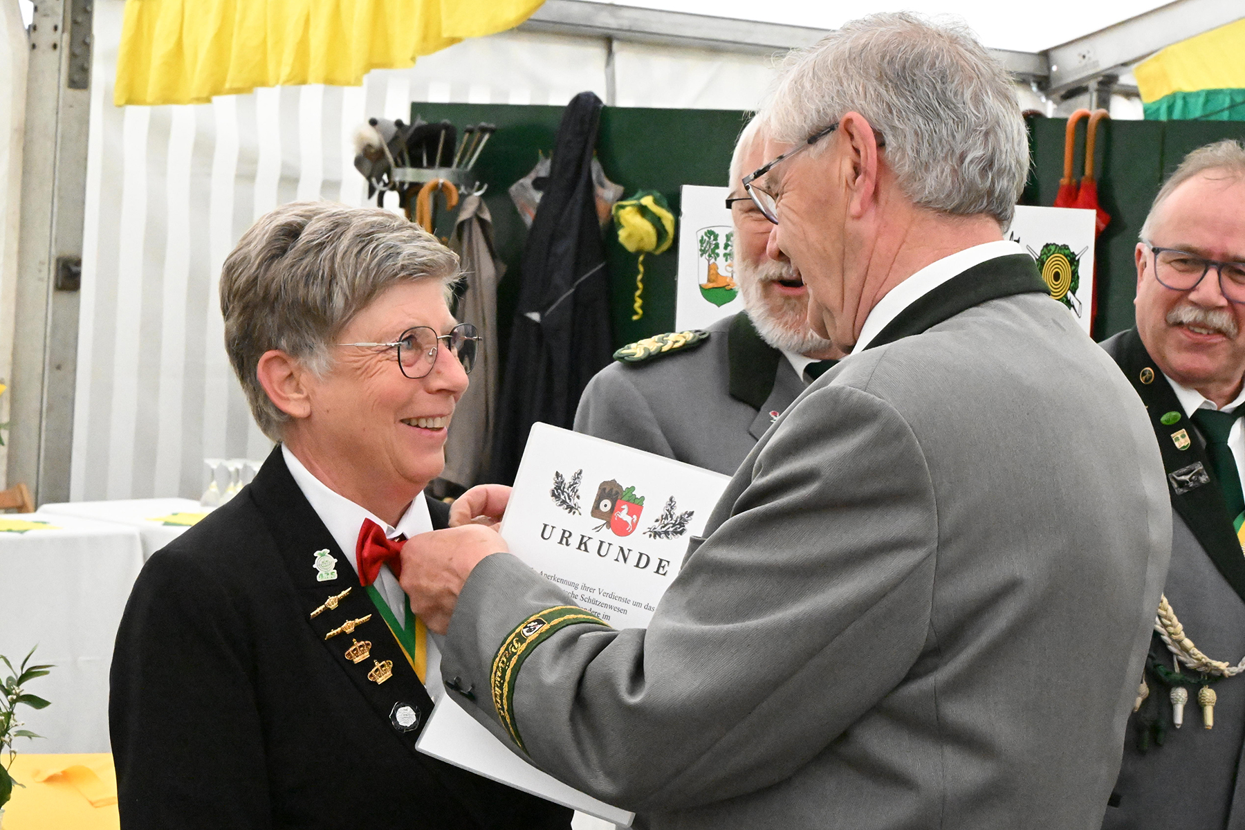 Werner Bösche, Präsident des Kreisschützenverbandes (KSV), ehrte zahlreiche verdiente Mitglieder der Schützengesellschaft. Die höchste Ehrung erhielt Wolf-Dieter Fritsch, der für sein Engagement in der Schützengesellschaft mit der Ehrennadel in Gold des Niedersächsischen Sportschützenverbandes (NSSV) ausgezeichnet wurde. Die Verdienstnadel in Silber des NSSV wurde Matthias Meyer verliehen. Die Verdienstnadel in Bronze des NSSV wurde an Heike Helbing verliehen.