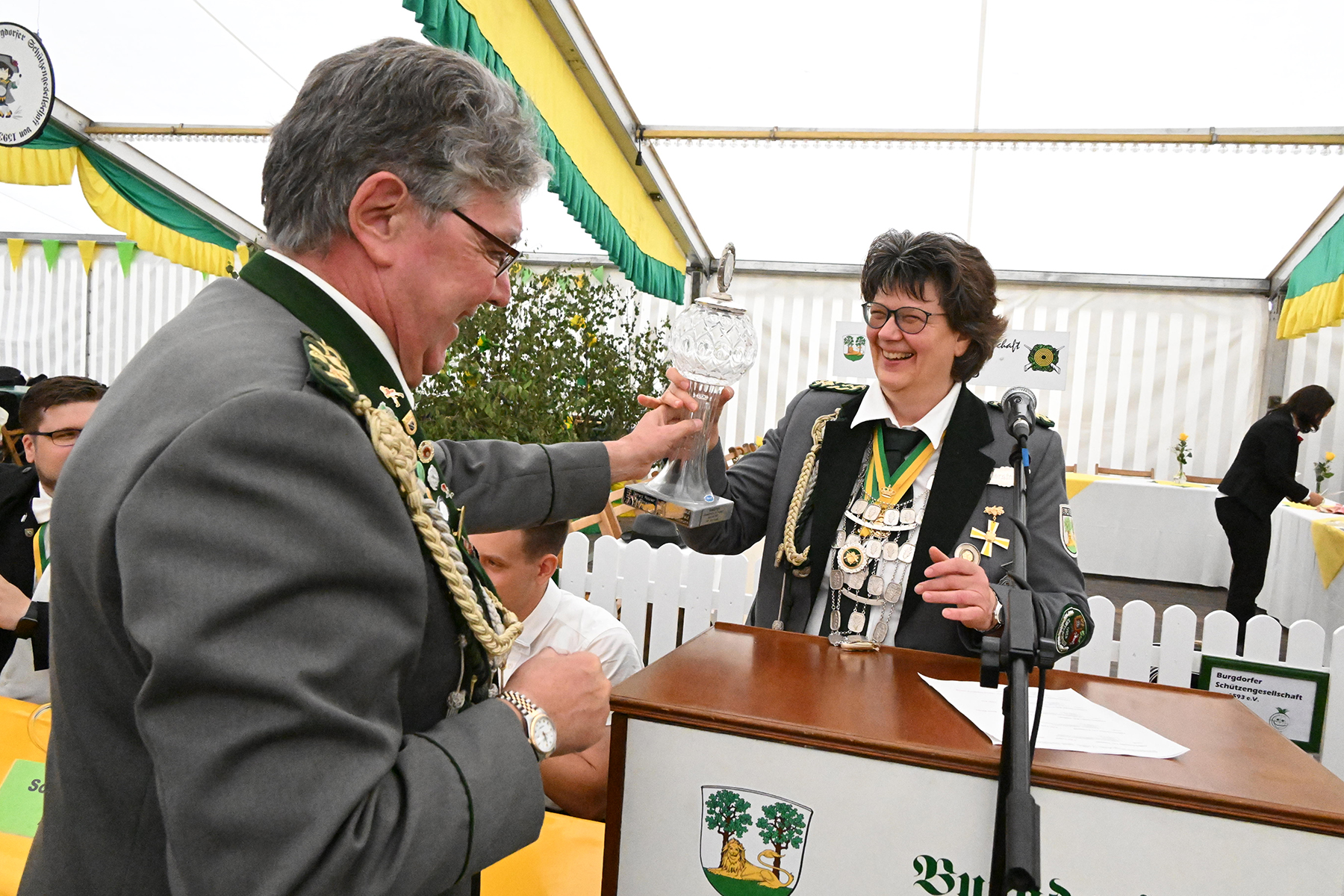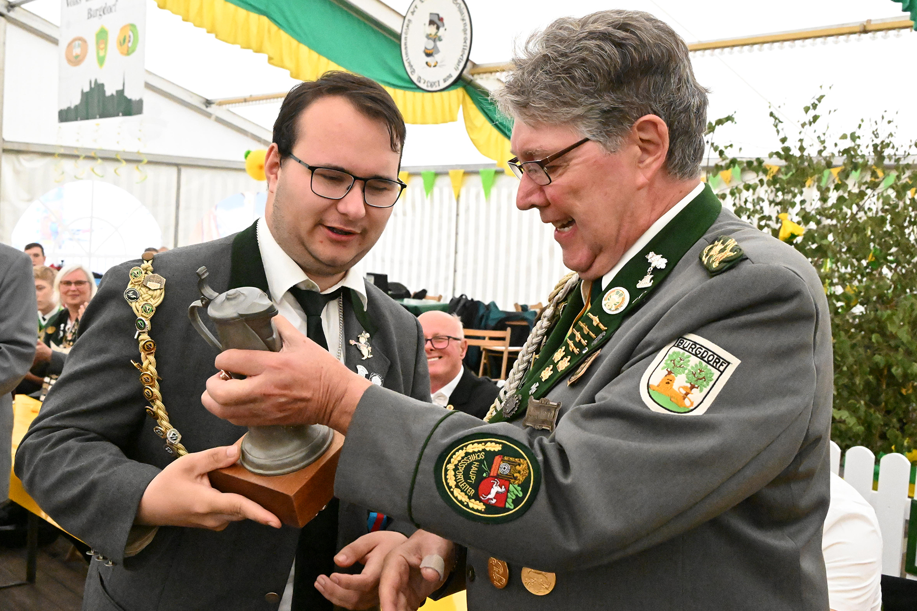 Den Titel "Bester Pistolenschütze der Stadt Burgdorf 2023" gewann Steffen-André Bregas. Die Bürgermeisterkette errang Frauke Jahn.