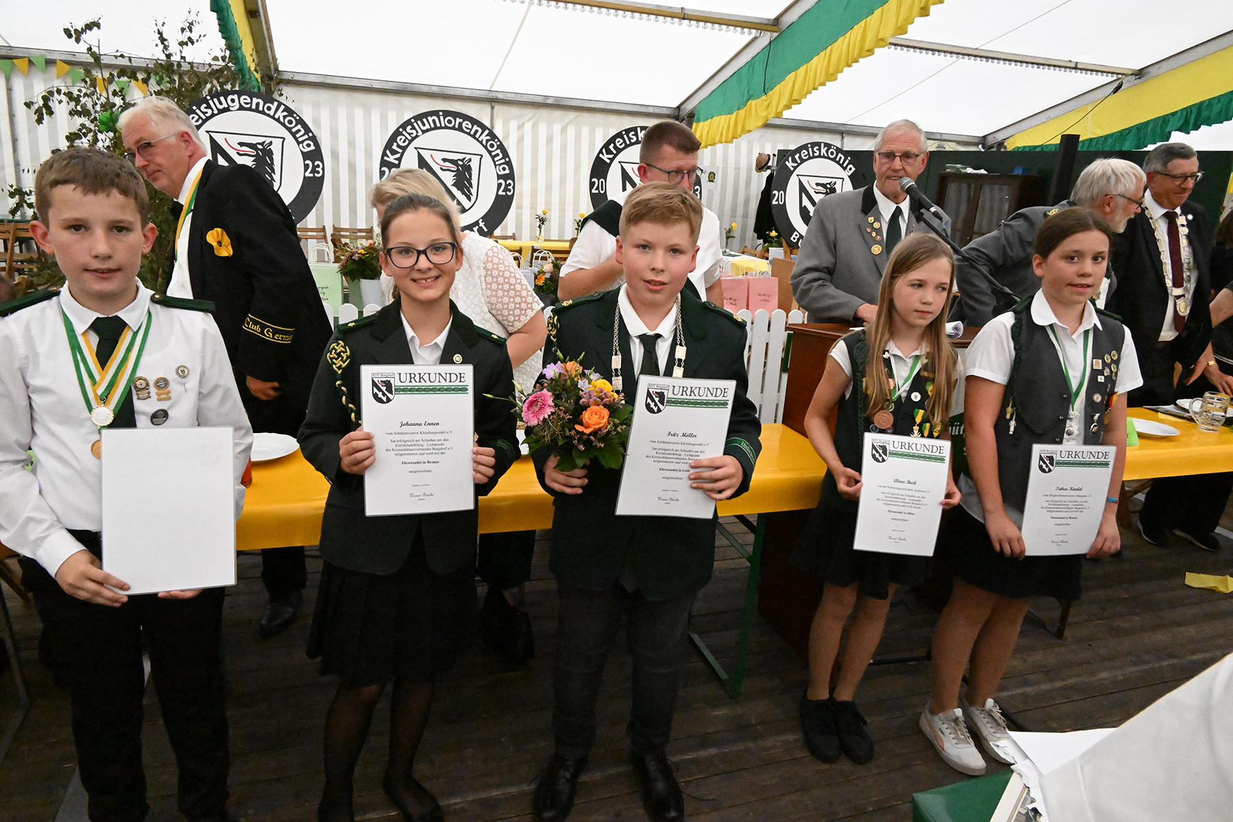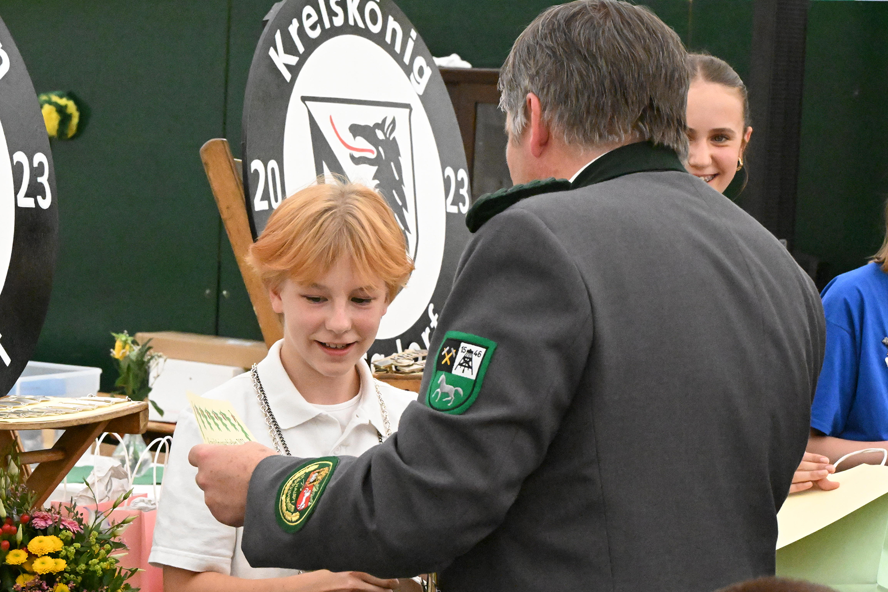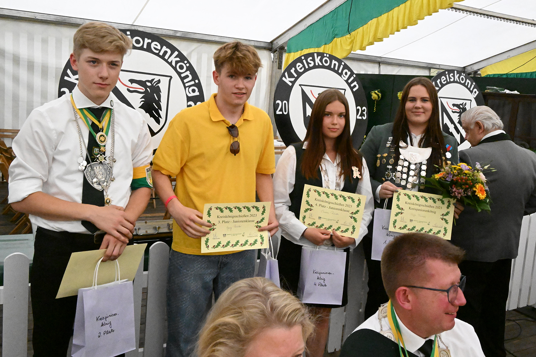Der Titel des Kreisjuniorenkönigs ging ins Burgdorfer Stadtgebiet. Es gewann Kaja Thiesen vom SV Hülptingsen mit einem 101,21 Teiler vor Finn-Luca Bähre (Burgdorfer Schützengesellschaft, 130,33) und Georg Ressler (SSV Schillerslage, 150,25).