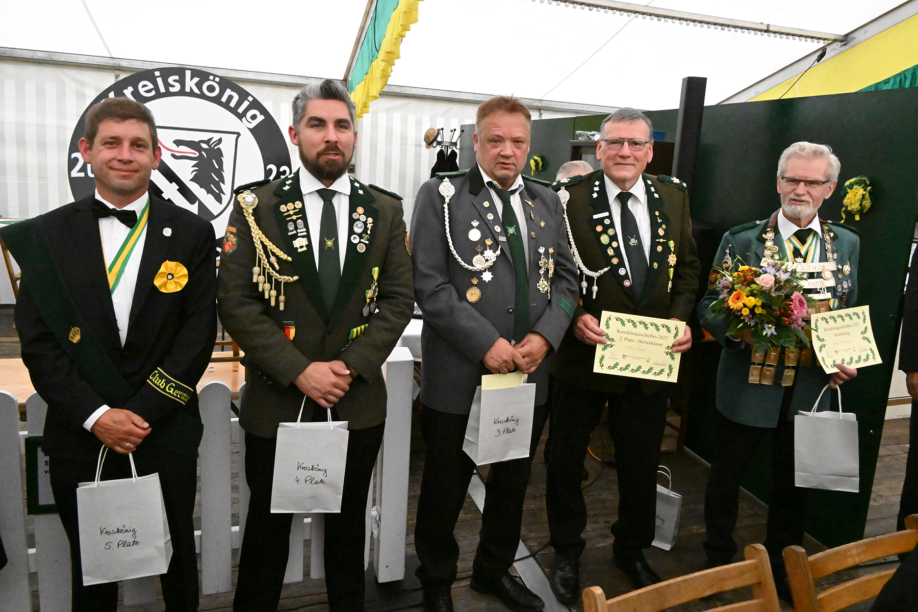 Auch der Titel des Kreiskönigs bleibt im Lehrter Stadtgebiet: Armin Chomanec von der Bürgerschützen-Gesellschaft Lehrte gewann mit einem 178,00 Gesamtteiler vor Volker Reinert (SG Anderten, 289,60) und Frank Extra (SV Isernhagen F.B., 325,00).