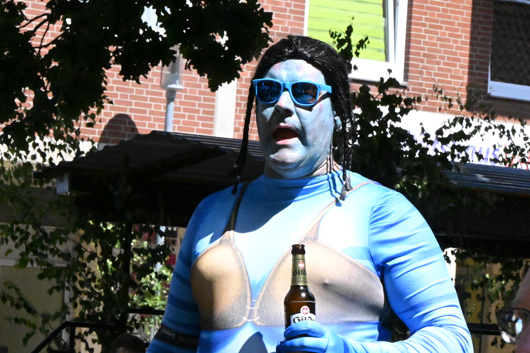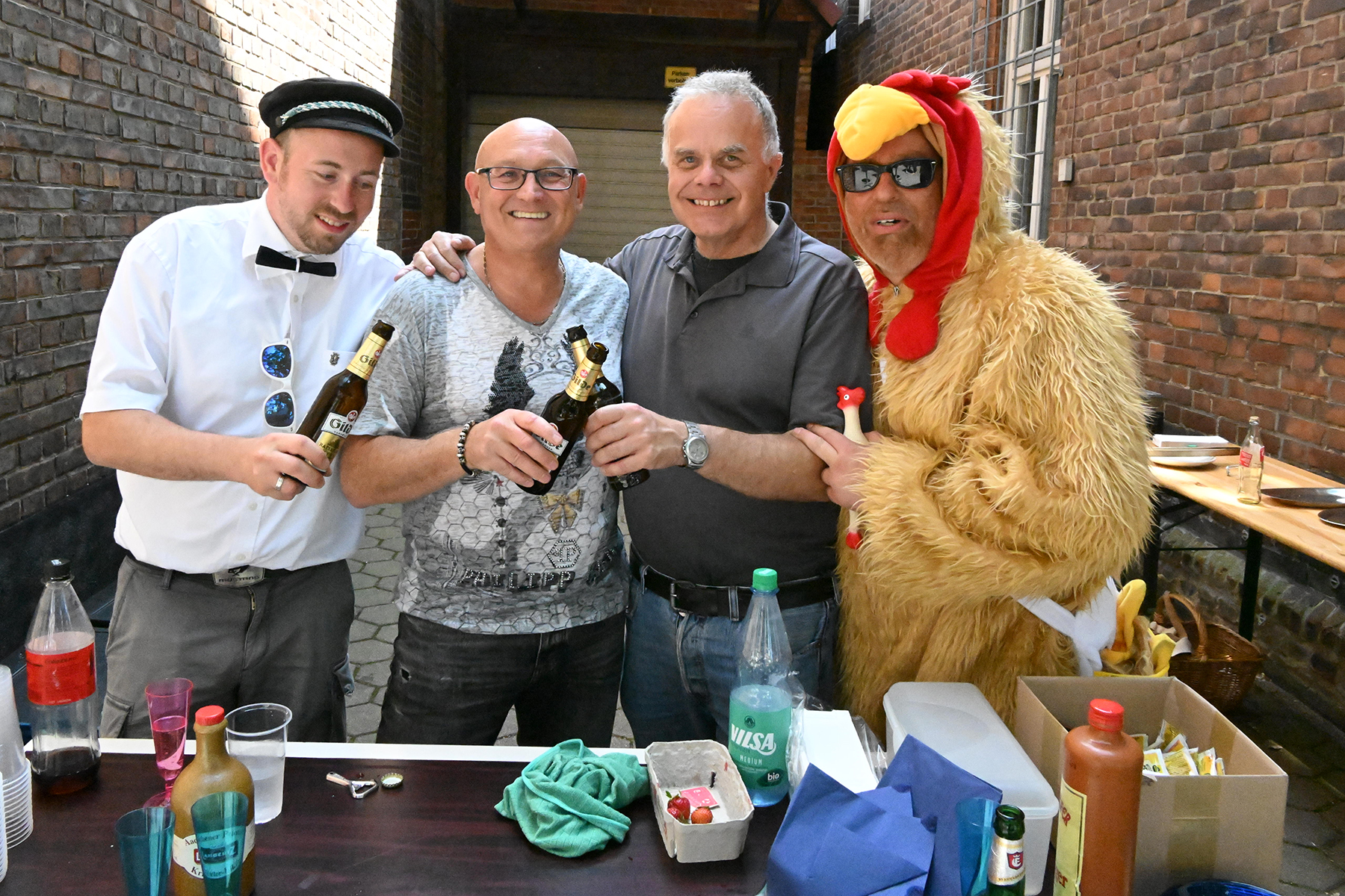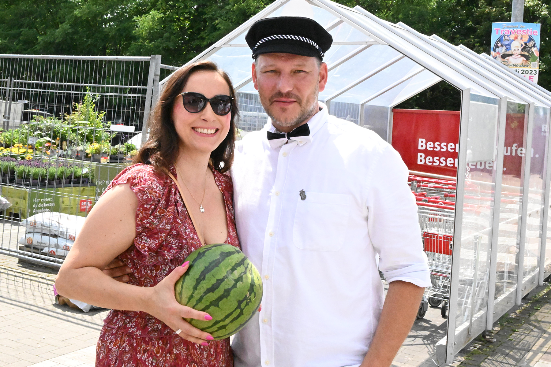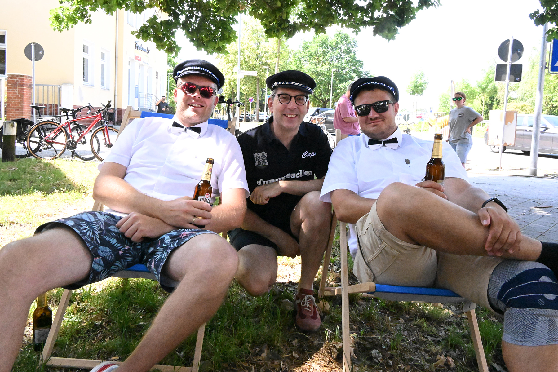 Schließlich zog der Tross zum Schützenhaus, mit einem Zwischenstopp im REWE-Markt, wo Marktleiter Daniel Fricke den Junggesellen ebenso eine Gabe überreichte. Zuvor ging es mit Musik einmal durch den gesamten Markt.