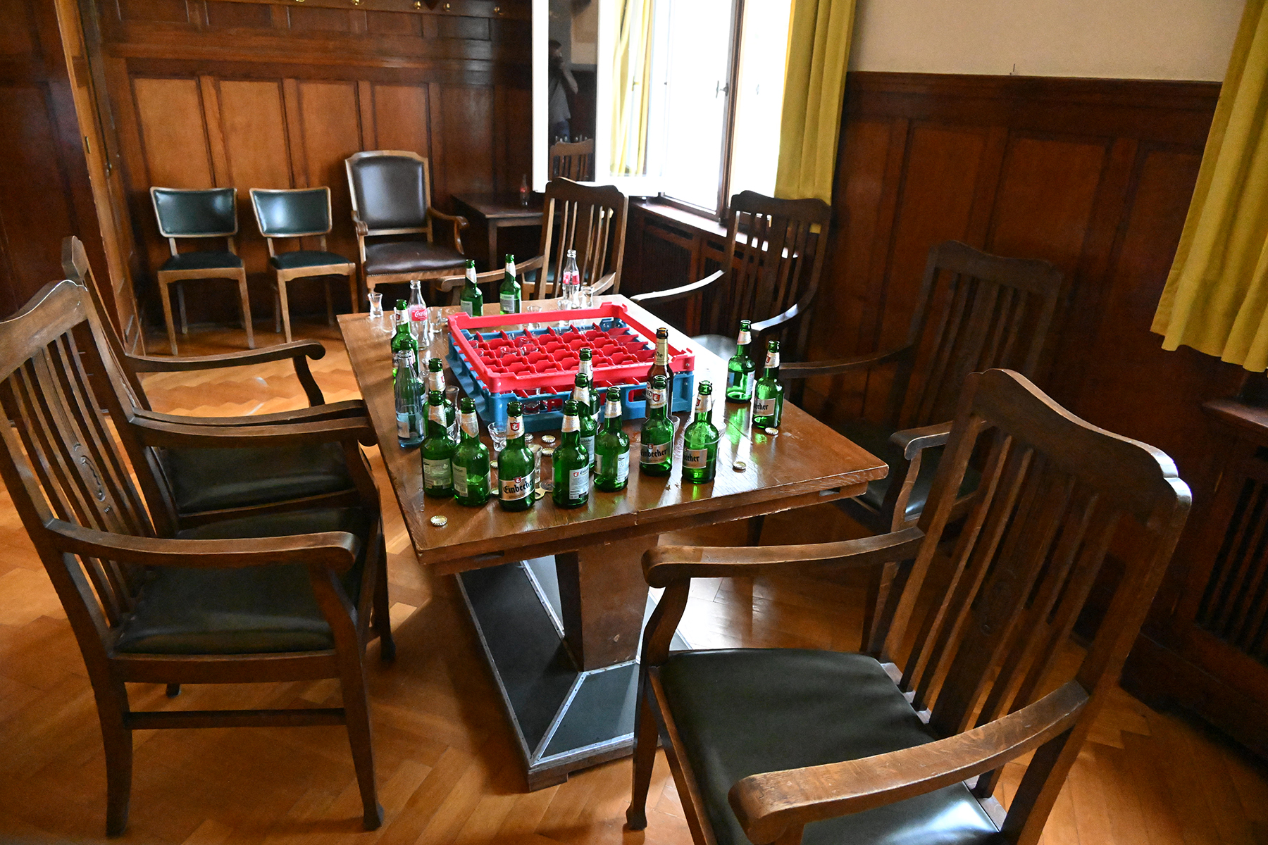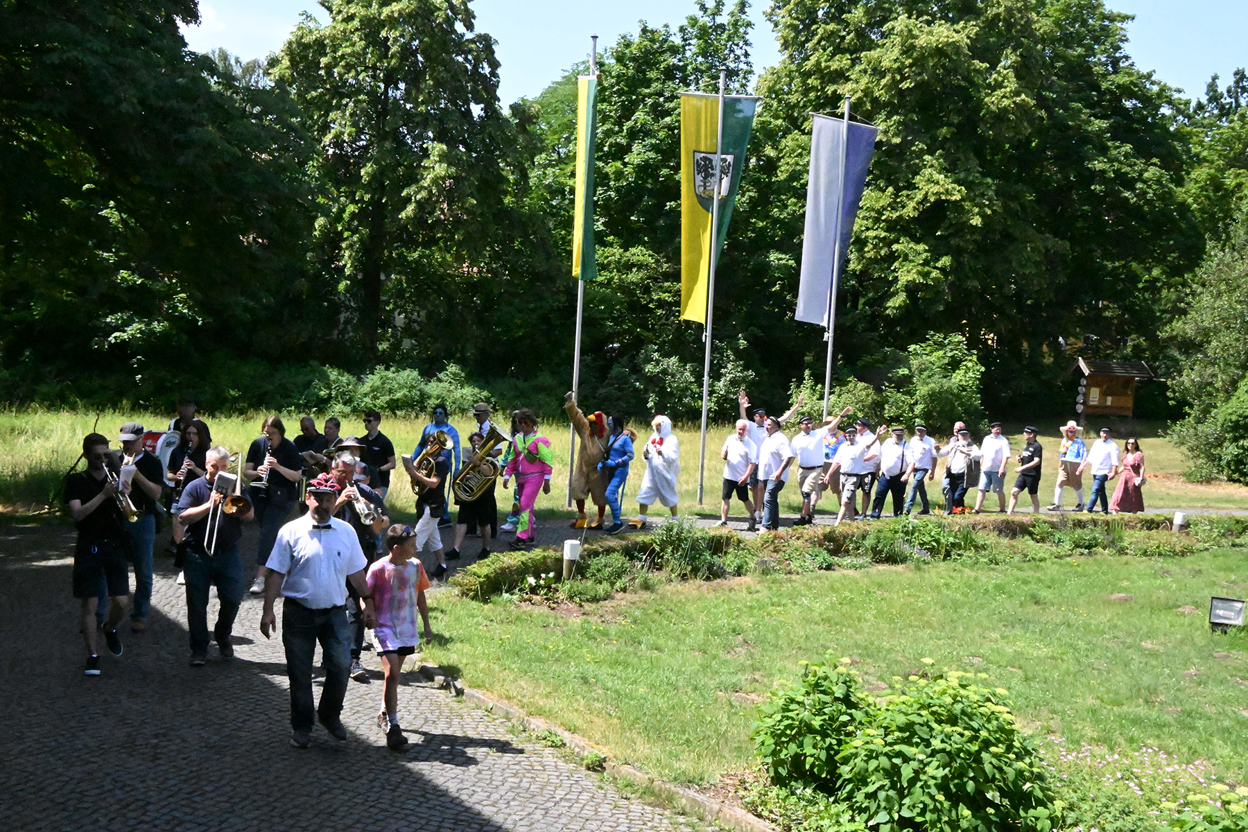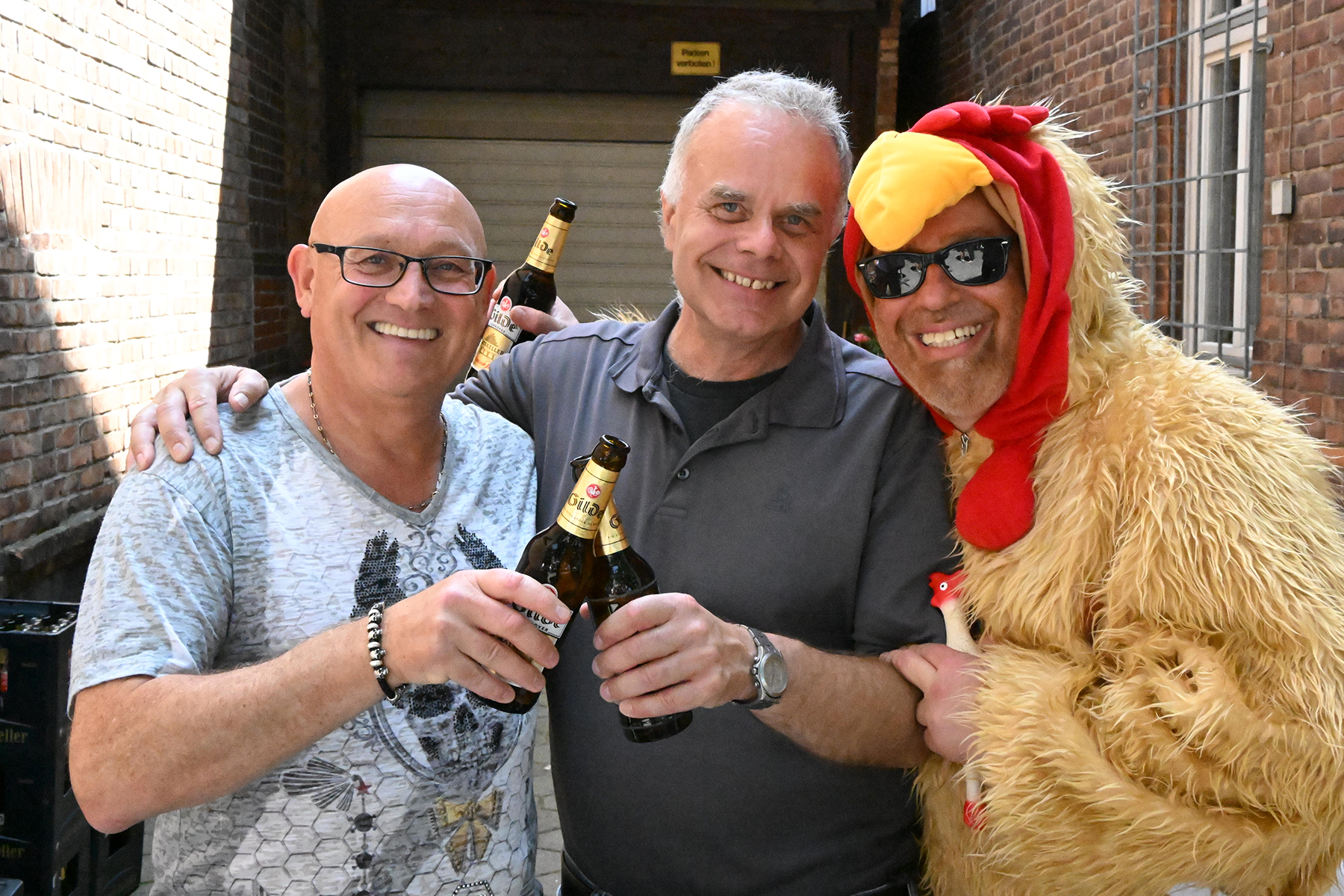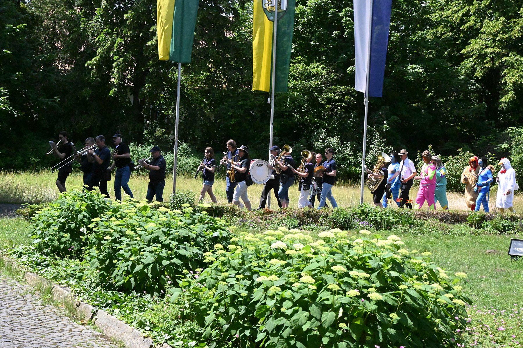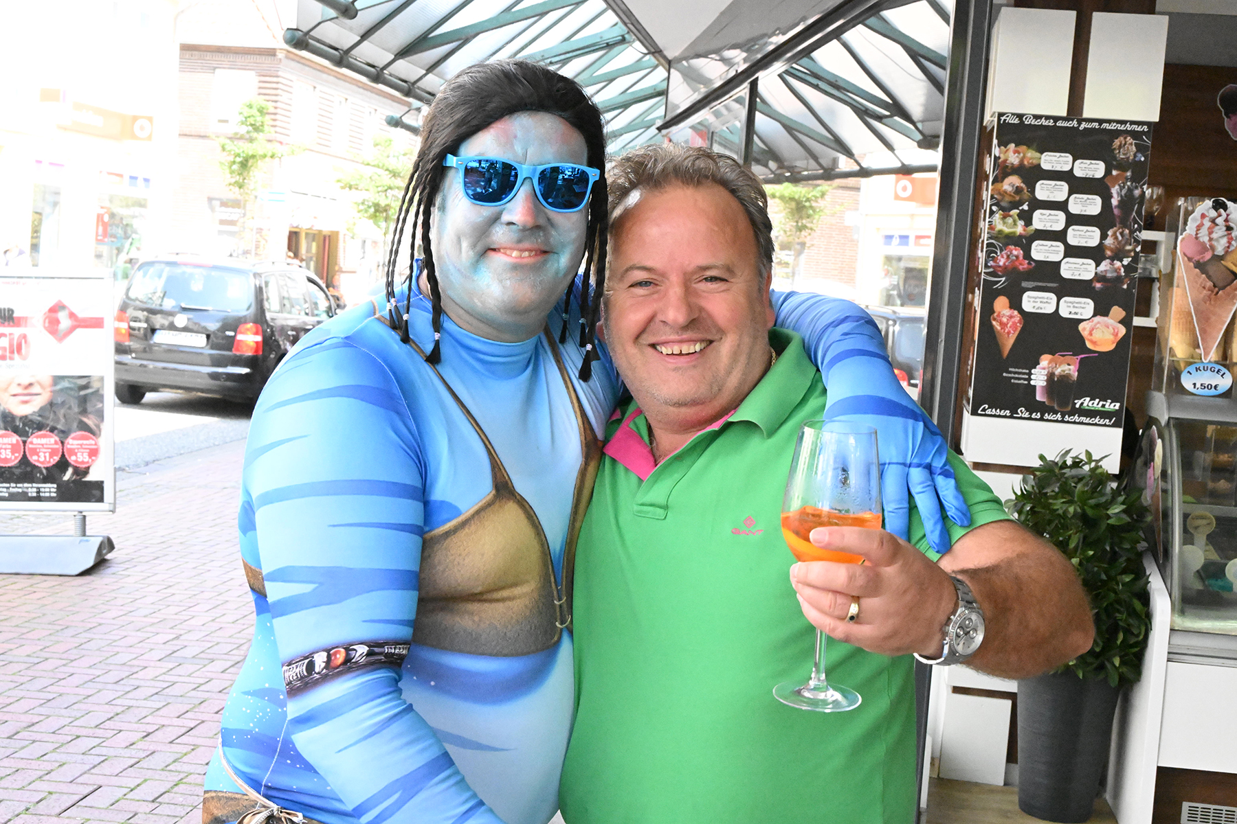 Schließlich zog der Tross zum Schützenhaus, mit einem Zwischenstopp im REWE-Markt, wo Marktleiter Daniel Fricke den Junggesellen ebenso eine Gabe überreichte. Zuvor ging es mit Musik einmal durch den gesamten Markt.