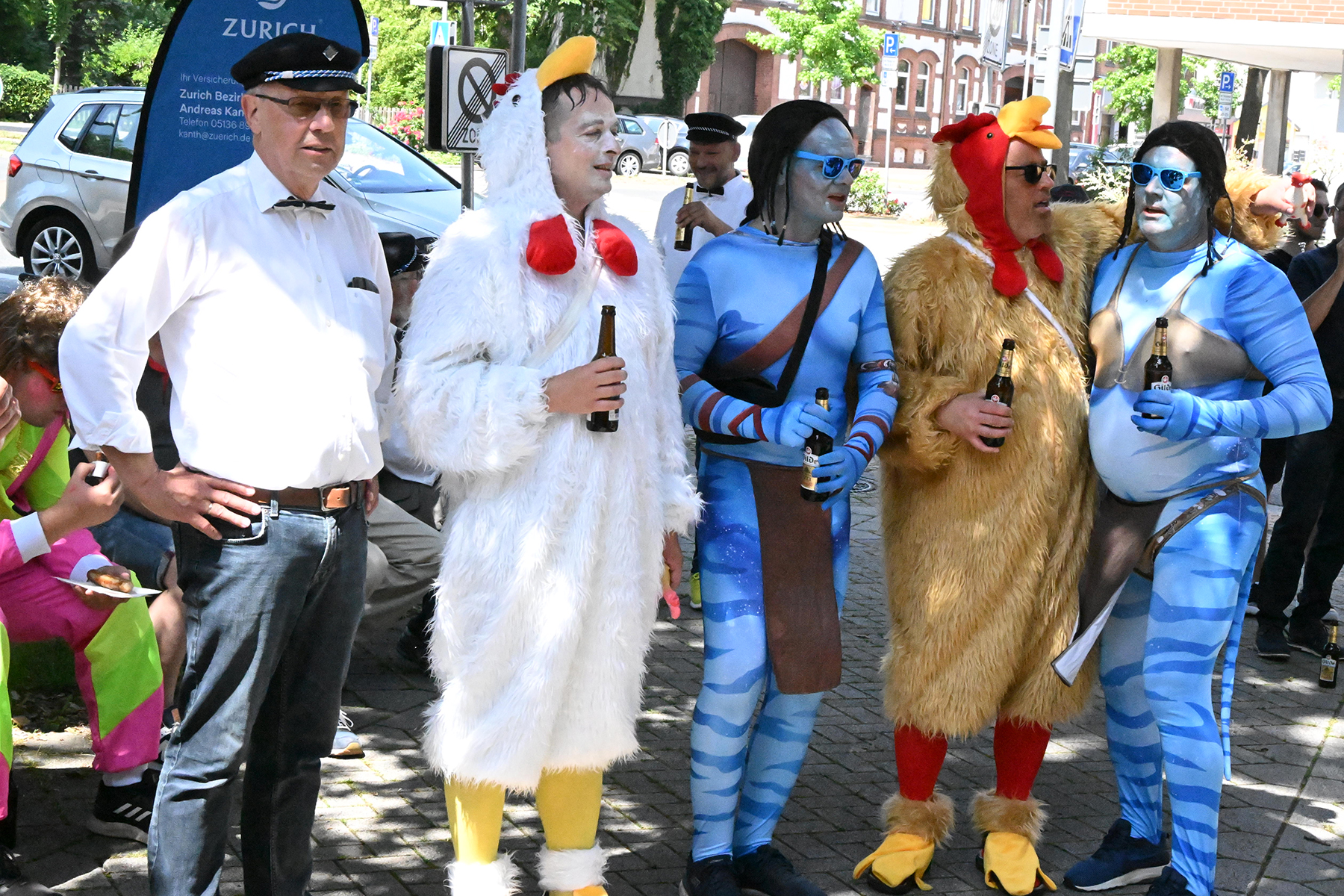 Beim Haar-Team Wadewitz in der Braunschweiger Straße wurden die Protagonisten erneut geschminkt und für das Sammeln vorbereitet. Dann ging es zunächst in die Südstadt und anschließend durch das E-Center in der Uetzer Straße zurück in die Burgdorfer Innenstadt. Nach einer Stärkung bei Familie Volkmann in der Wallgartenstraße in Form eines Frühstücks ging es weiter mit Stopps bei Schuh-Polch in der hannoverschen Neustadt sowie Petrick Moden und der Zurich Versicherungsagentur Andreas Kanth in der Marktstraße.