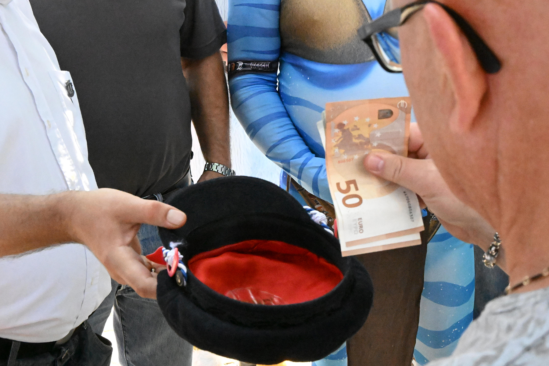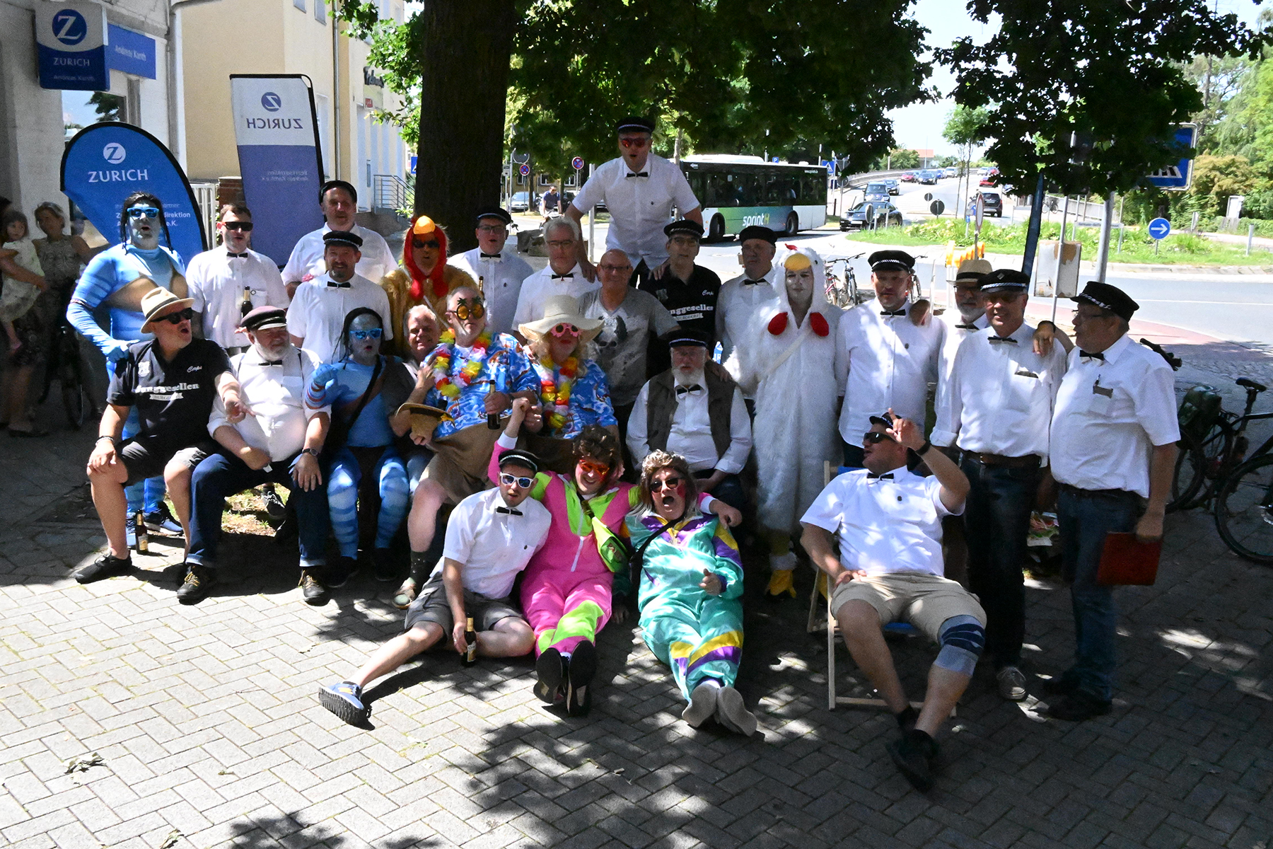 Junggesellen leben die Tradition und gehen in der Burgdorfer Innenstadt sammeln
