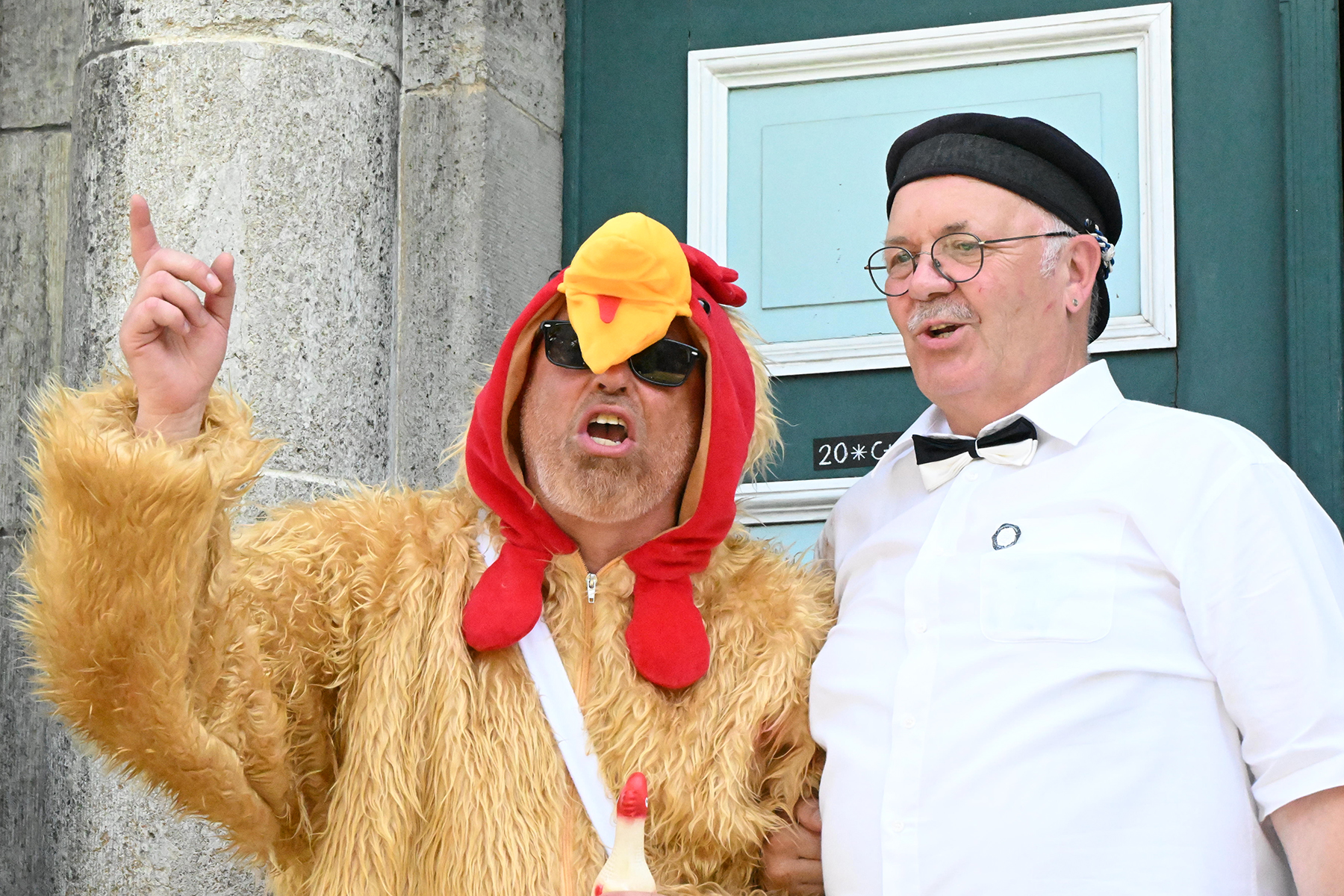 "Heute wie in jedem Jahr sind die Junggesellen da, um nach alter Tradition, Essen und Trinken abzuholen", heißt der traditionelle Spruch, den die Junggesellen aufsagen. Hierzu waren sie auch in diesem Jahr wieder bunt kostümiert.
