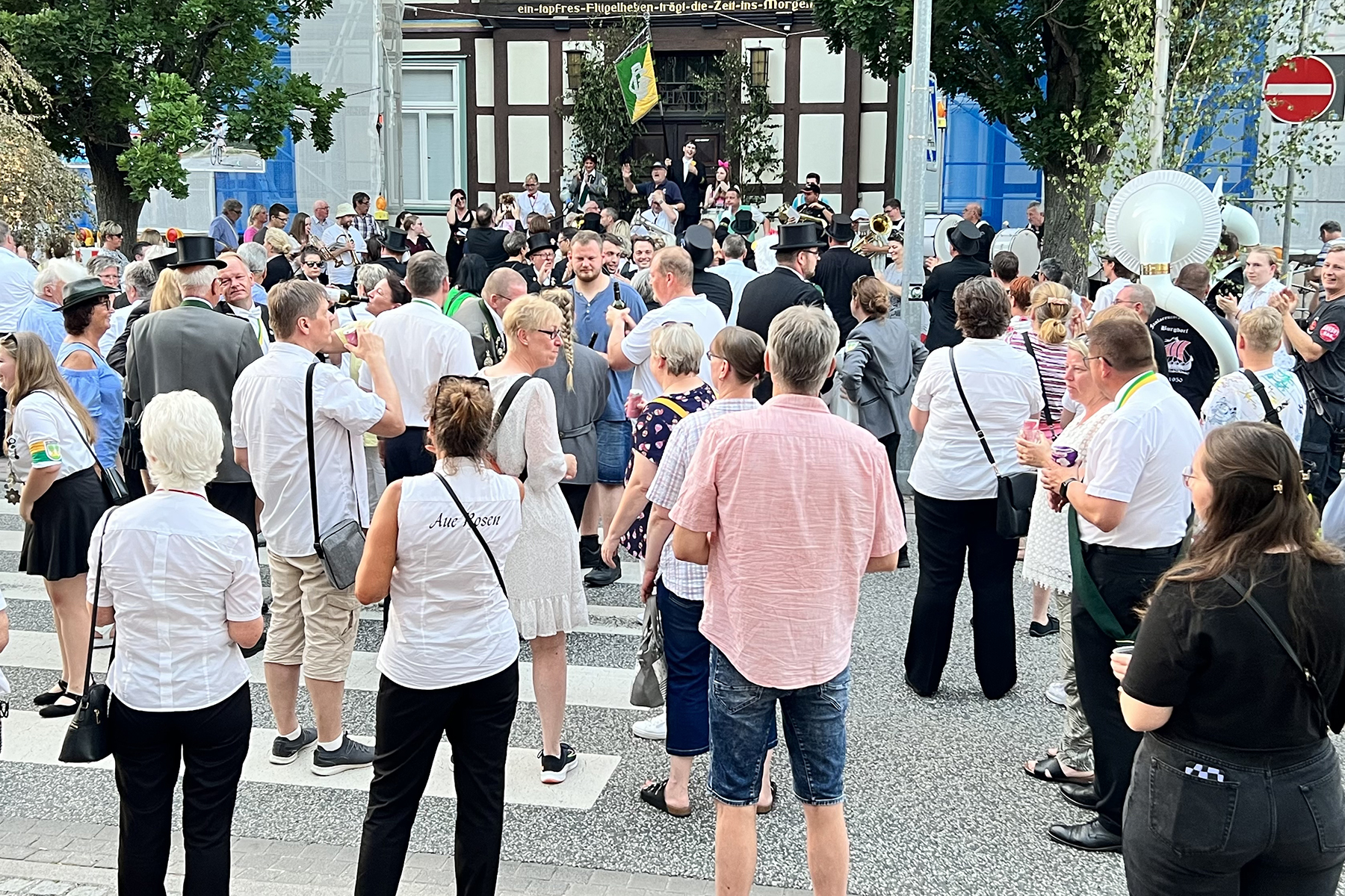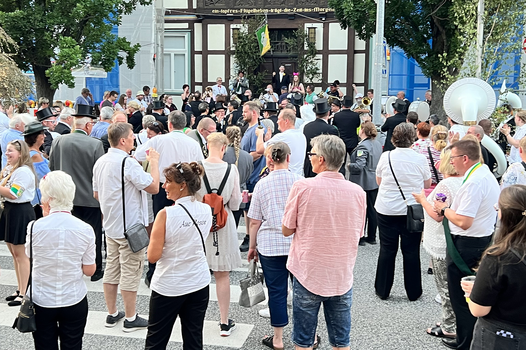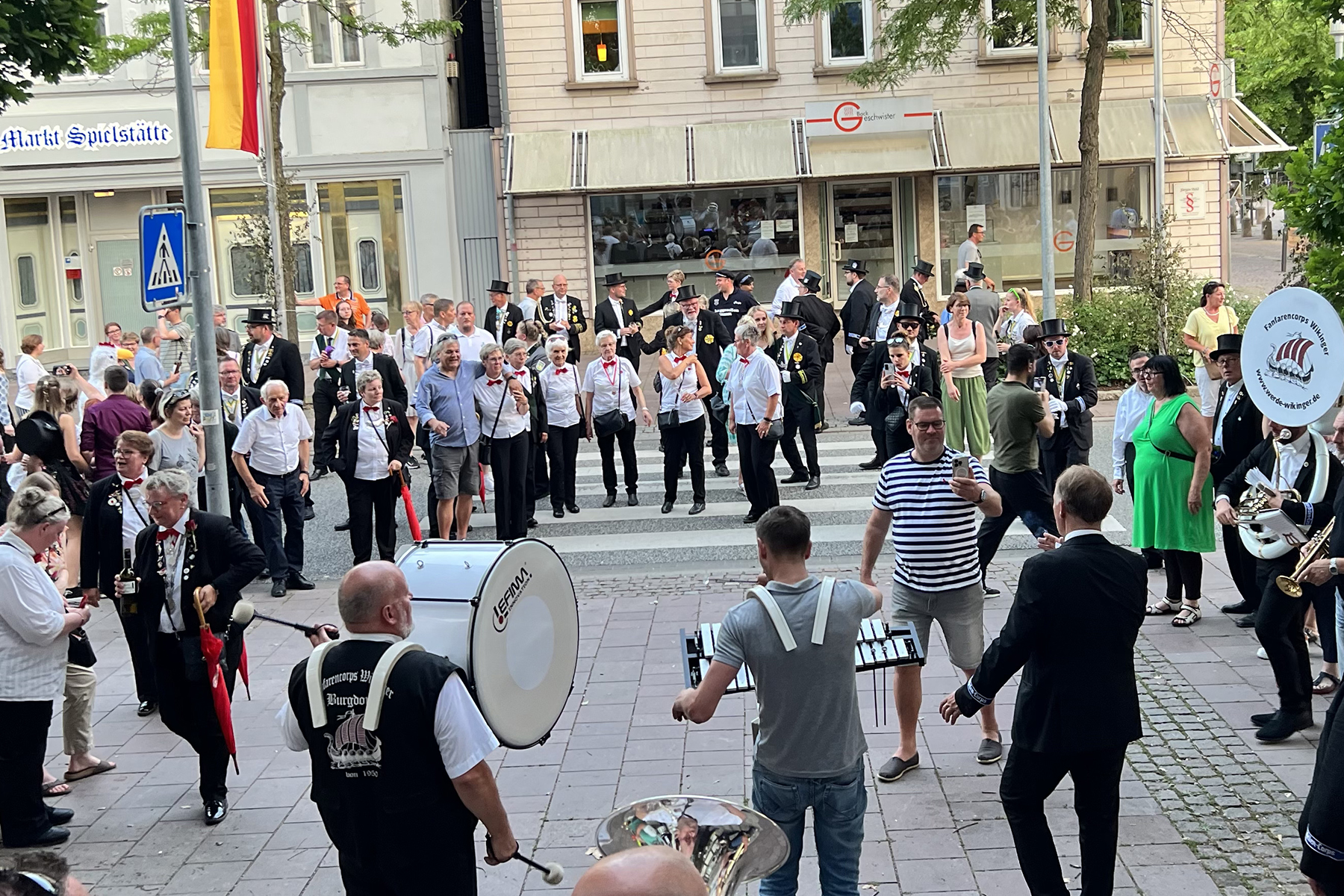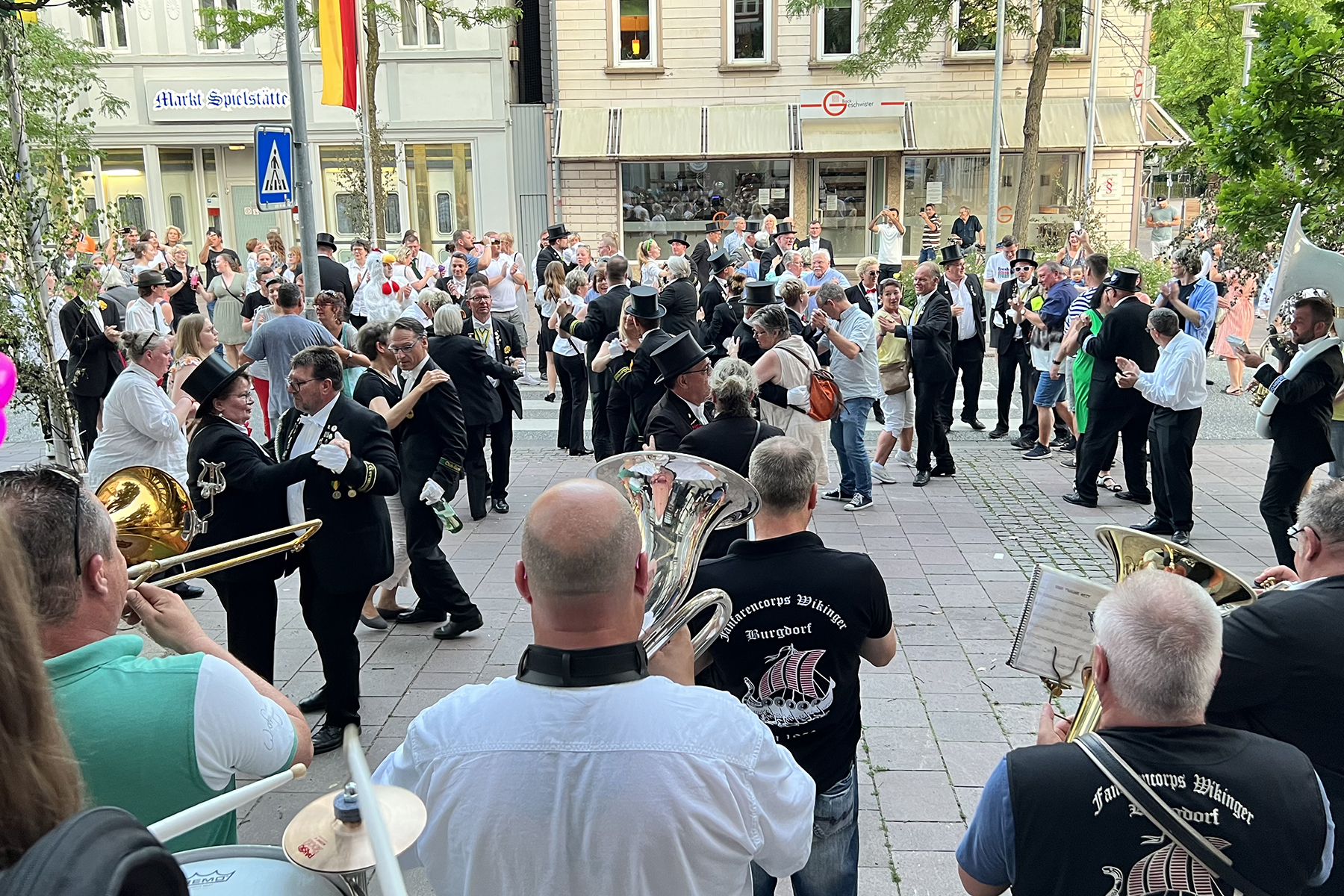 Um 21 Uhr wurde dann das Festzelt geräumt. Das Fanfarencorps "Wikinger" Burgdorf hatte hierzu eine besondere Ankündigung zu machen: Michael Busch, bekannt durch das Glockenspiel der Wikinger, spielte zum letzten Mal in der ersten Reihe für das Fanfarencorps auf. Er wird ab sofort die 1. Trompete übernehmen. An seine Stelle wird Marvin Krüger treten, der diese Funktion schon öfter übernommen hat. Beim Wachwechsel, moderiert durch Wikinger-"Kapitän" Alexander Solisch vor rund 150 Gästen, musste selbst Michael Busch eine Träne verdrücken, ehe es zum Rathaus I ging, wo die letzten Klänge zum Schützenfest 2023 ertönten.
