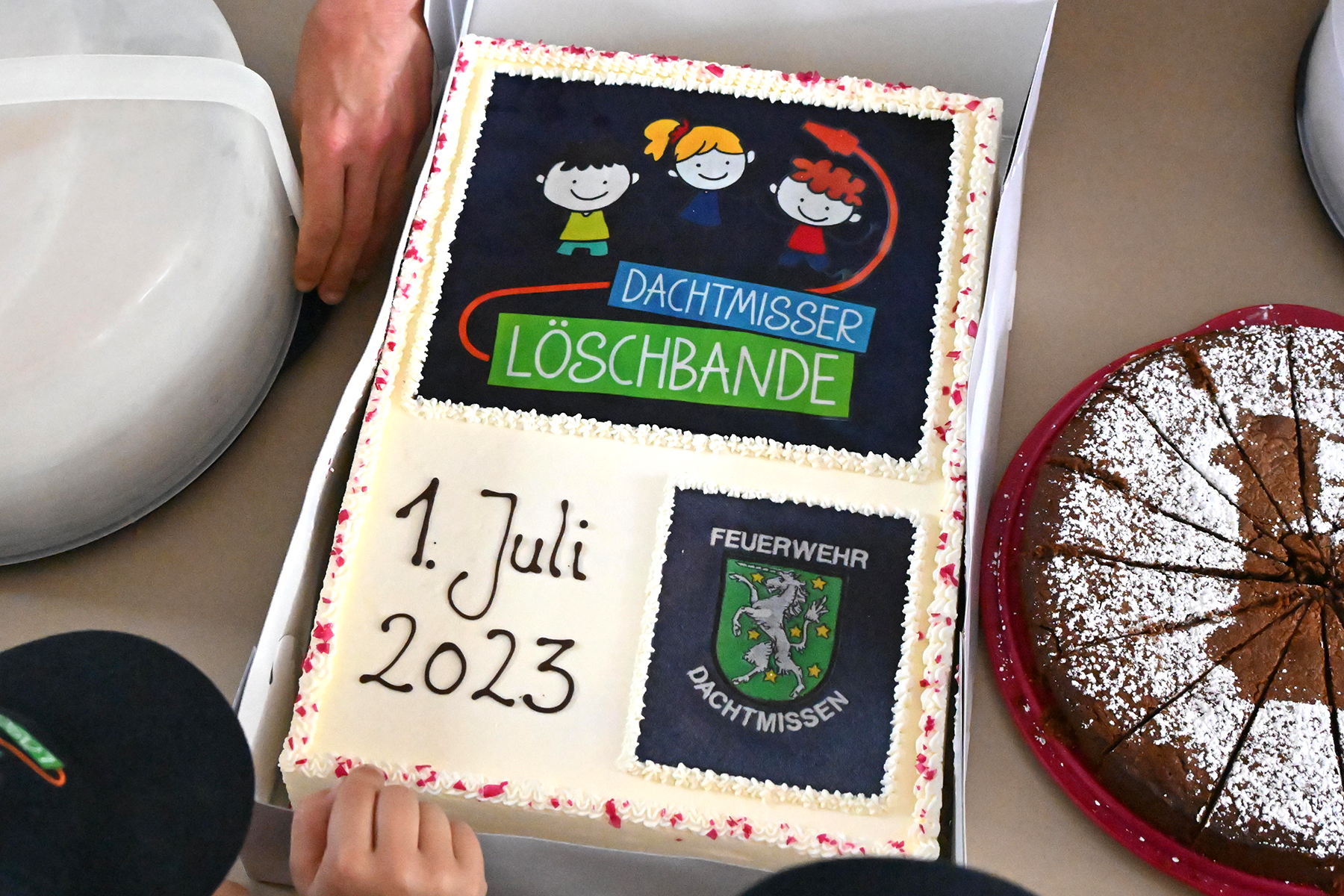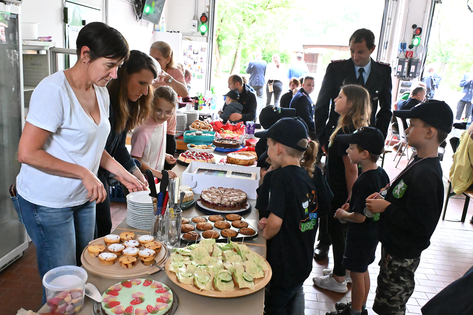 Nach dem offiziellen Akt durften dann die Kinder wieder in die erste Reihe: Zuerst ans Kuchenbuffet, das durch die Dacht-Missen organisiert worden war und bei dem auch die Gründungstorte angeschnitten wurde, und dann auf der Hüpfburg, die in Beschlag genommen wurde.