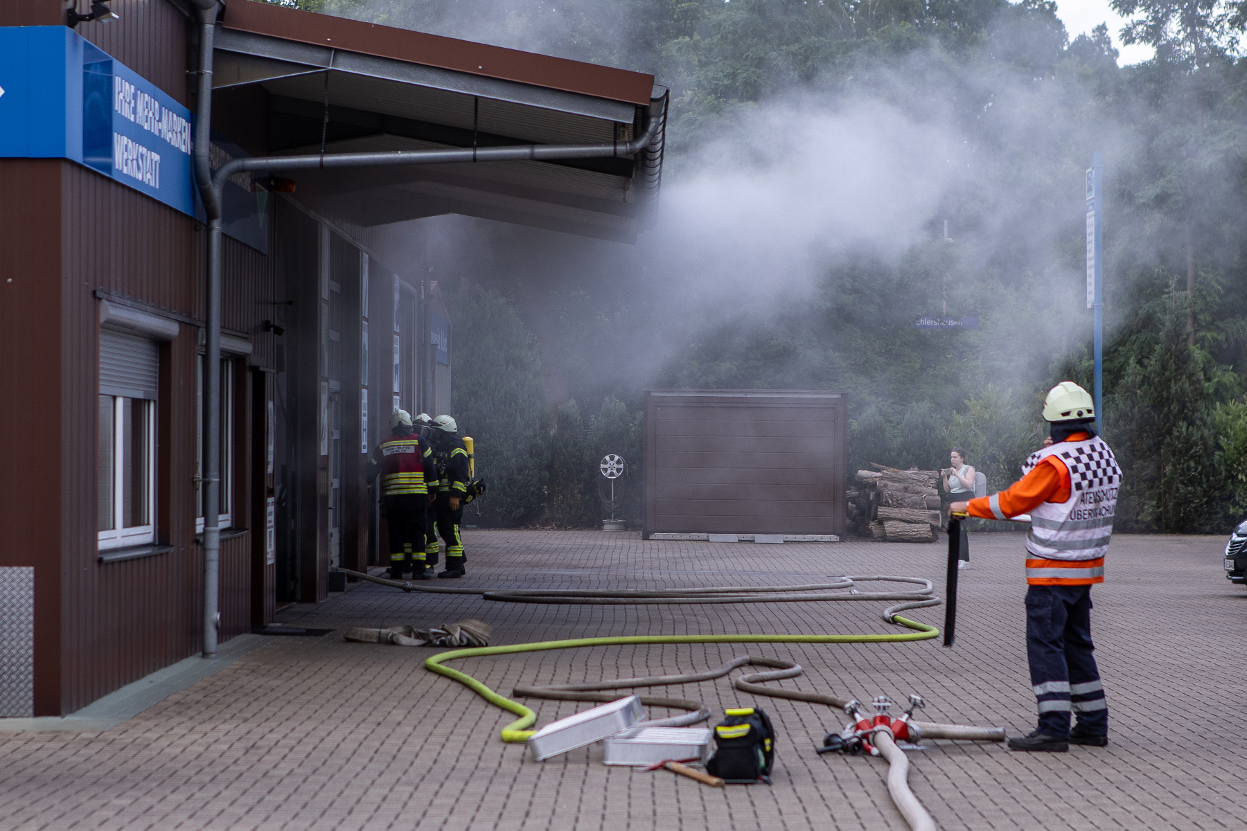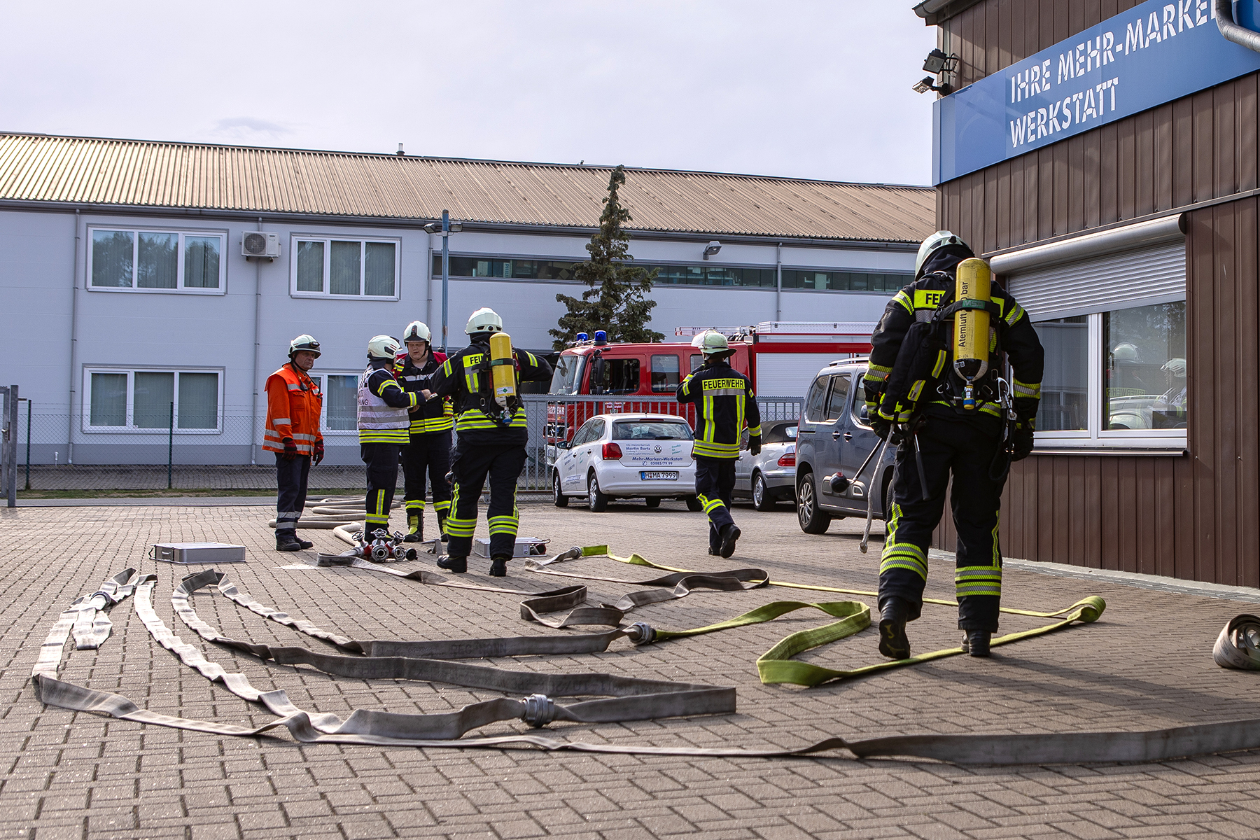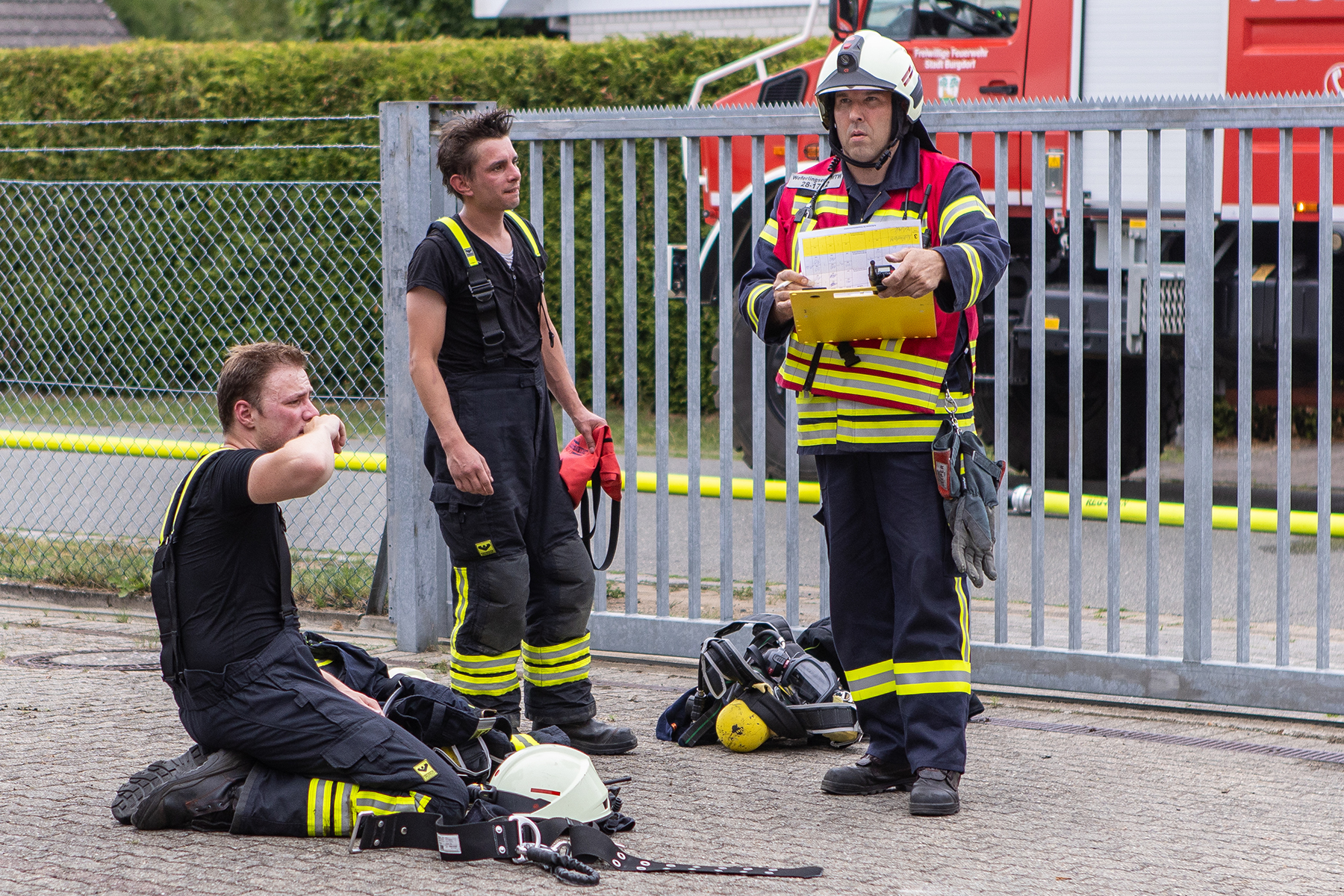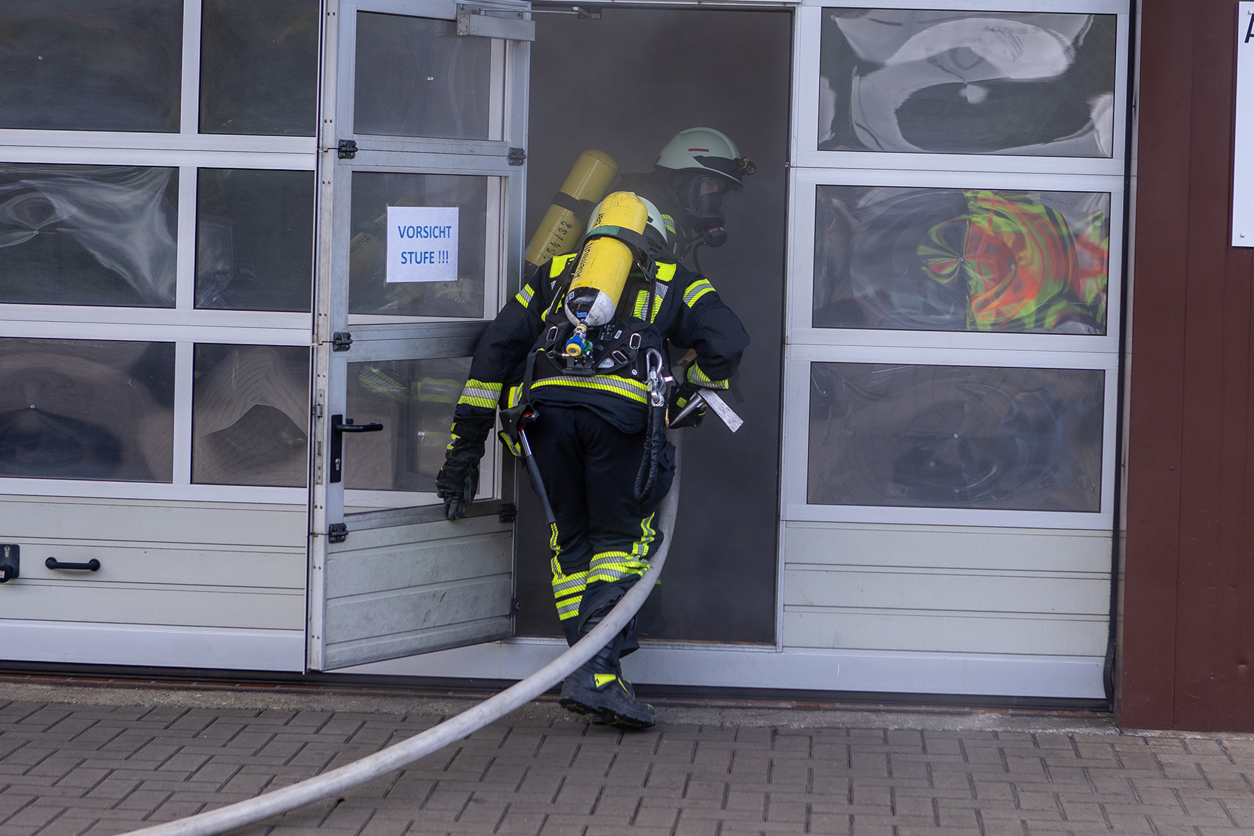Am heutigen Montag, 17. Juli 2023 um 18:08 Uhr alarmierte die Regionsleitstelle Hannover die Freiwilligen Feuerwhren aus Ramlingen-Ehlershausen und Burgdorf zu einem Mittelbrand in einer Gasumfüllstation im Zunftweg nach Ehlershausen. Stadtbrandmeister Dennis Heuer, der auch die Einsatzleiter übernommen hatte, erkundete sofort nach seinem Eintreffen die Lage und erhöhte die Alarmstufe auf B3, so dass auch die Ortsfeuerwehren Otze und Weferlingsen zur Unterstützung alarmiert wurden. Für das Einsatzszenario waren es jedoch immer noch zu wenig Einsatzkräfte, woraufhin er die Ortsfeuerwehren Dachtmissen und Hülptingsen nachalarmieren ließ. Was nur wenige wussten: Es handelte sich um eine Einsatzübung der Stadtfeuerwehr.