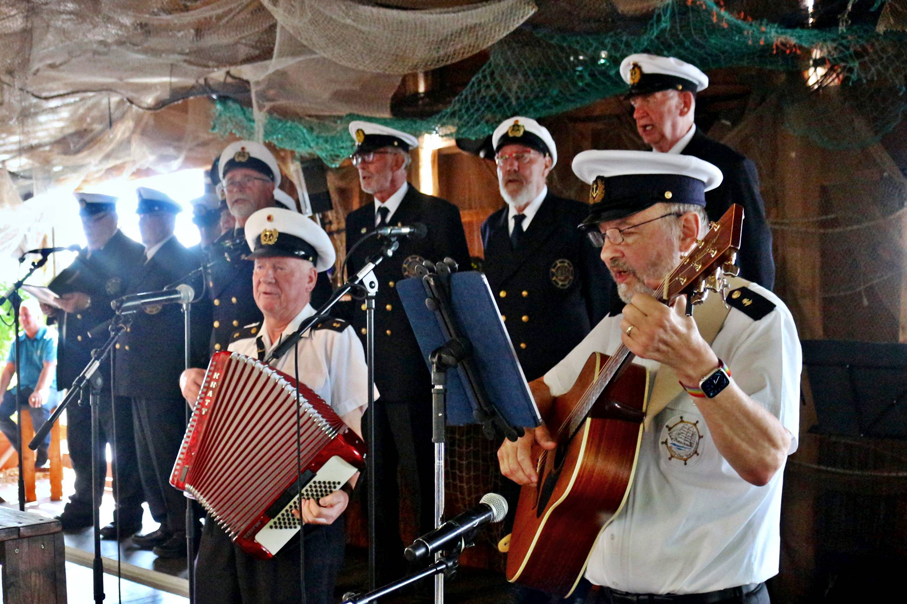 Im Rahmen des hannoverschen Maschseefestes hat am gestrigen Sonnabend, 5. August 2023, der Burgdorfer Shantychor "Graf Luckner" am Anleger "Hamborger Veermaster" festgemacht. Die Gruppe hat sich nach dem deutschen Seeoffizier und Kommandanten des Hilfskreuzers "SMS Seeadler" im Ersten Weltkrieg, Felix Nikolaus Alexander Georg Graf von Luckner (1881-1966), benannt. Der sich ursprünglich aus der Marinekameradschaft Burgdorf gegründete Männerchor hatte einen Seesack voller Arbeitslieder (Shanty) von Segelschiffmatrosen im Gepäck.