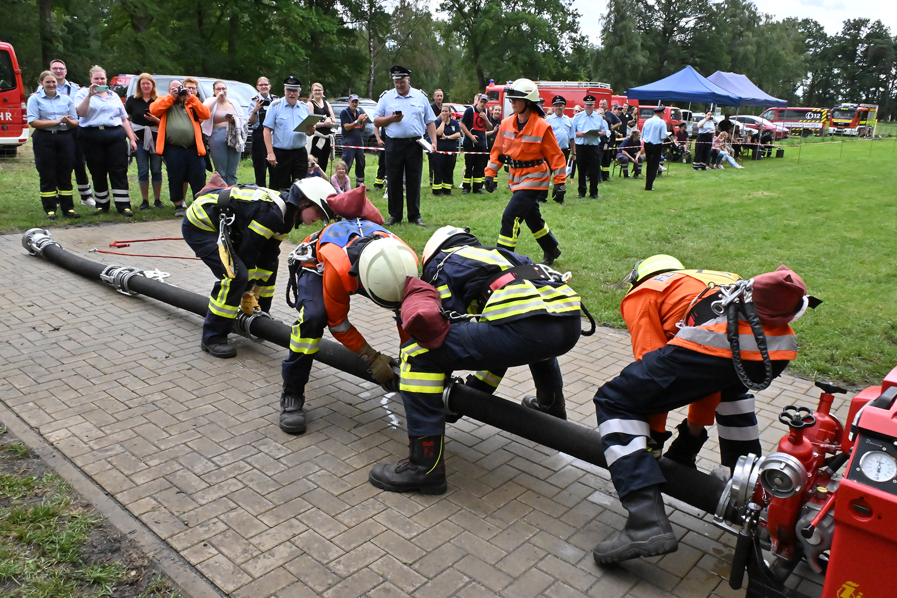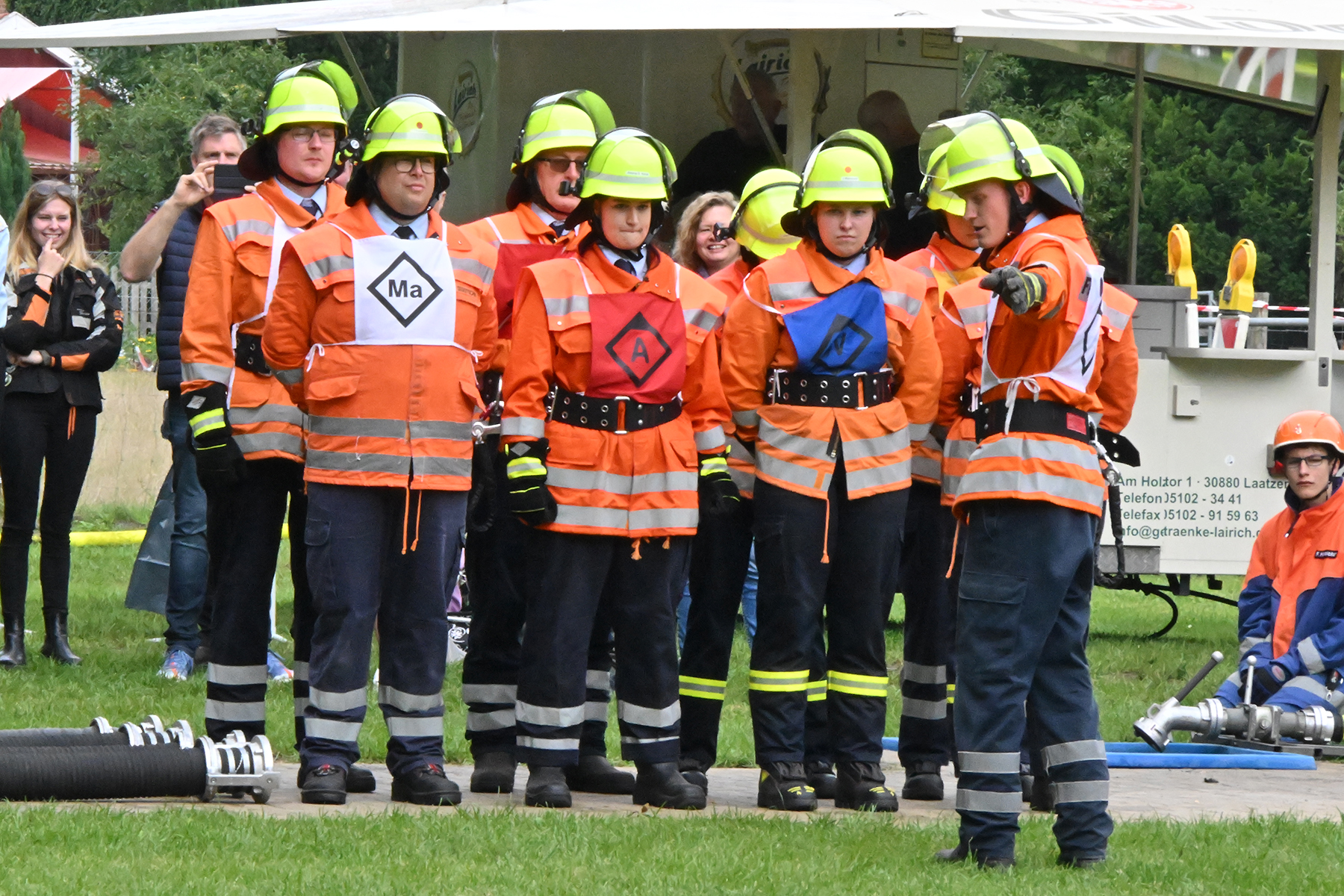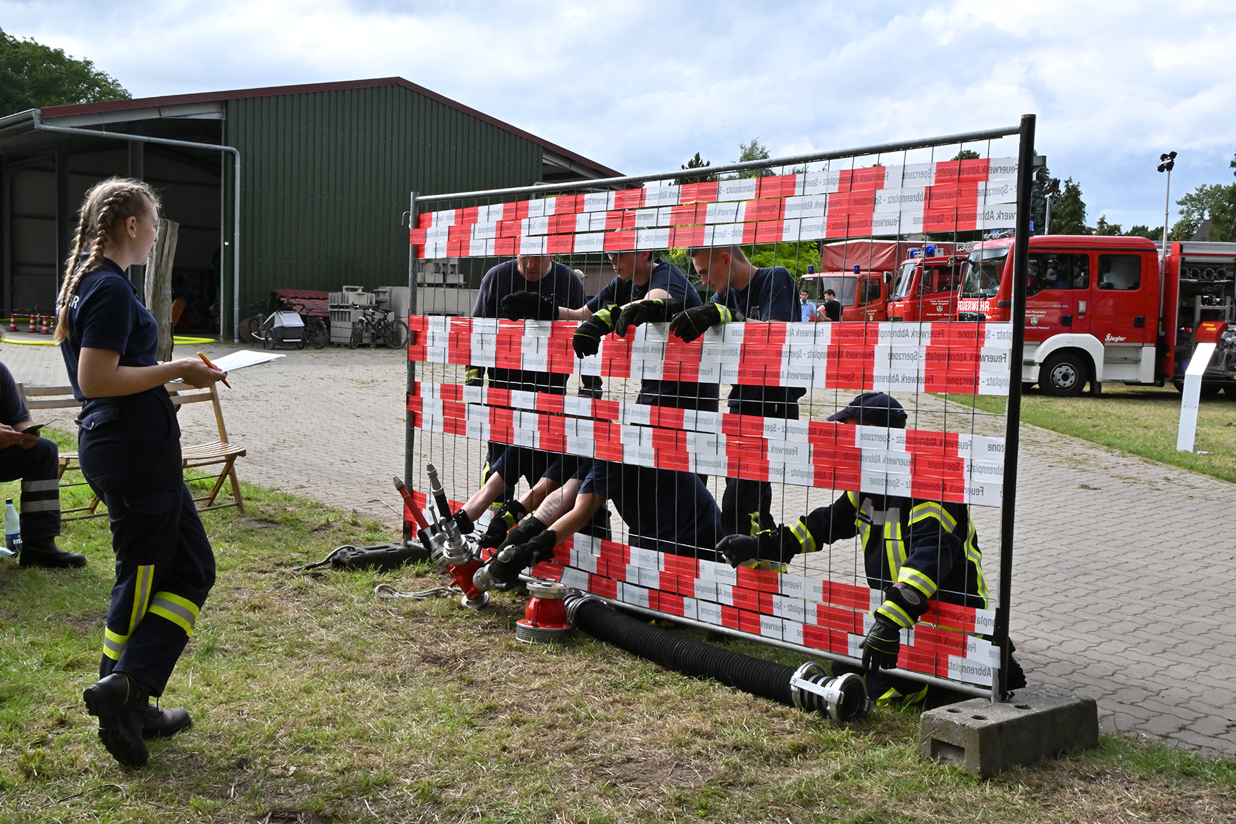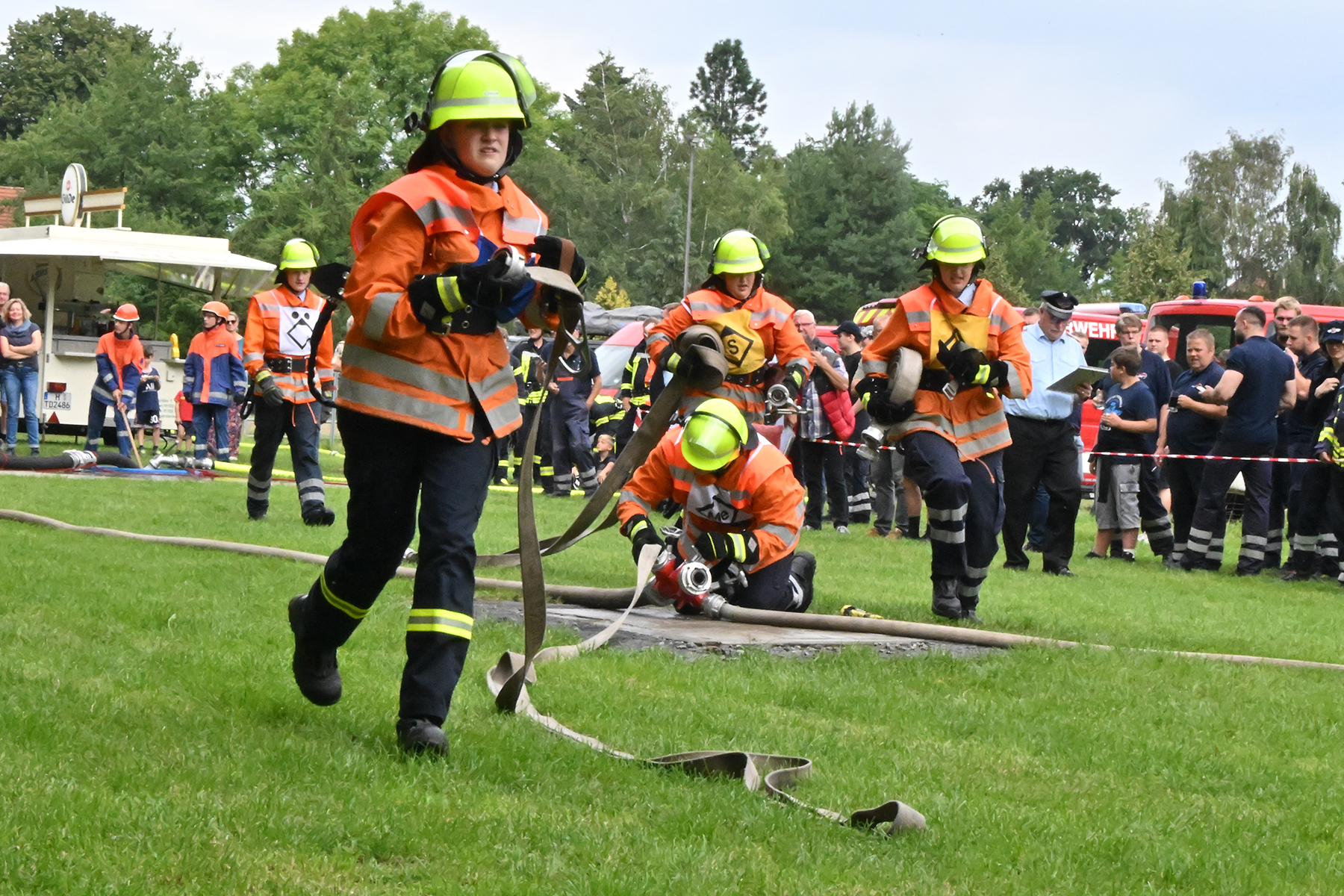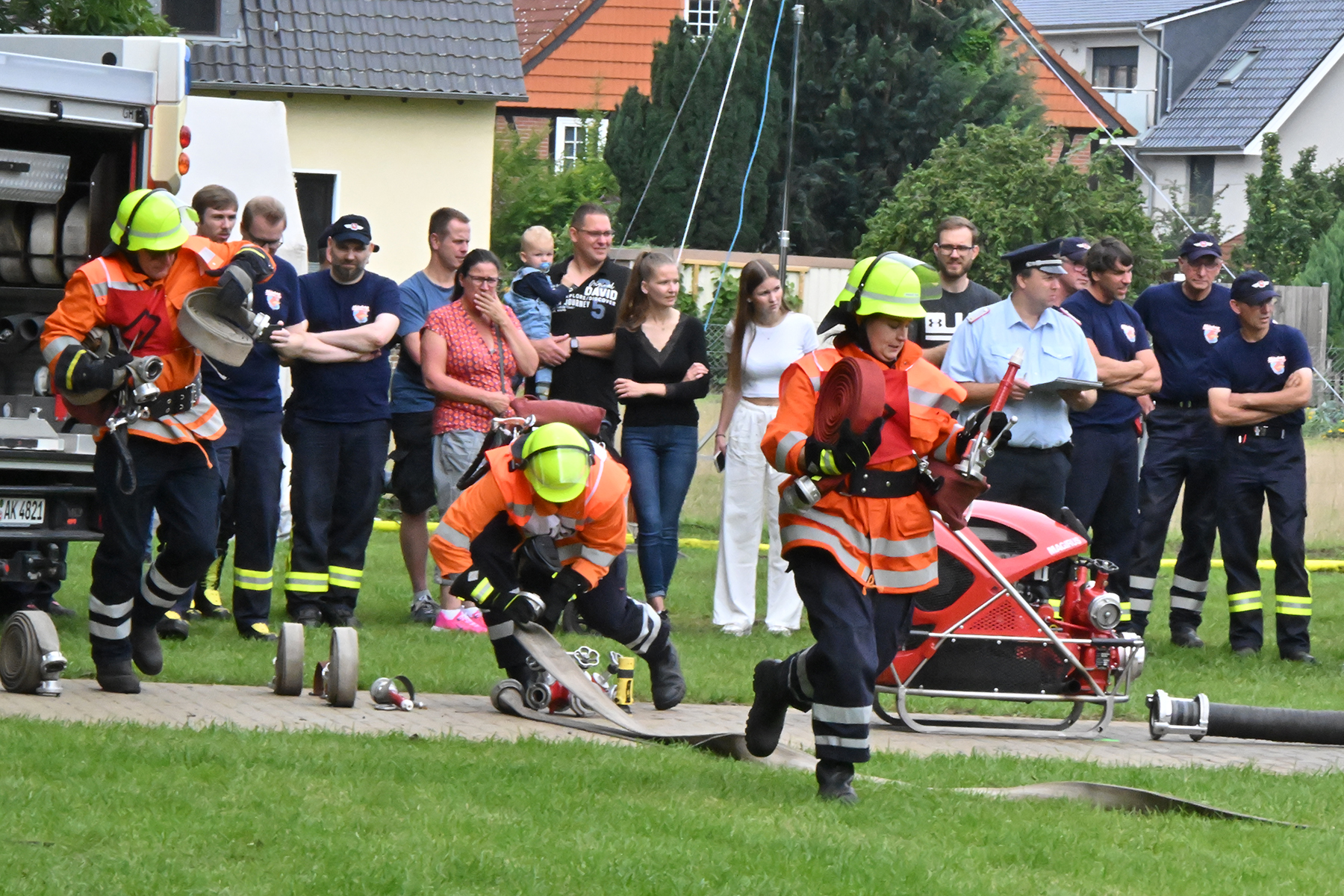 Dass der Spaß an erster Stelle stand, zeigte sich bei der letzten Wettkampfgruppe: Einer bunt durchmischten Gruppe aller teilnehmenden Ortsfeuerwehren, auch wenn Gruppenführerin Grit July diese beim Bahnleiter als "Wettkampfgruppe Weferlingsen" vorstelle. Damit hatte sie die Lacher auf ihrer Seite. "Aber auch egal", so Grit July. Die Unterstützung aller Zuschauer hatte diese Gruppe wie alle anderen Gruppen ebenso sicher.