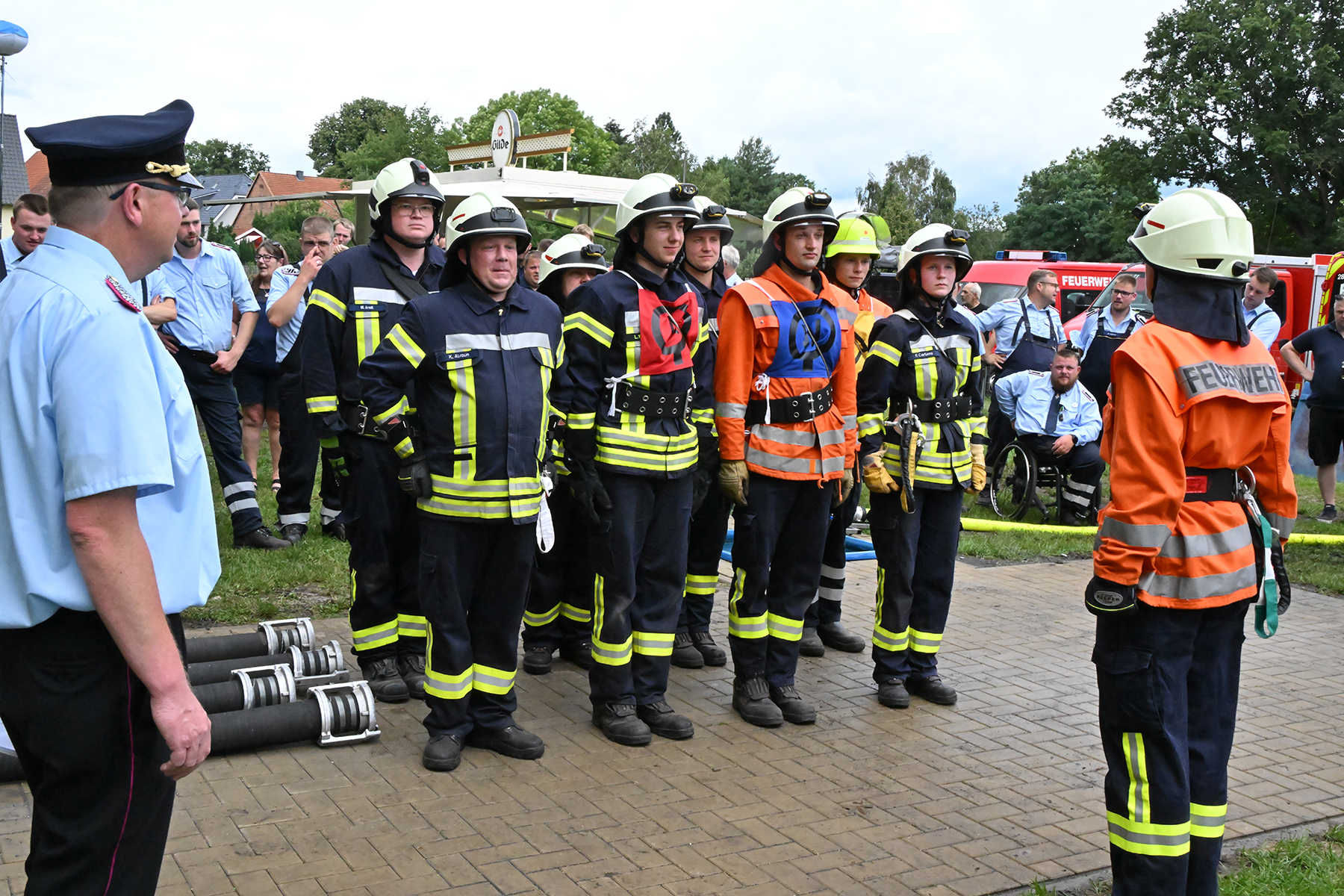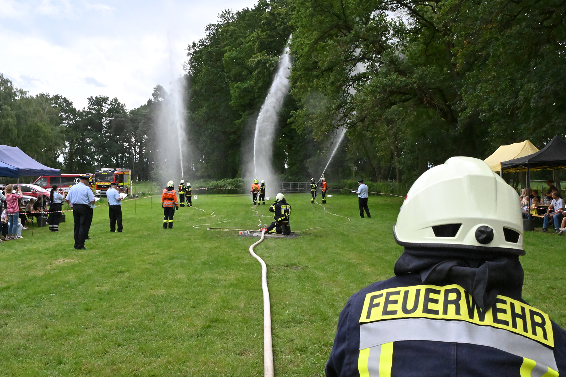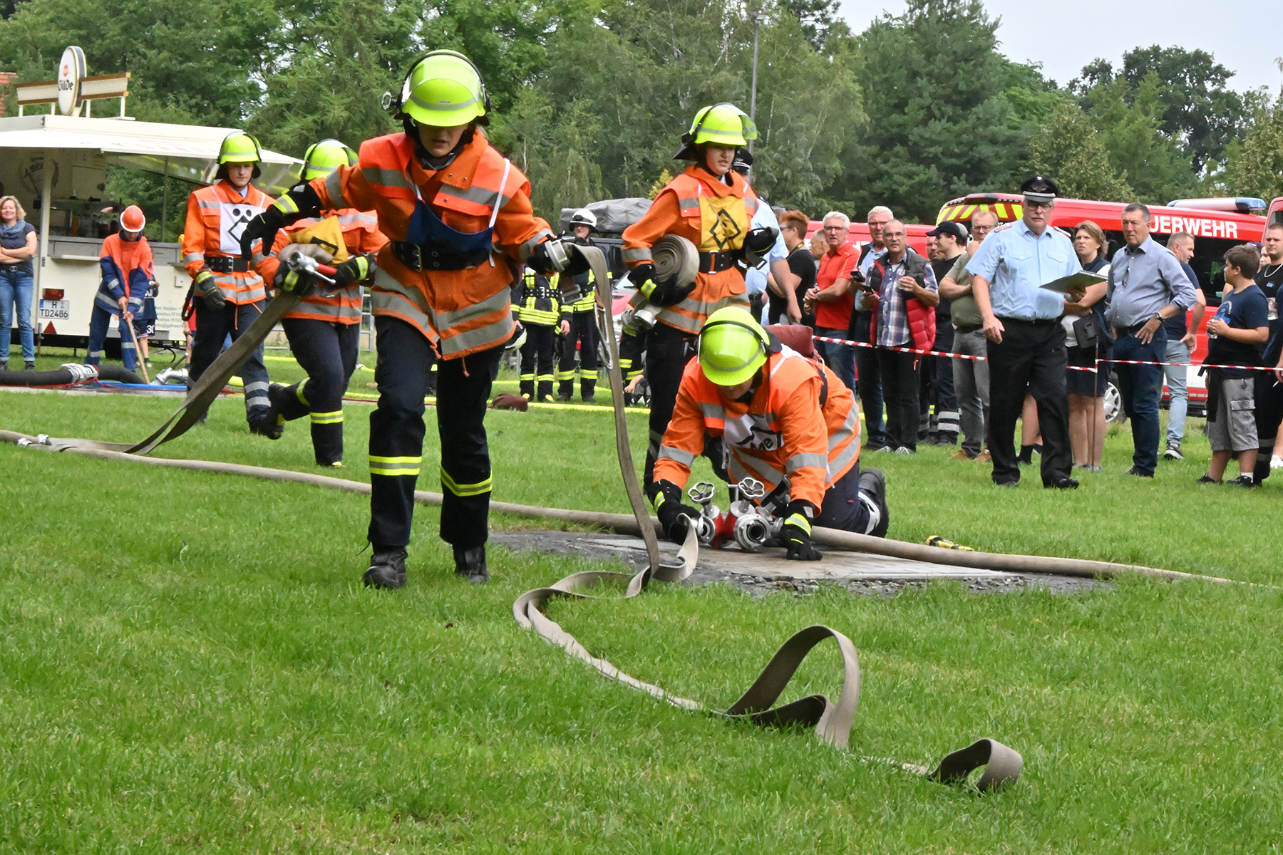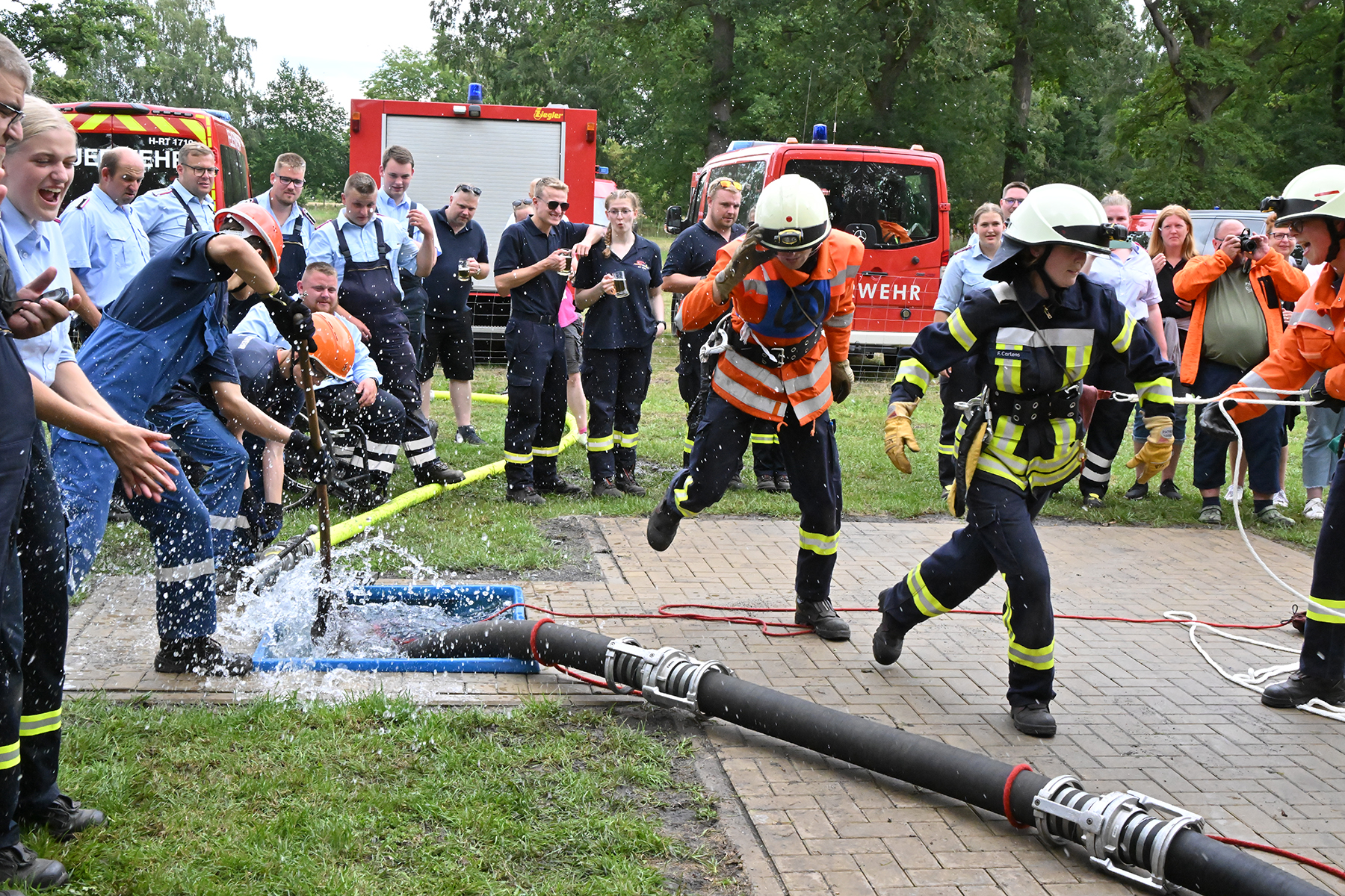 Dass der Spaß an erster Stelle stand, zeigte sich bei der letzten Wettkampfgruppe: Einer bunt durchmischten Gruppe aller teilnehmenden Ortsfeuerwehren, auch wenn Gruppenführerin Grit July diese beim Bahnleiter als "Wettkampfgruppe Weferlingsen" vorstelle. Damit hatte sie die Lacher auf ihrer Seite. "Aber auch egal", so Grit July. Die Unterstützung aller Zuschauer hatte diese Gruppe wie alle anderen Gruppen ebenso sicher.