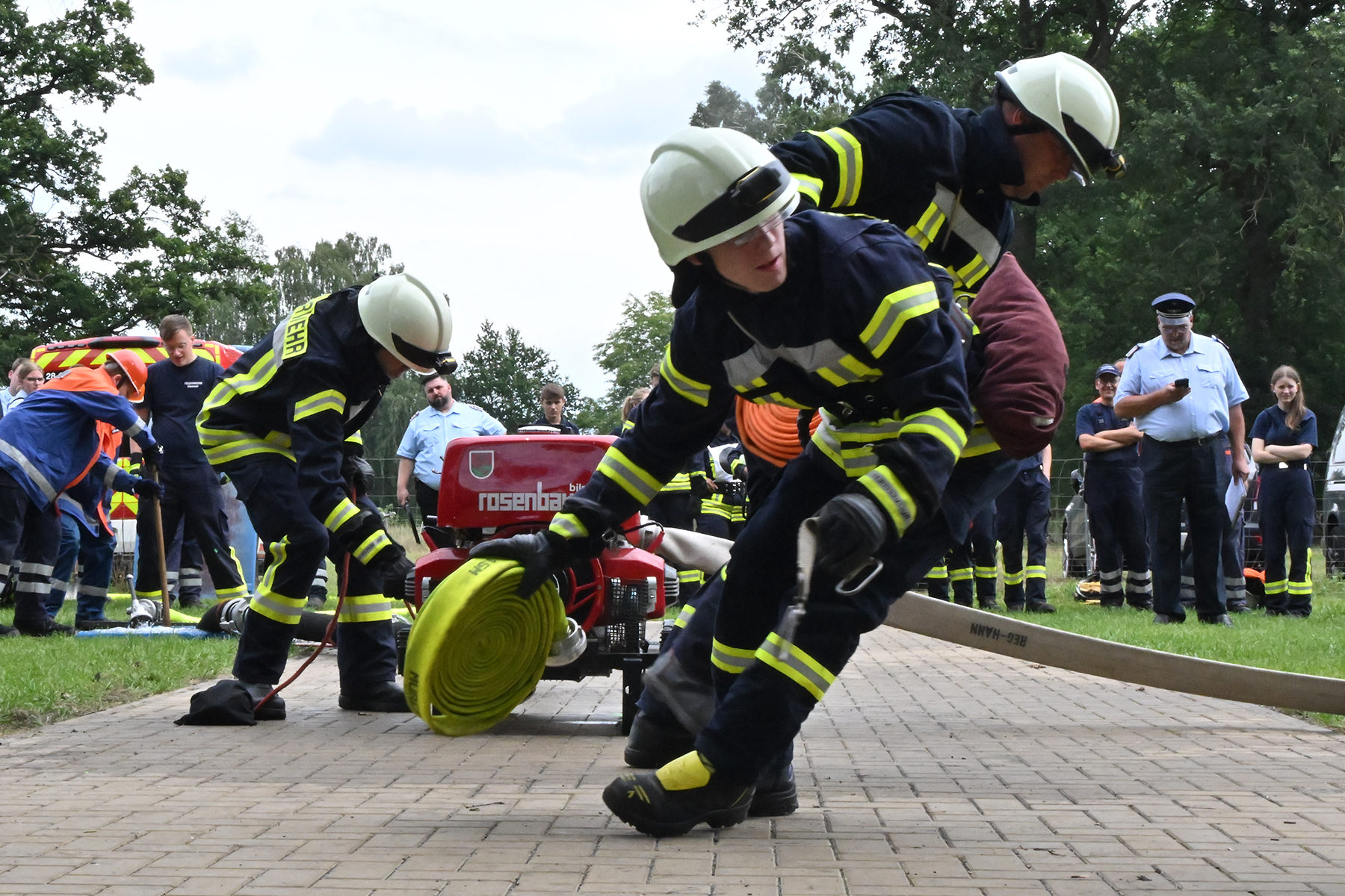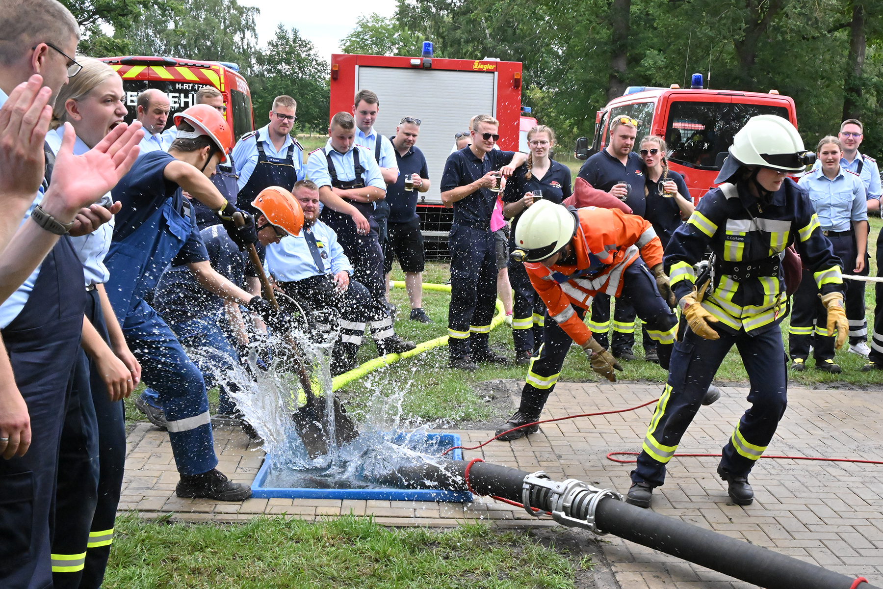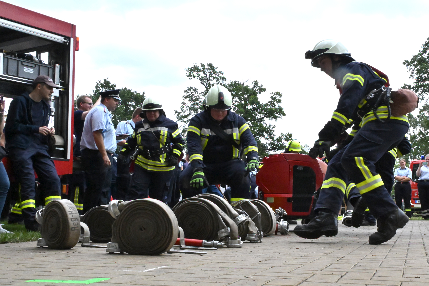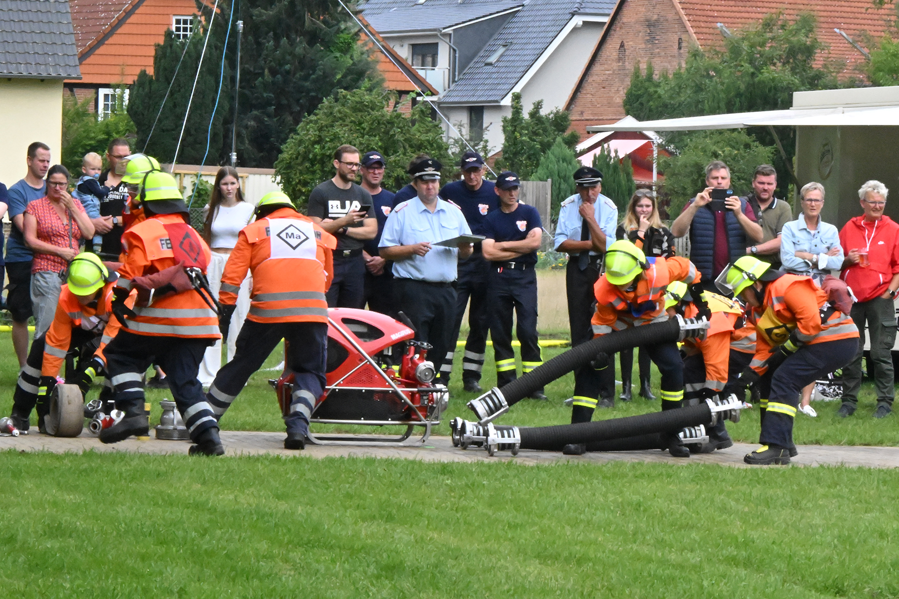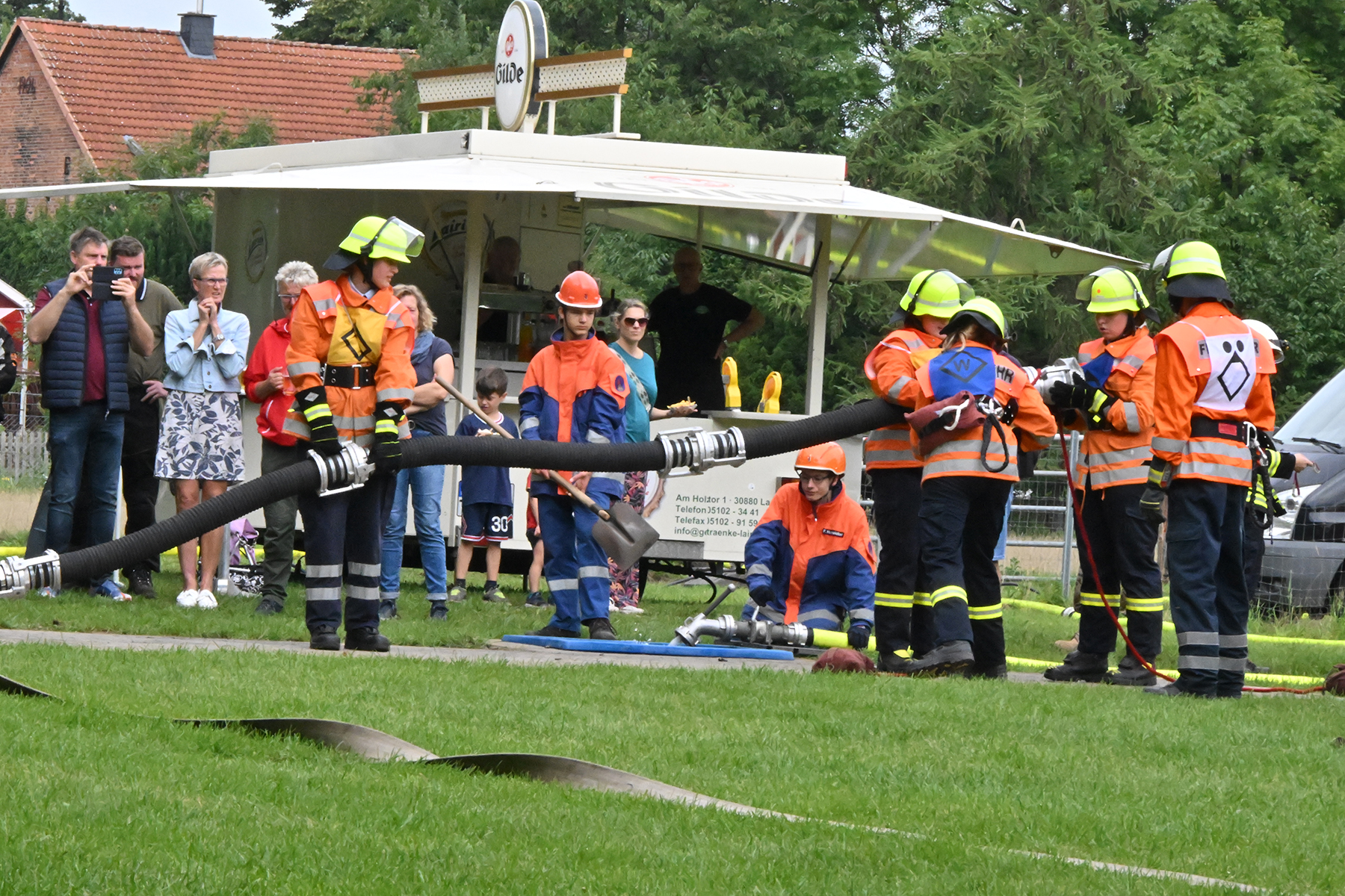 Dass der Spaß an erster Stelle stand, zeigte sich bei der letzten Wettkampfgruppe: Einer bunt durchmischten Gruppe aller teilnehmenden Ortsfeuerwehren, auch wenn Gruppenführerin Grit July diese beim Bahnleiter als "Wettkampfgruppe Weferlingsen" vorstelle. Damit hatte sie die Lacher auf ihrer Seite. "Aber auch egal", so Grit July. Die Unterstützung aller Zuschauer hatte diese Gruppe wie alle anderen Gruppen ebenso sicher.