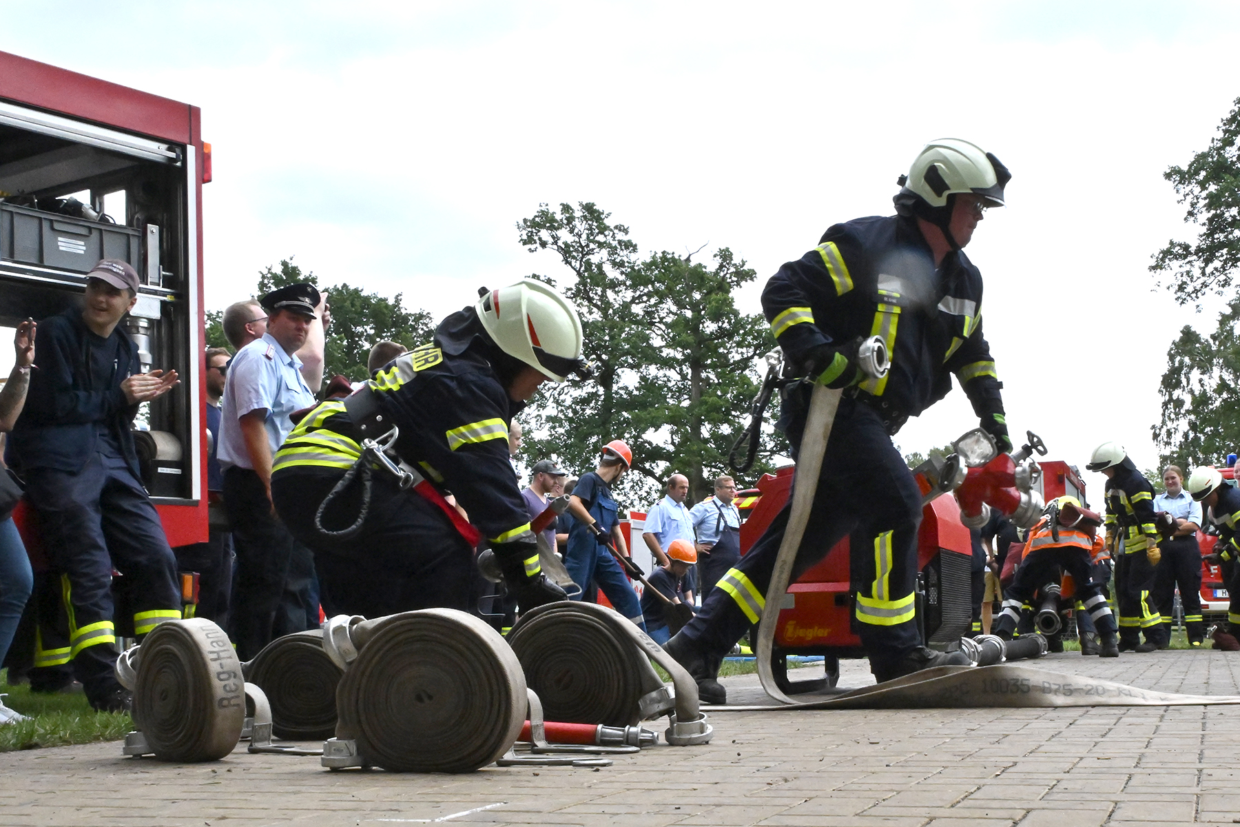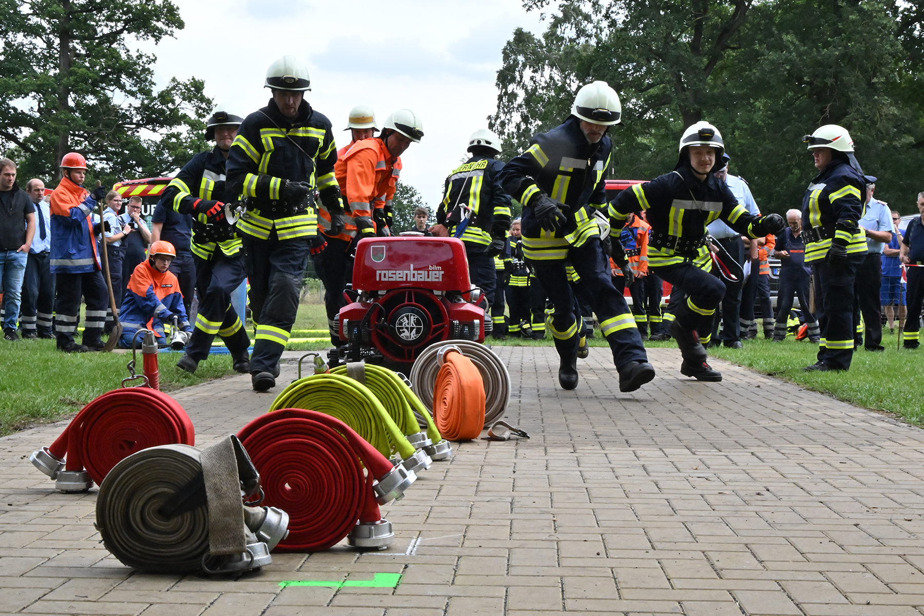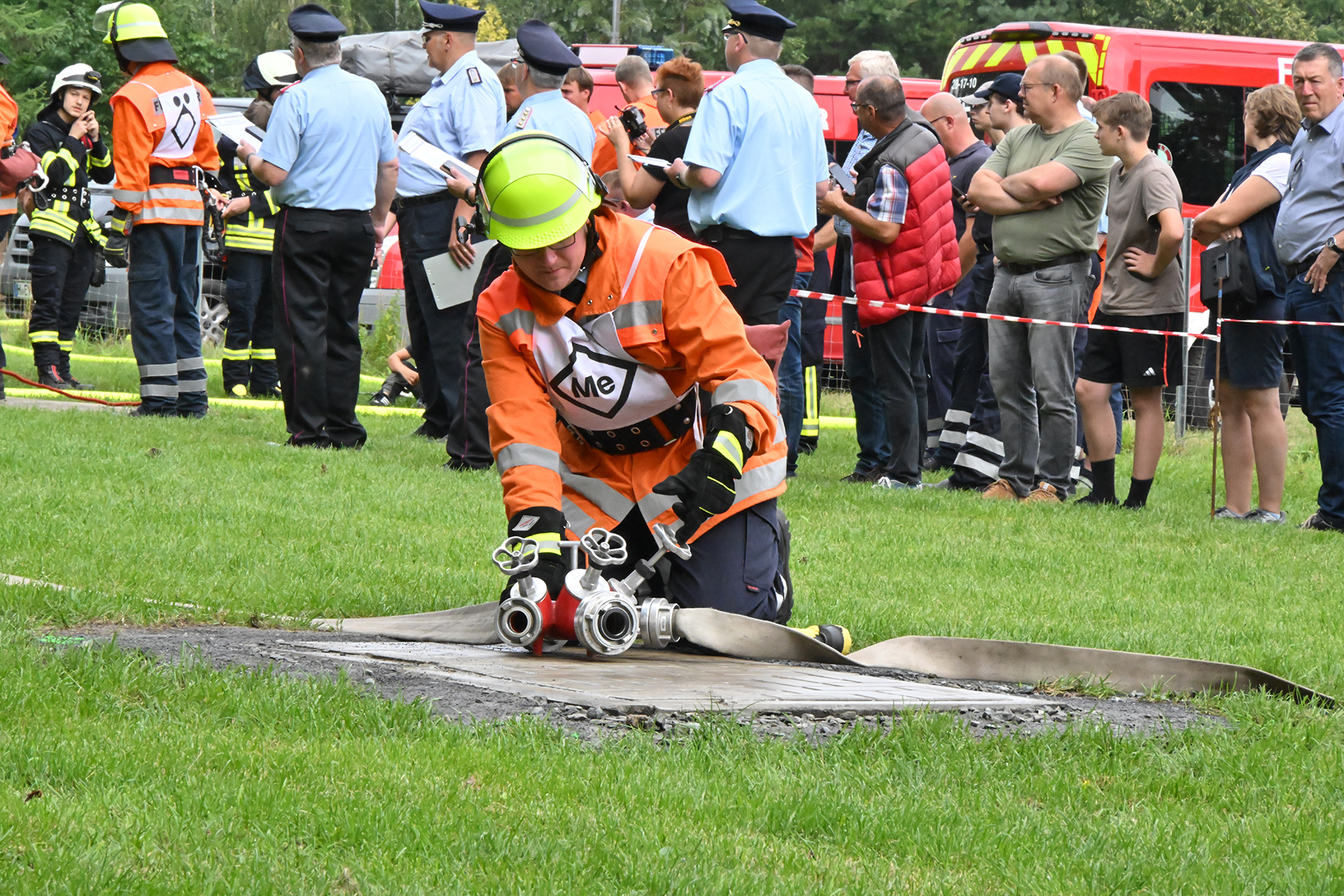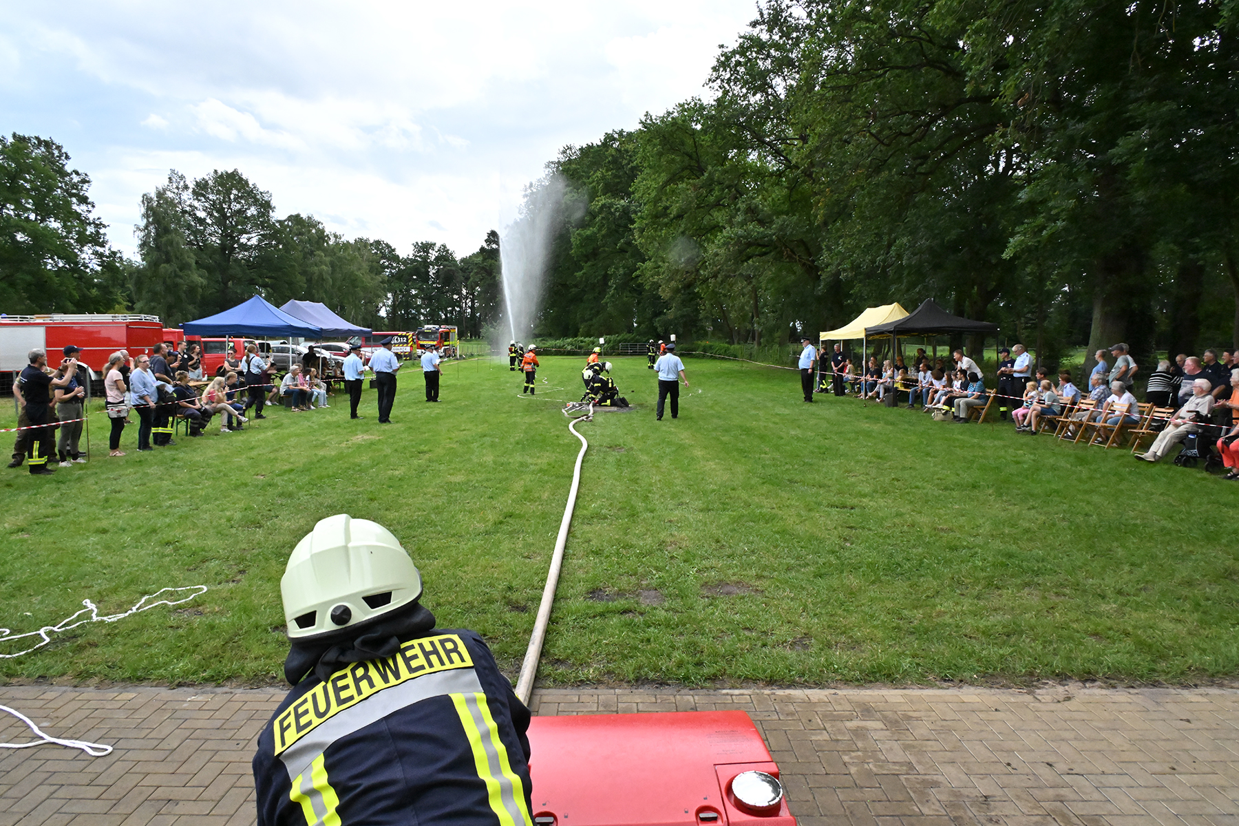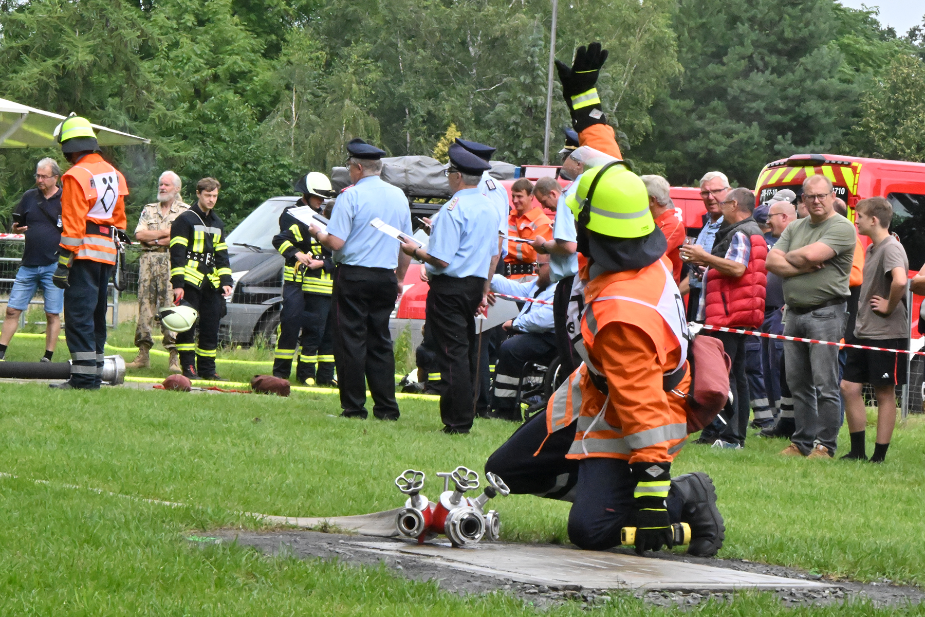 Dass der Spaß an erster Stelle stand, zeigte sich bei der letzten Wettkampfgruppe: Einer bunt durchmischten Gruppe aller teilnehmenden Ortsfeuerwehren, auch wenn Gruppenführerin Grit July diese beim Bahnleiter als "Wettkampfgruppe Weferlingsen" vorstelle. Damit hatte sie die Lacher auf ihrer Seite. "Aber auch egal", so Grit July. Die Unterstützung aller Zuschauer hatte diese Gruppe wie alle anderen Gruppen ebenso sicher.
