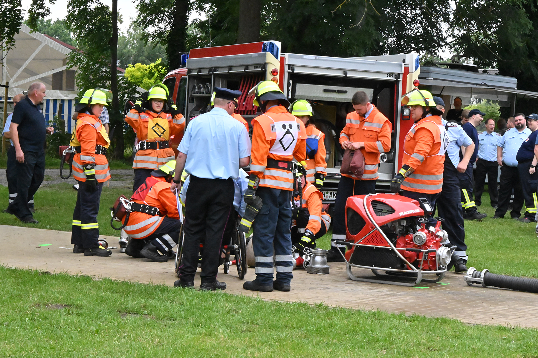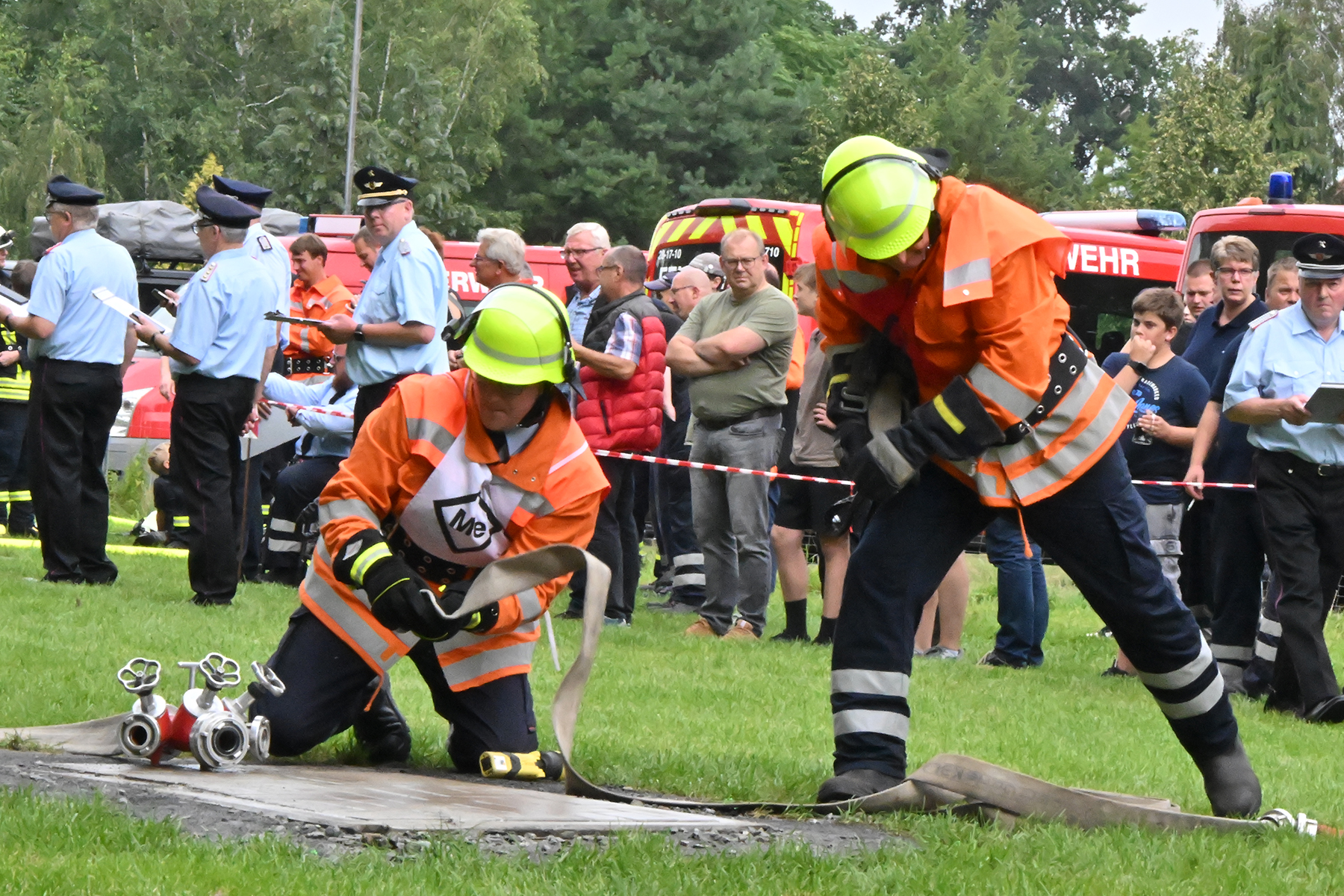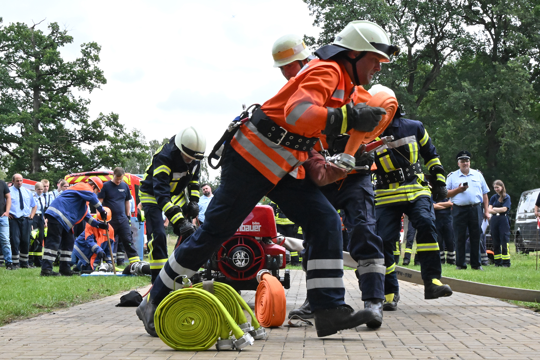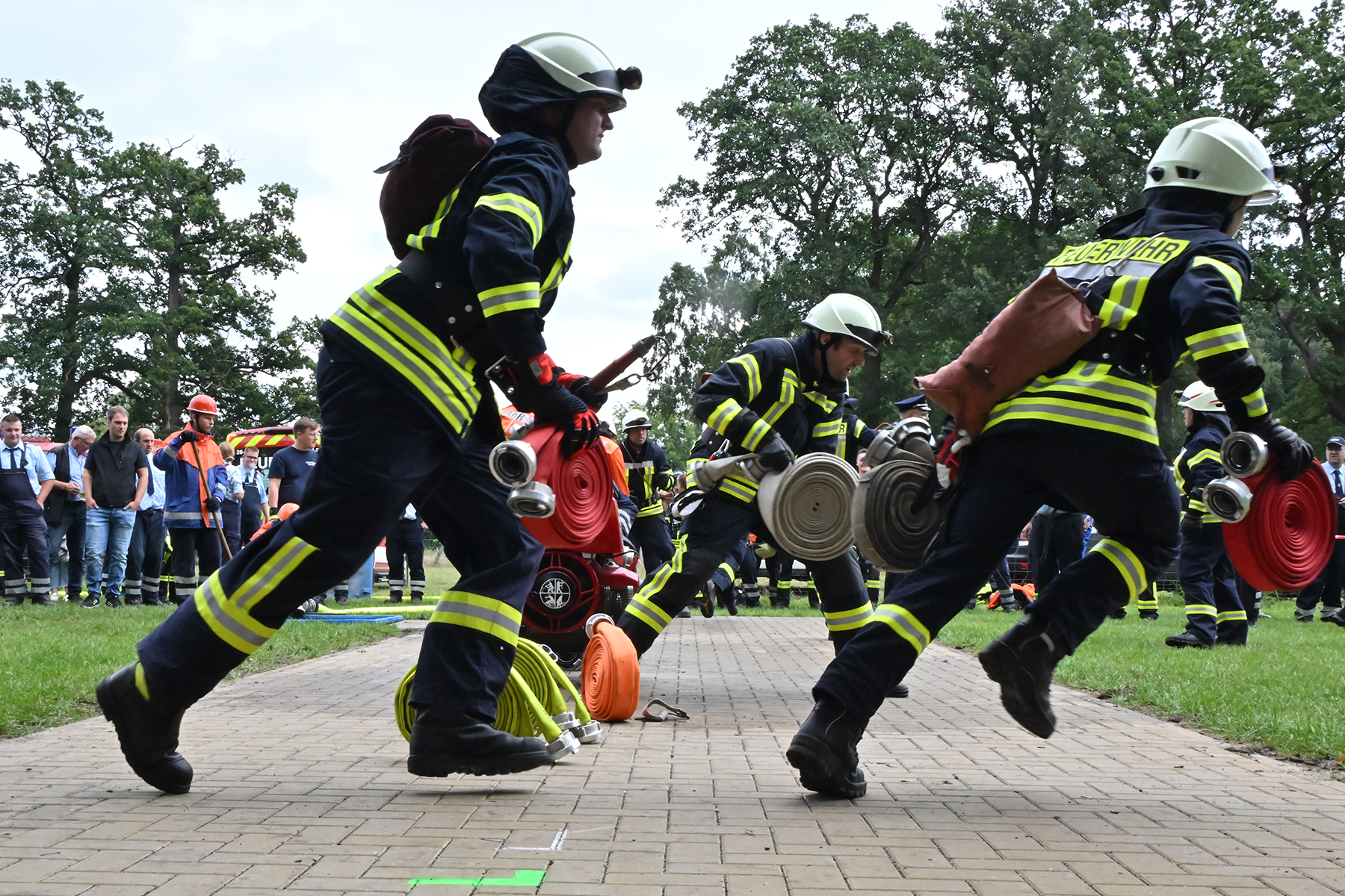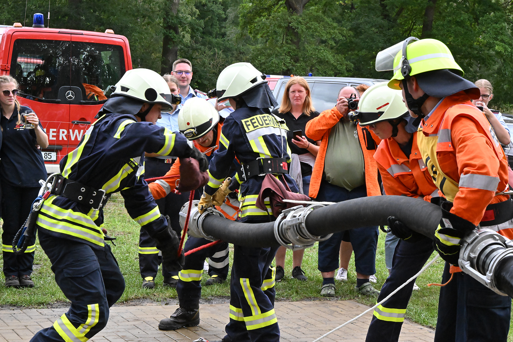 Dass der Spaß an erster Stelle stand, zeigte sich bei der letzten Wettkampfgruppe: Einer bunt durchmischten Gruppe aller teilnehmenden Ortsfeuerwehren, auch wenn Gruppenführerin Grit July diese beim Bahnleiter als "Wettkampfgruppe Weferlingsen" vorstelle. Damit hatte sie die Lacher auf ihrer Seite. "Aber auch egal", so Grit July. Die Unterstützung aller Zuschauer hatte diese Gruppe wie alle anderen Gruppen ebenso sicher.