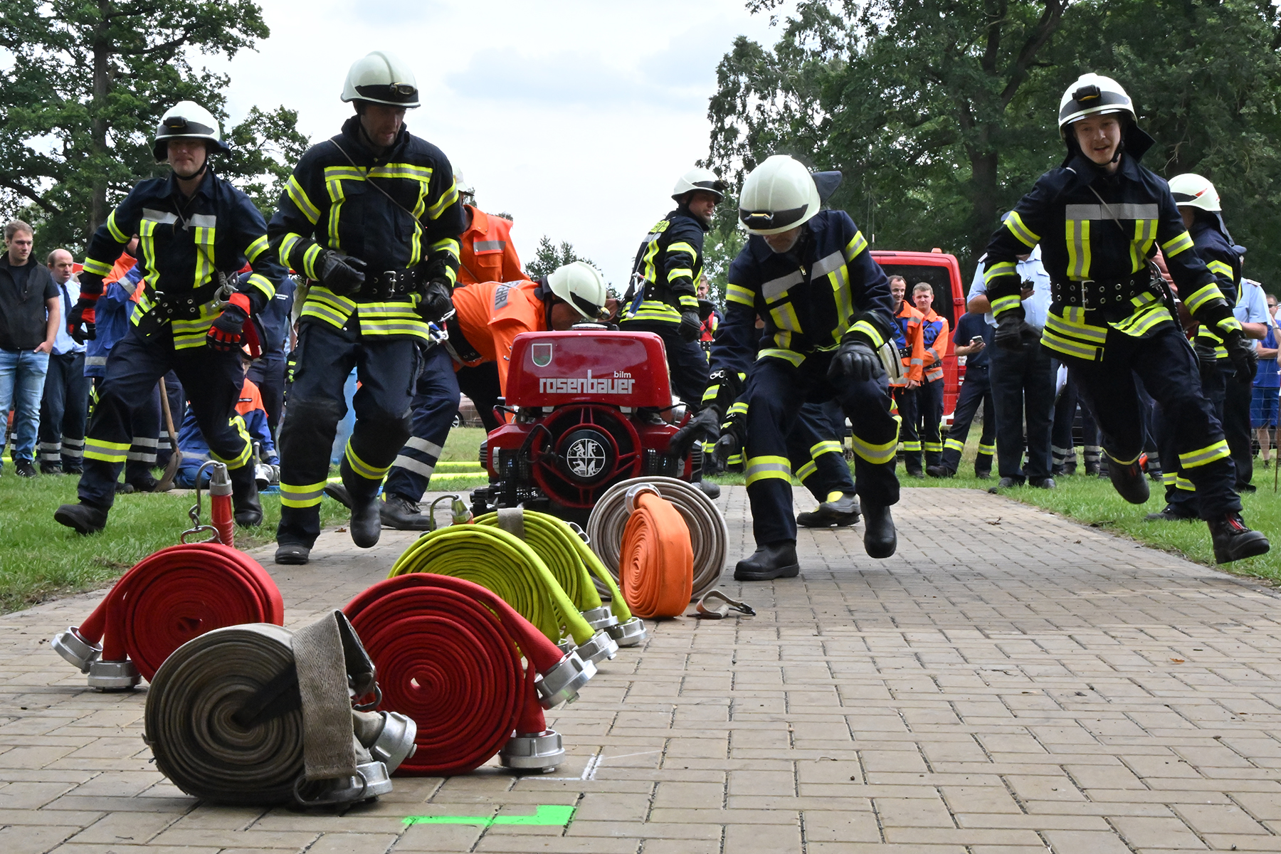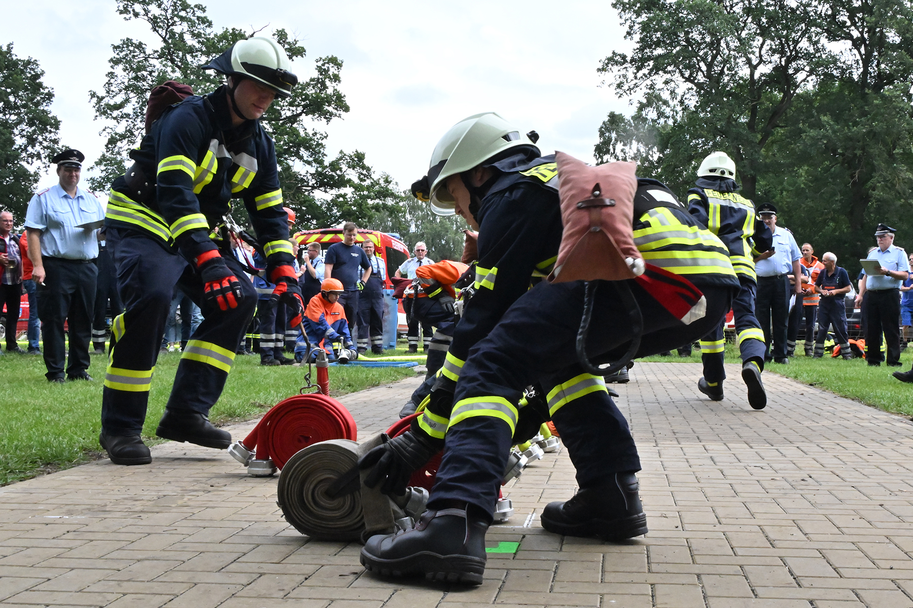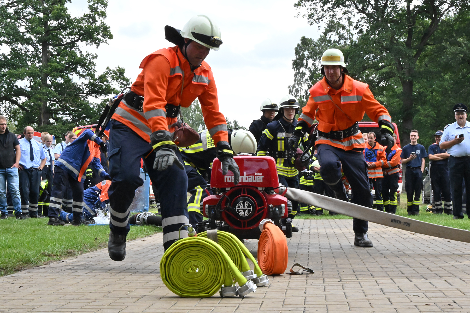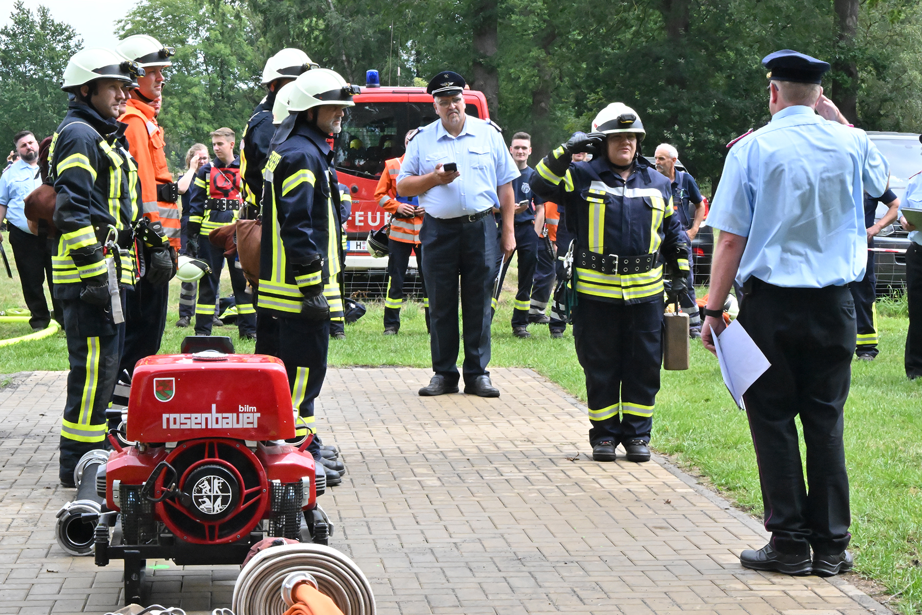 Dass der Spaß an erster Stelle stand, zeigte sich bei der letzten Wettkampfgruppe: Einer bunt durchmischten Gruppe aller teilnehmenden Ortsfeuerwehren, auch wenn Gruppenführerin Grit July diese beim Bahnleiter als "Wettkampfgruppe Weferlingsen" vorstelle. Damit hatte sie die Lacher auf ihrer Seite. "Aber auch egal", so Grit July. Die Unterstützung aller Zuschauer hatte diese Gruppe wie alle anderen Gruppen ebenso sicher.
