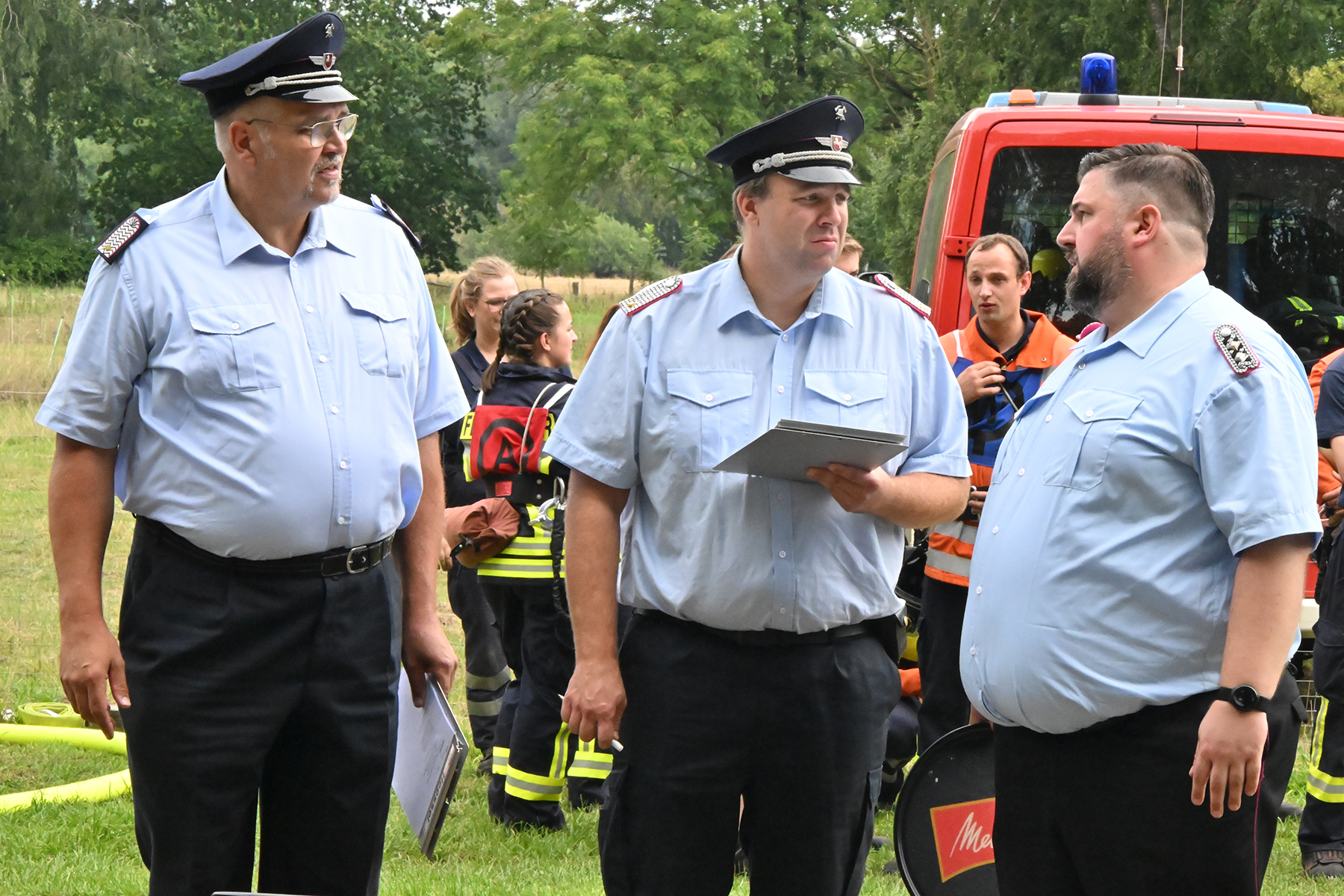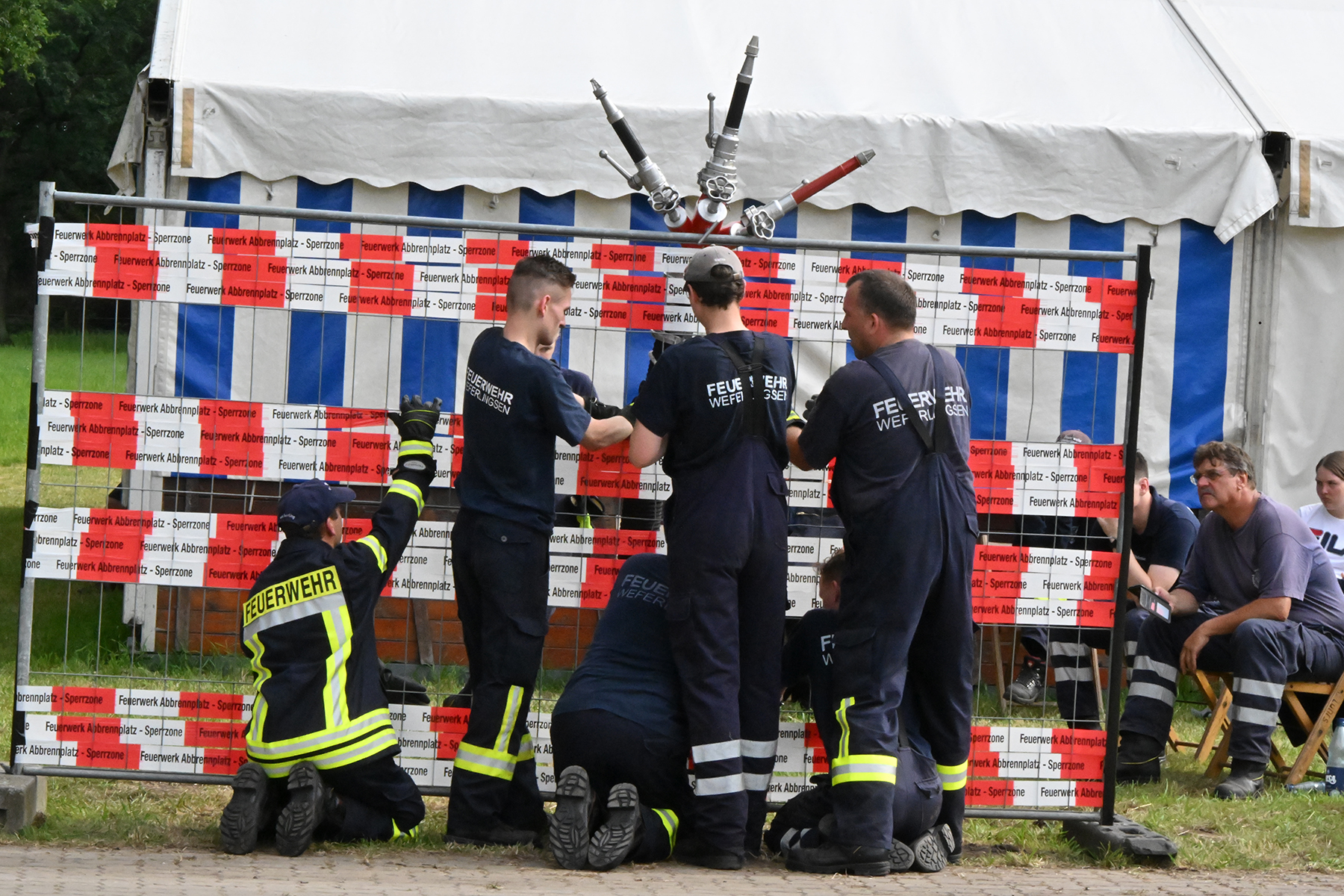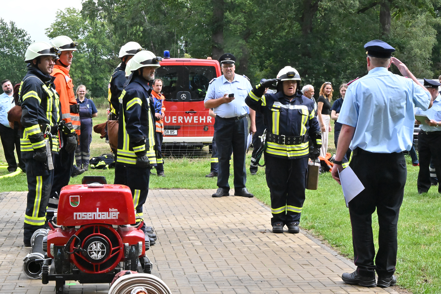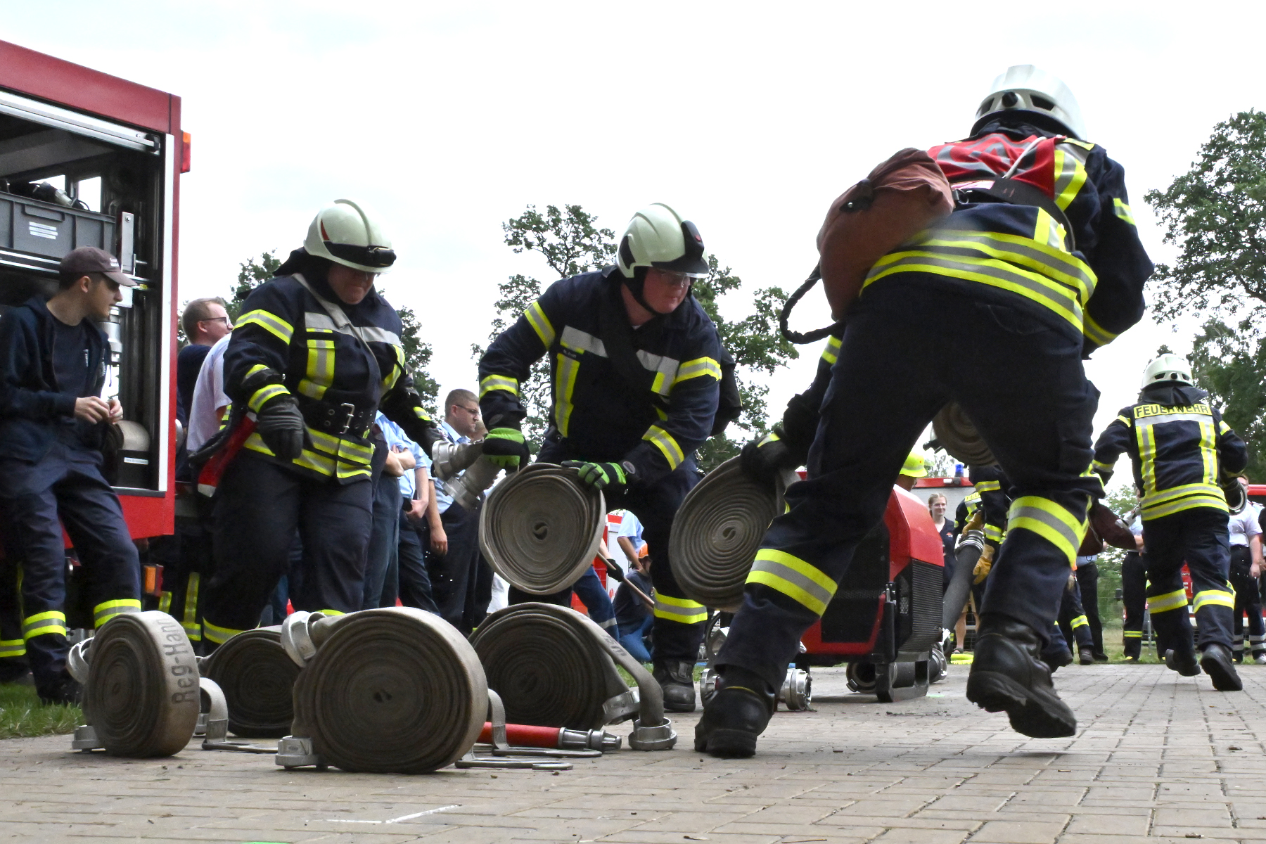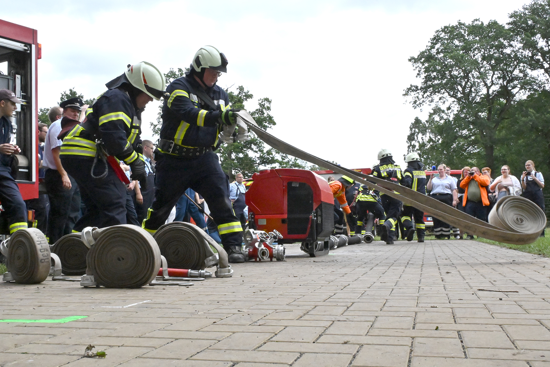 Dass der Spaß an erster Stelle stand, zeigte sich bei der letzten Wettkampfgruppe: Einer bunt durchmischten Gruppe aller teilnehmenden Ortsfeuerwehren, auch wenn Gruppenführerin Grit July diese beim Bahnleiter als "Wettkampfgruppe Weferlingsen" vorstelle. Damit hatte sie die Lacher auf ihrer Seite. "Aber auch egal", so Grit July. Die Unterstützung aller Zuschauer hatte diese Gruppe wie alle anderen Gruppen ebenso sicher.