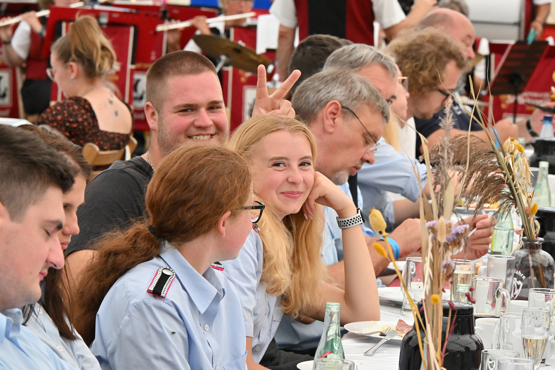 Bereits am Freitag waren rund 300 Gäste ins Festzelt am Burgweg zum offiziellen Festkommers gekommen (wir berichteten). Darunter auch eine 13-köpfige Abordnung der Partnerfeuerwehr aus Colbitz (Sachsen-Anhalt), die sogar über Nacht blieb und in der ehemaligen Dorfschule übernachtete.
