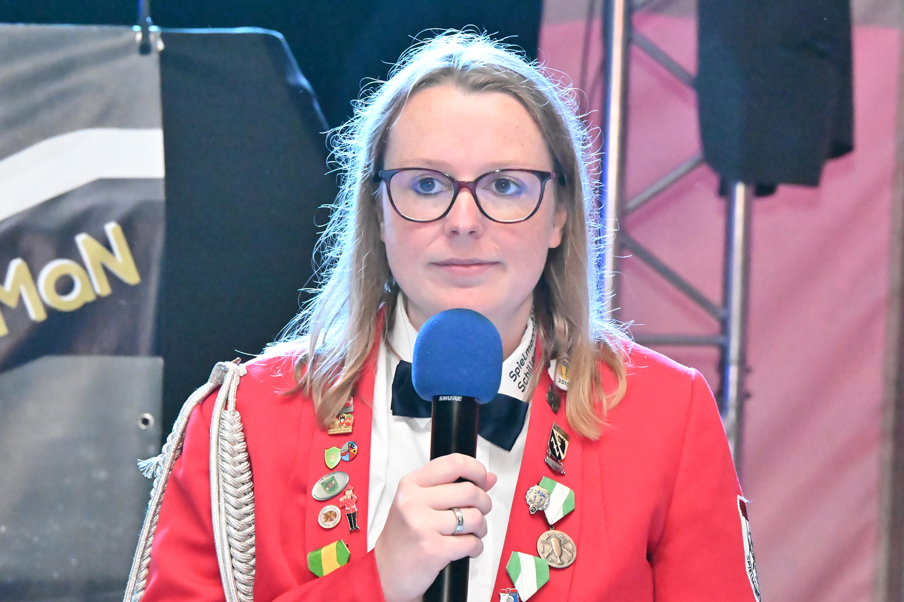 Im weiteren Verlauf des Abends wurden vor der Proklamation der neuen Majestäten noch Pokale überreicht. Den Spielmannszugpokal holte sich Elke Nowicki. Den "Pokal der 1000 Möglichkeiten" für verdiente Mitglieder des Spielmannszuges ging an Nadine Bethmann, seit 37 Jahren Mitglied und langjährige Kassenwartin.