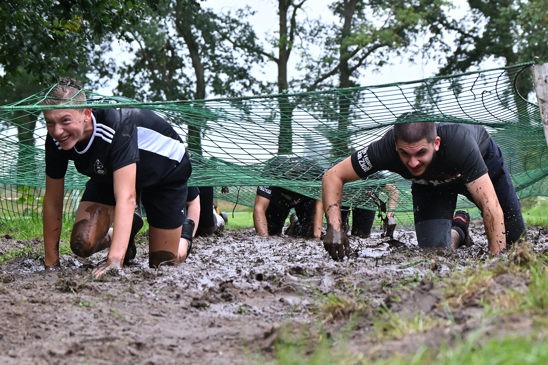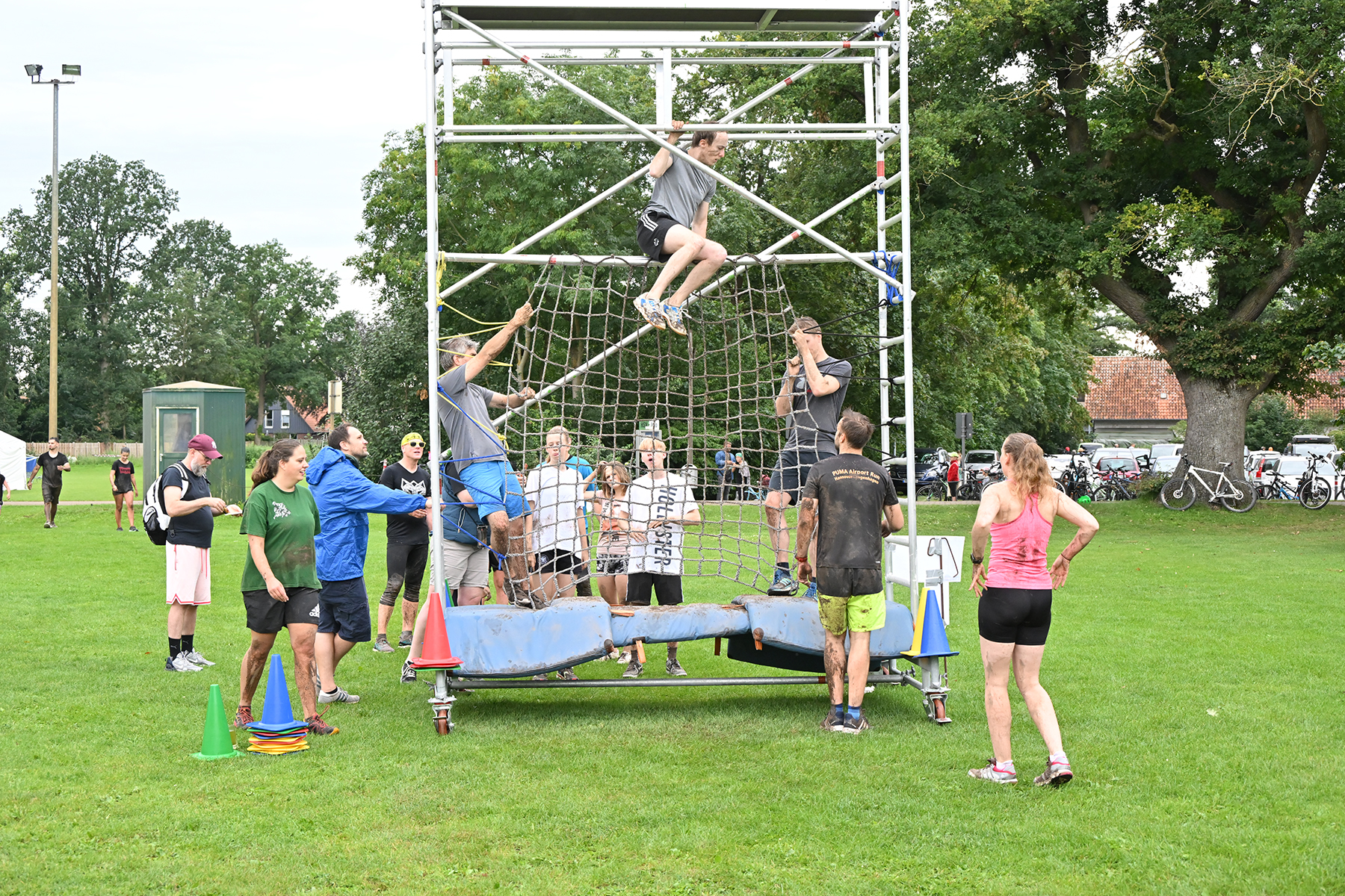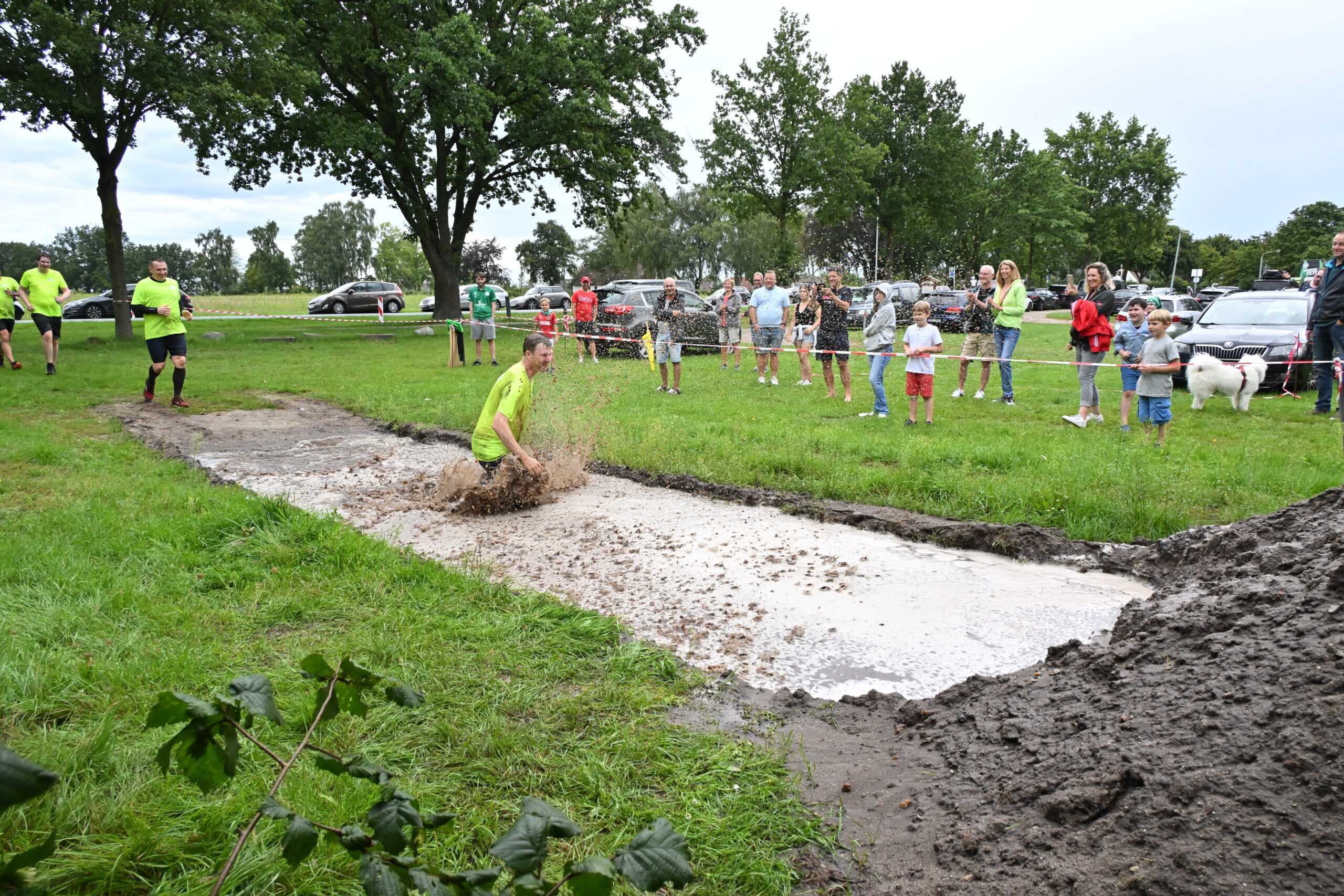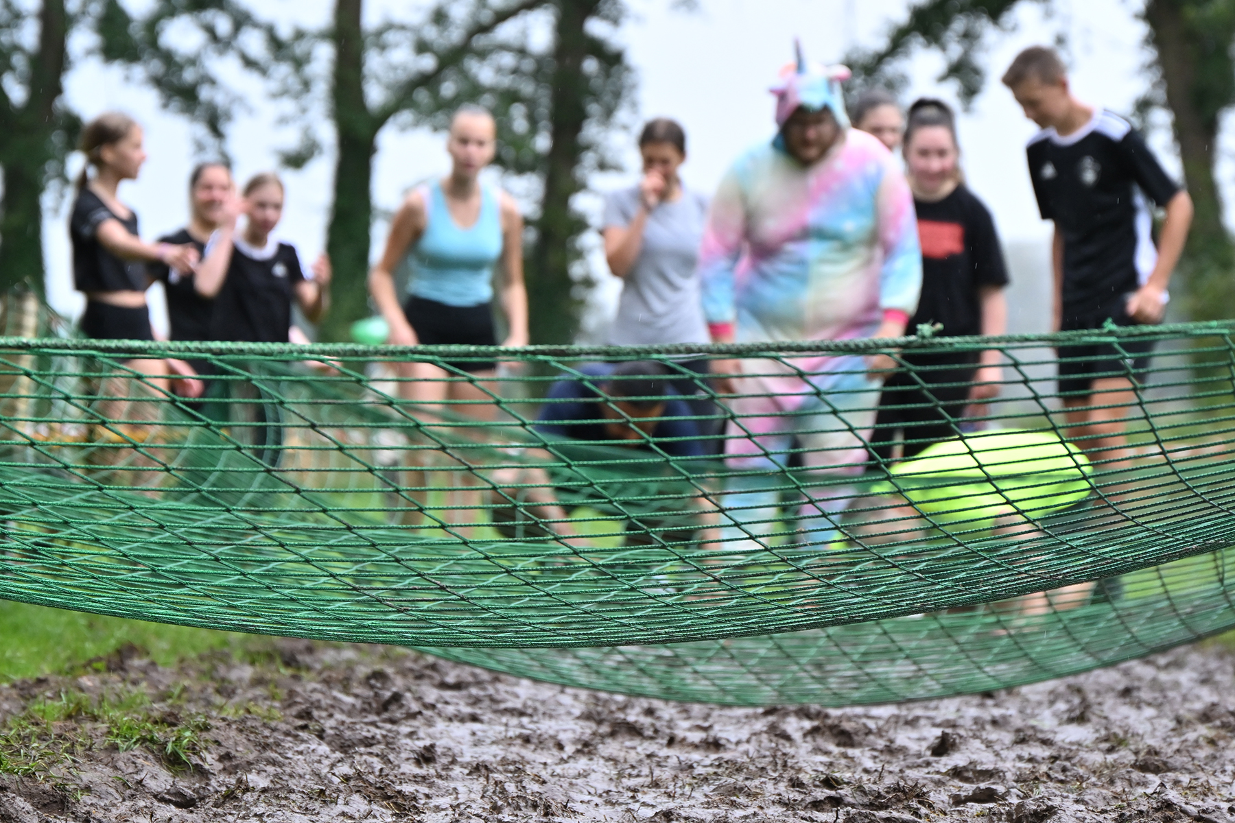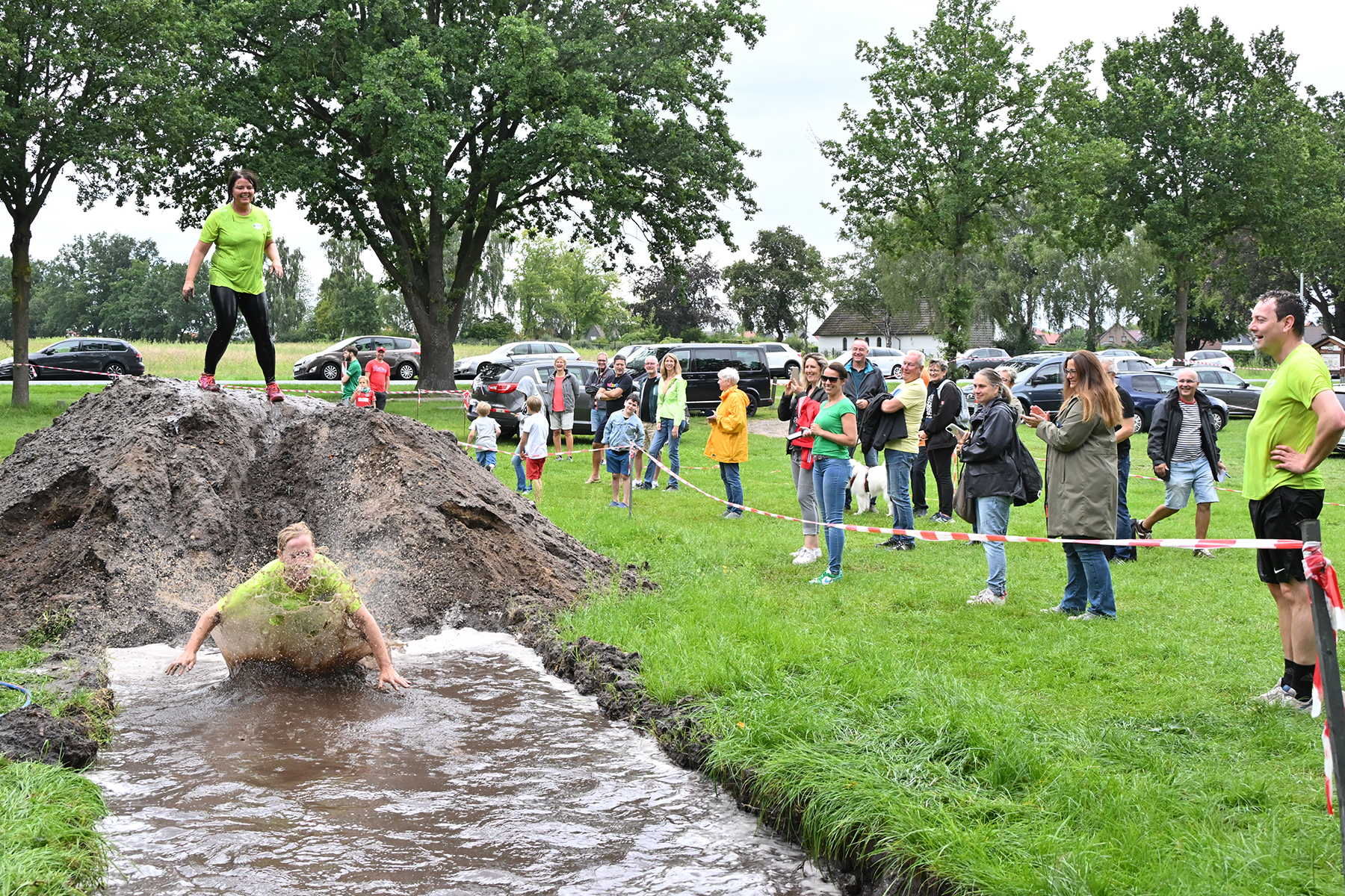 So ging es unter anderem durch zwei Wasserlöcher, eine Schlammkriechstrecke, durch den Hainholzbach, rutschend auf einem Hügel hinab sowie durch den mit Wasser gefüllten Soccercourt. "Wir haben uns vorher auch mit dem Ordnungsamt informiert", erklärt Sportwartin Elke Kistner. Das Wasser förderten die Mitglieder der Ortsfeuerwehr aus einem Brunnen, mit dem Wasser des Soccercourts wird nuin noch gegossen.