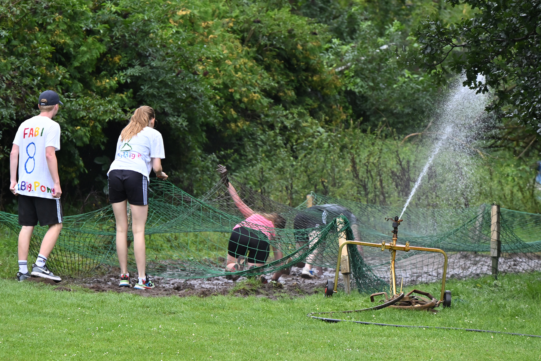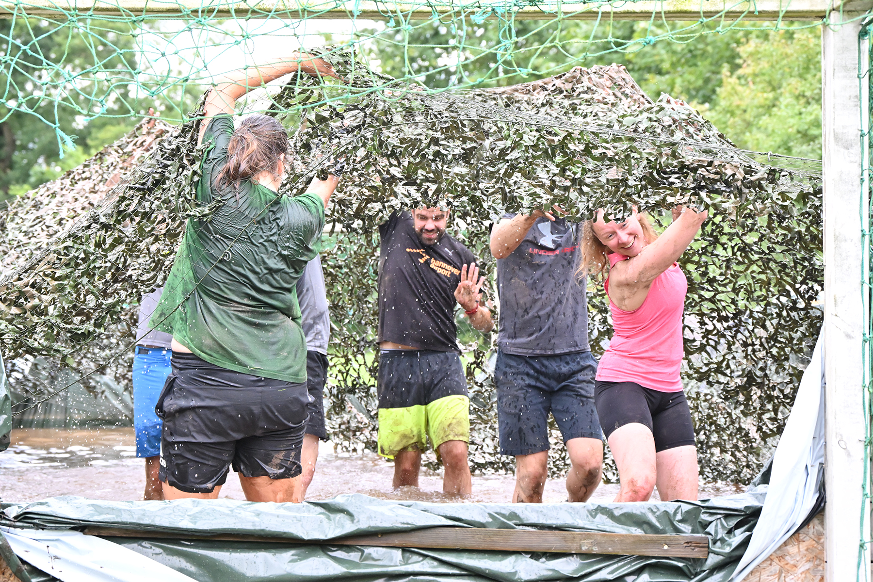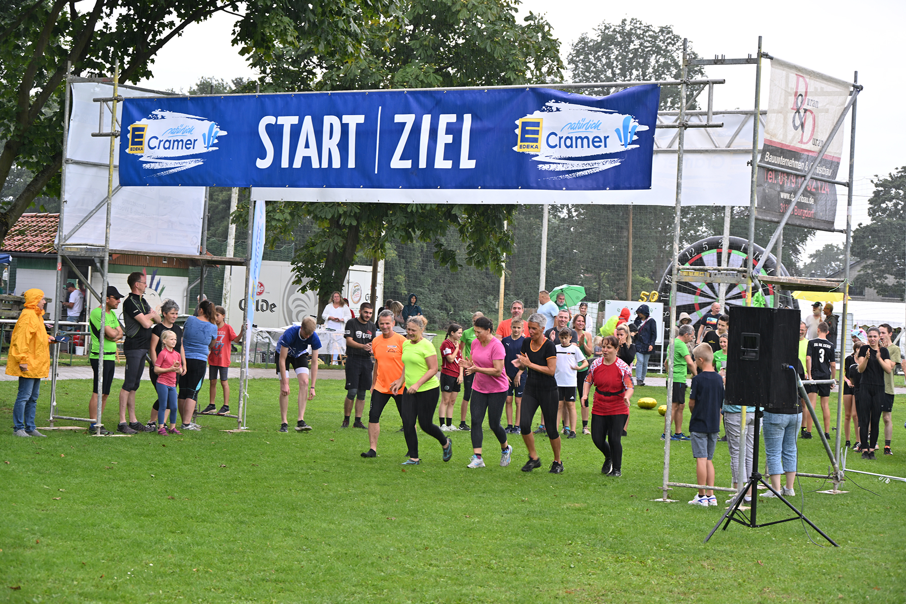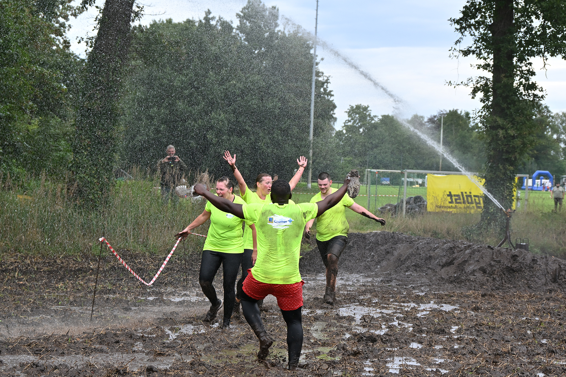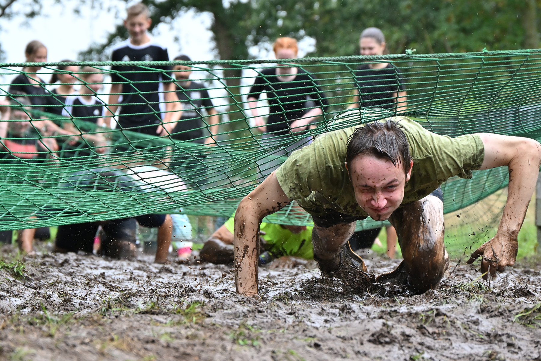 So ging es unter anderem durch zwei Wasserlöcher, eine Schlammkriechstrecke, durch den Hainholzbach, rutschend auf einem Hügel hinab sowie durch den mit Wasser gefüllten Soccercourt. "Wir haben uns vorher auch mit dem Ordnungsamt informiert", erklärt Sportwartin Elke Kistner. Das Wasser förderten die Mitglieder der Ortsfeuerwehr aus einem Brunnen, mit dem Wasser des Soccercourts wird nuin noch gegossen.