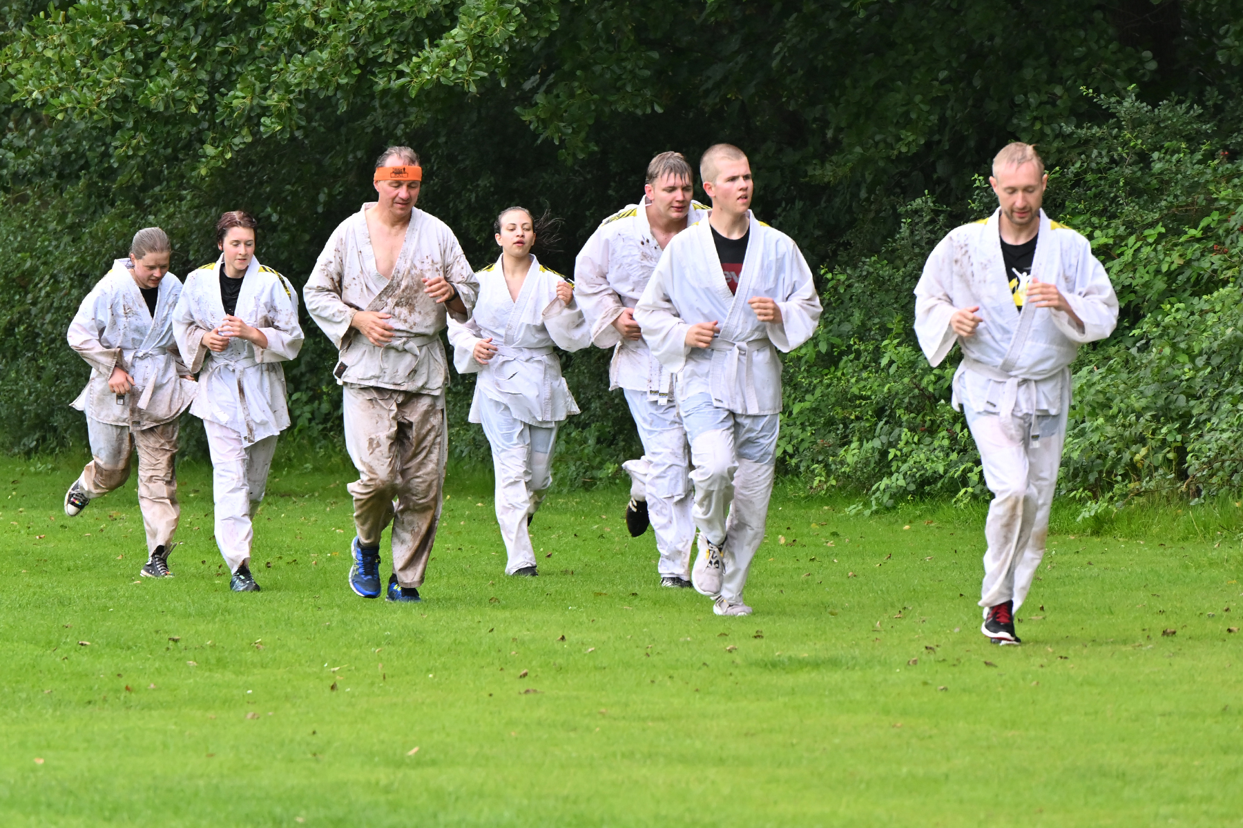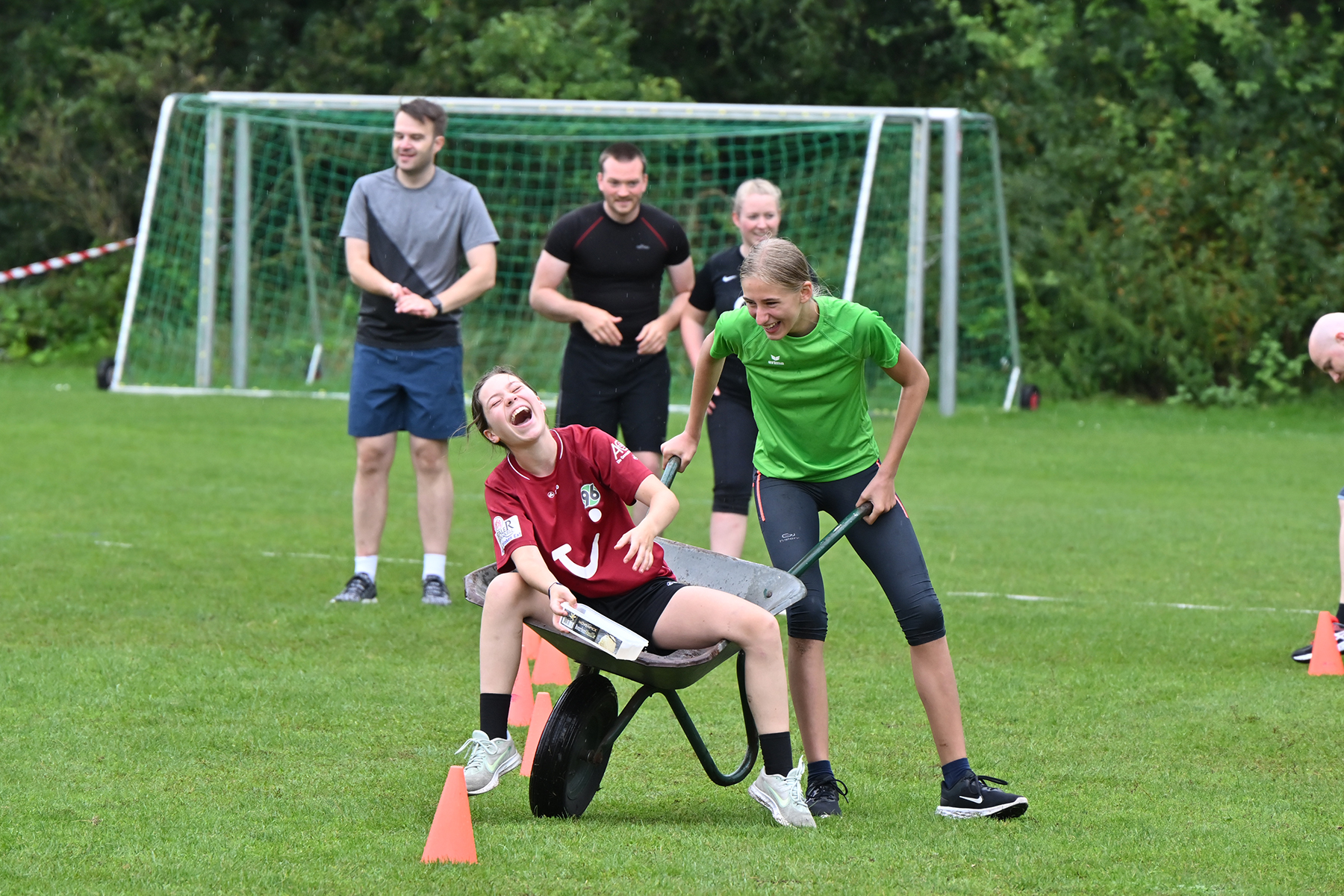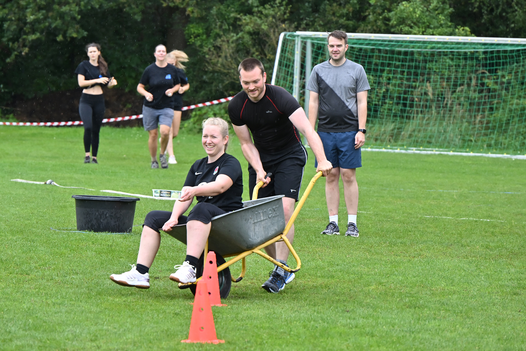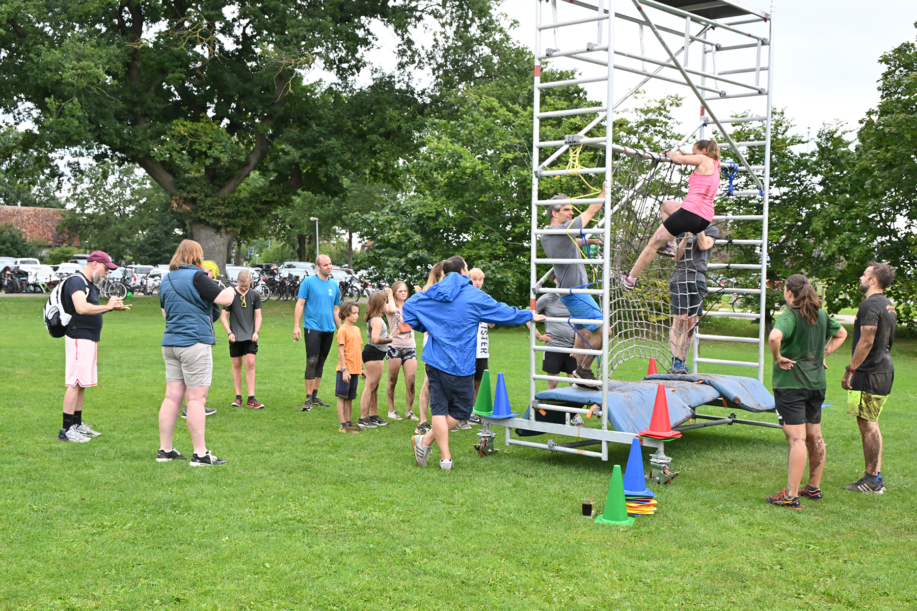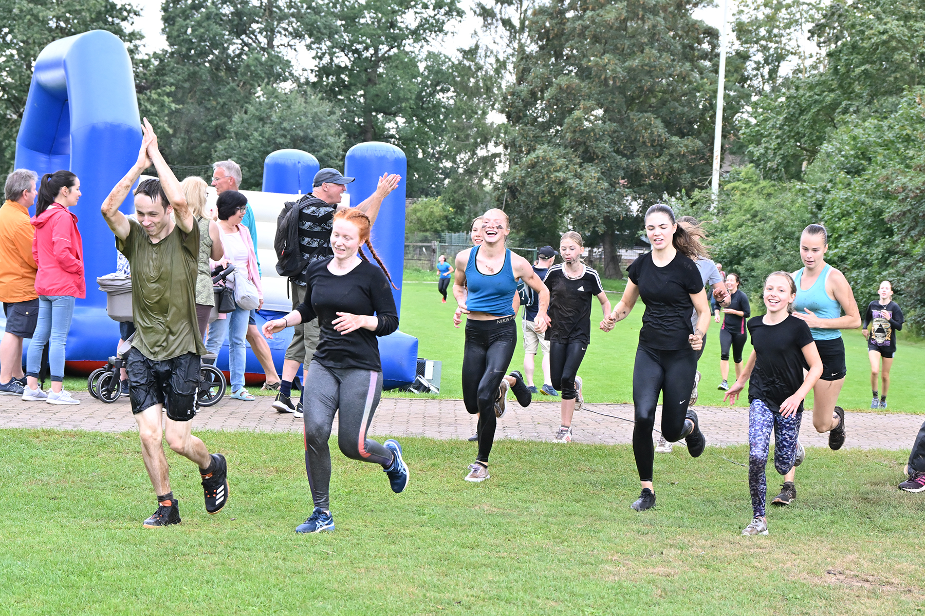 So ging es unter anderem durch zwei Wasserlöcher, eine Schlammkriechstrecke, durch den Hainholzbach, rutschend auf einem Hügel hinab sowie durch den mit Wasser gefüllten Soccercourt. "Wir haben uns vorher auch mit dem Ordnungsamt informiert", erklärt Sportwartin Elke Kistner. Das Wasser förderten die Mitglieder der Ortsfeuerwehr aus einem Brunnen, mit dem Wasser des Soccercourts wird nuin noch gegossen.